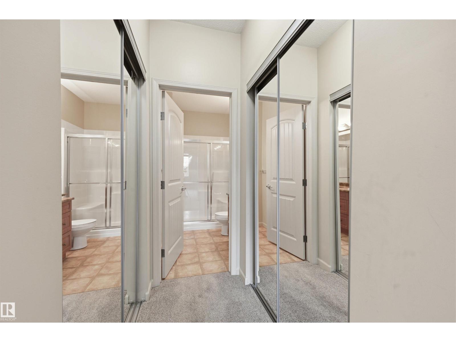 Welcome to the Tradition at Riverside, an immaculately maintained and well managed building in Haddow. Great two bedroom layout! The kitchen has loads of cabinetry & looks outwards to the private balcony. Get cozy in the living room with a gas fireplace, or enjoy the evenings on the oversized balcony with gas BBQ line. The primary bdrm offers plenty of closet space & an ensuite with walk-in shower. Second bedroom and 4pc bathroom on opposite side of apartment. Other features include in-suite laundry, newer carpets (& just steam cleaned), central AC, 9' ceilings, Telus Fibre Optik setup + so much more! Titled oversized stall in the heated underground parkdade with storage cage. Common amenities include exercise room, games room, theatre room, social room, guest suites & an underground car wash! Close to all servicing amenities, plus nearby parks/trails. Move-in ready! (id:63190)