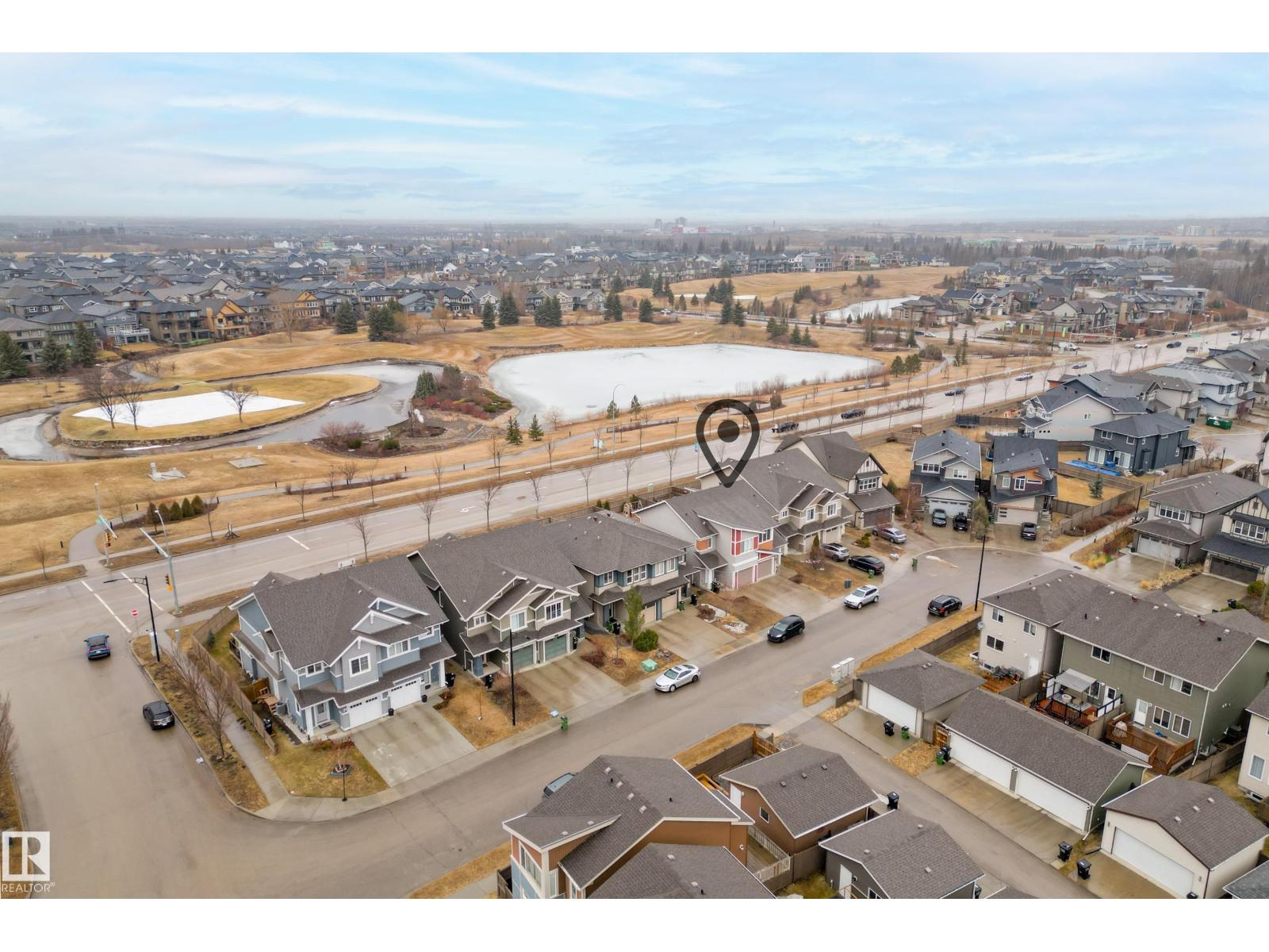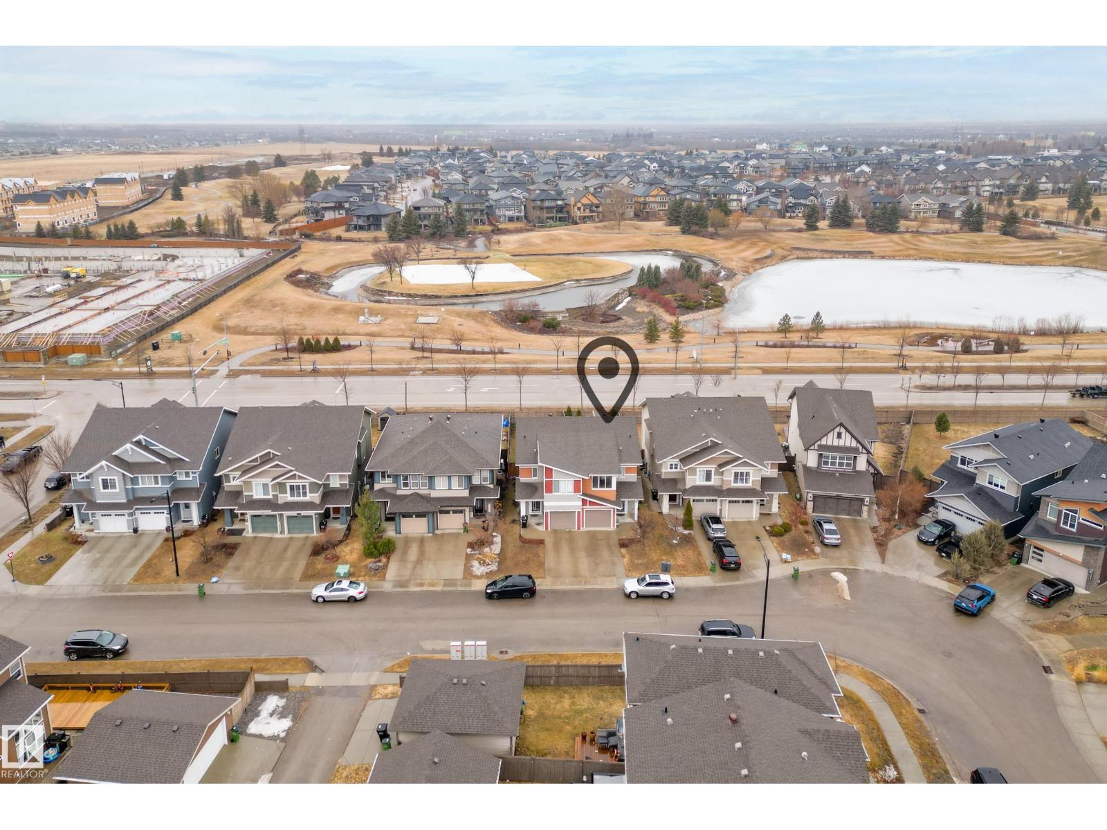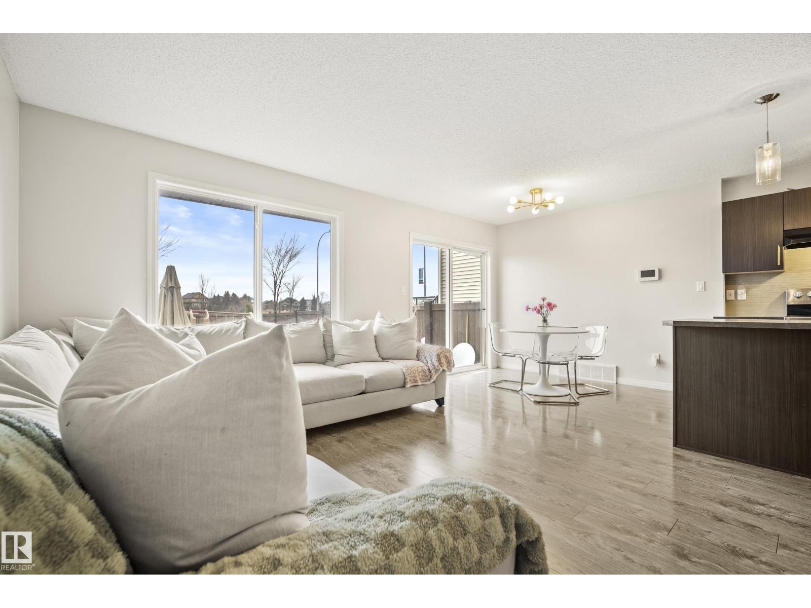 Welcome to Paisley, where this 1394 sqft two-story duplex offers the perfect blend of modern comfort and natural beauty, situated on a large, landscaped lot that backs onto the Jager Ridge Golf Course pond. Recent upgrades include a new furnace installed in March 2025 and a new hot water tank installed in February 2026, providing peace of mind and enhanced energy efficiency. Step outside and enjoy west backing pond views from your beautiful stamped concrete pad, which offers durability and an ideal spot for outdoor relaxation. The inviting open-concept main floor features large windows that flood the space with natural light.The second floor is thoughtfully designed with three spacious bedrooms, including a primary suite, and a convenient dedicated upper-level laundry room. Complete with a single front attached garage, this home is built for lifestyle. Embrace life in Paisley, famous for its unique architecture and specialized playgrounds. Minutes from shopping and dining at Currents of Windermere. (id:63190)