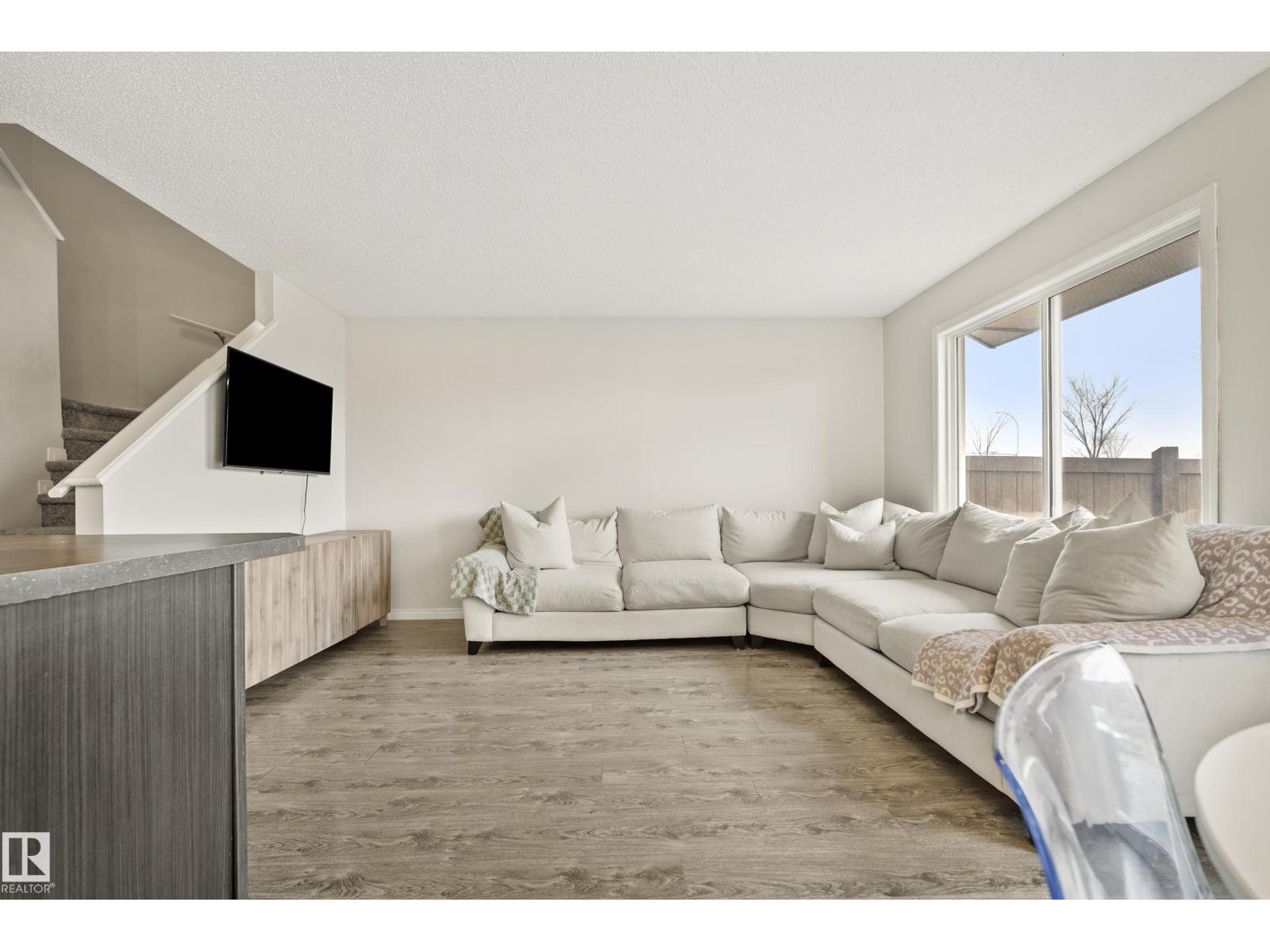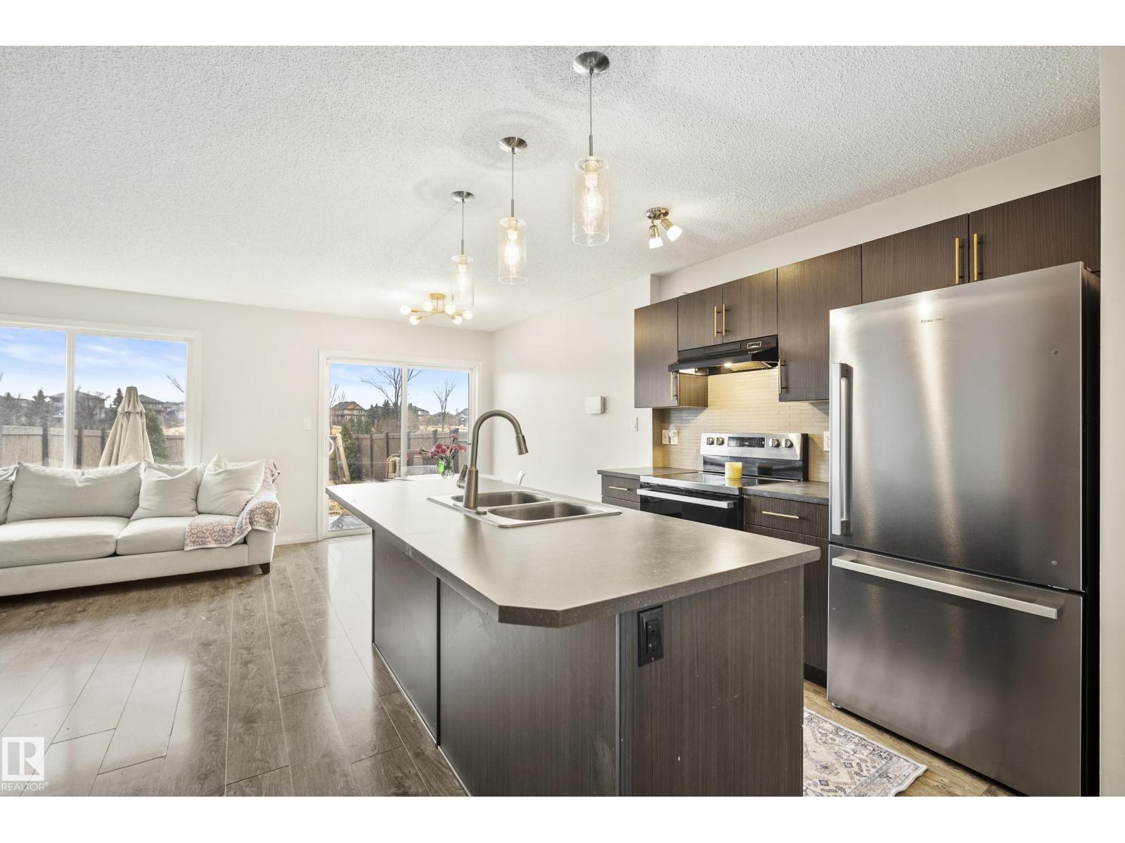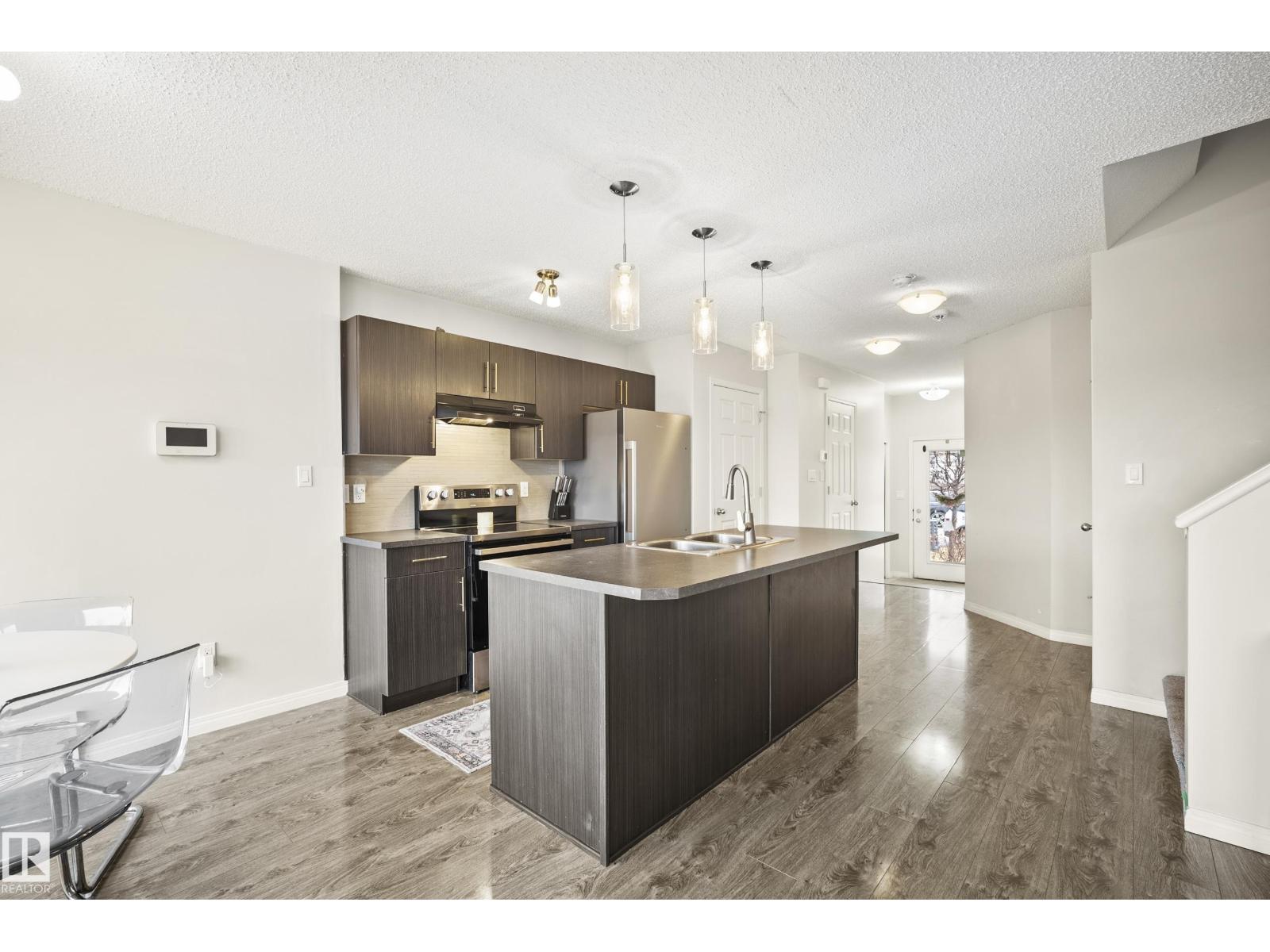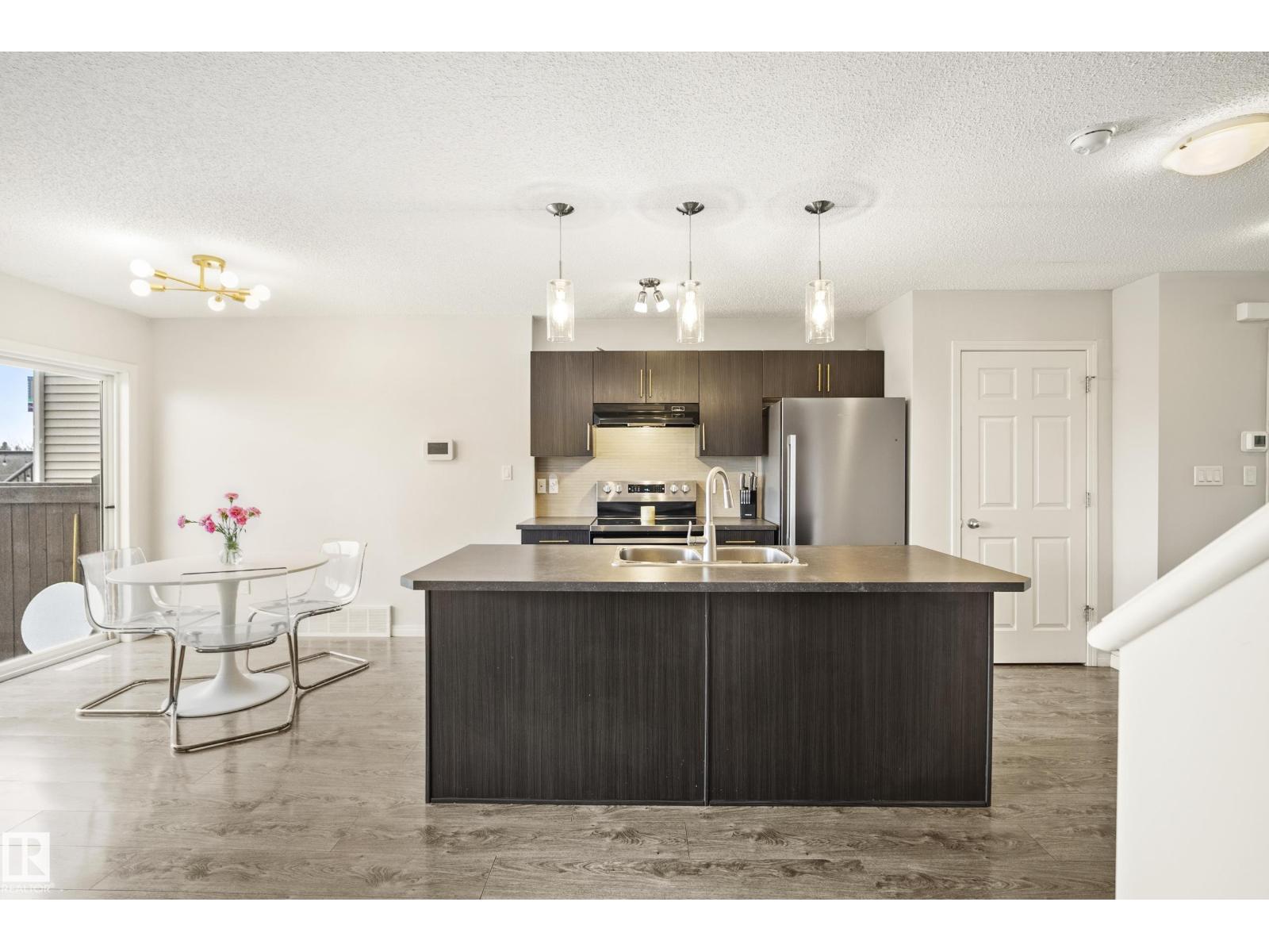 Welcome to Paisley, where this 1394 sqft two-story duplex offers the perfect blend of modern comfort and natural beauty, situated on a large, landscaped lot that backs onto the Jager Ridge Golf Course pond. Recent upgrades include a new furnace installed in March 2025 and a new hot water tank installed in February 2026, providing peace of mind and enhanced energy efficiency. Step outside and enjoy west backing pond views from your beautiful stamped concrete pad, which offers durability and an ideal spot for outdoor relaxation. The inviting open-concept main floor features large windows that flood the space with natural light.The second floor is thoughtfully designed with three spacious bedrooms, including a primary suite, and a convenient dedicated upper-level laundry room. Complete with a single front attached garage, this home is built for lifestyle. Embrace life in Paisley, famous for its unique architecture and specialized playgrounds. Minutes from shopping and dining at Currents of Windermere. (id:63190)