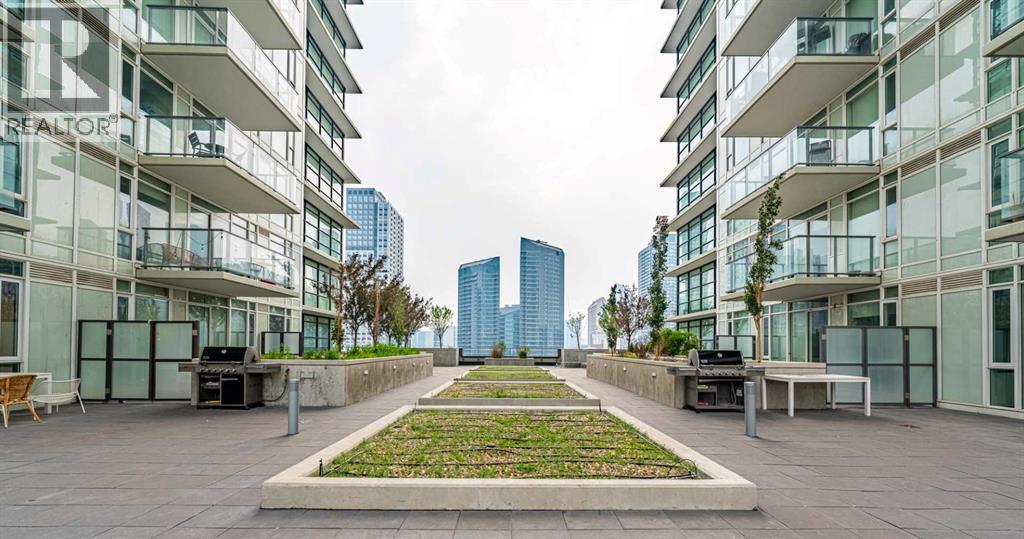 What if your next home didn’t just give you a place to live…but gave you a front-row seat to Calgary’s skyline?Welcome to Unit 1007 at The Guardian - one of Calgary’s most iconic high-rise buildings where modern design meets unmatched city views.The Guardian is known across the city for its bold architecture and premier downtown location. And this 2-bedroom, 2-bathroom corner unit offers 815 square feet of exceptionally well-designed space with titled underground parking and a separate storage locker.From the moment you walk in, you’re greeted with floor-to-ceiling windows that flood the space with natural light. The modern open-concept layout makes every square foot count.Wide-plank flooring, a clean, neutral colour palette and panoramic skyline views that stop you in your tracks. This is the kind of space that feels bigger than it is because it was designed right.The sleek kitchen features modern cabinetry, stone countertops, undermount sink and built-in cooktop and oven. It’s clean, minimalist, and open to your living area, perfect for entertaining friends before heading out downtown… or simply enjoying a quiet evening in.Step onto your private balcony with its glass railing system and durable deck tile flooring. There’s room for patio seating and a BBQ.And the views! Unobstructed panoramic skyline. Iconic Calgary Tower views. Overlooking the Stampede Park and Scotiabank Saddledome. Sunsets here are incredible and at night, the city lights are absolutely spectacular. This isn’t just a balcony. It’s your private skybox.The primary bedroom offers a spacious layout with stunning city views, sliding-door closets, and a sleek ensuite. The second bedroom is thoughtfully positioned for privacy, ideal for a roommate, guests, or a stylish home office.Two full bathrooms make this layout incredibly functional and desirable especially for professionals or investors looking for strong rental appeal.Living at The Guardian means access to amenities that rival luxury h otels - fully equipped fitness centre, dedicated yoga studio, workshop space, expansive garden terrace, outdoor BBQ areas, fire pit with multiple seating areas and beautifully designed residents’ lounge with full kitchen, TVs, and even a ping pong table. This is where you host birthdays, game nights and holiday gatherings.Exceptional walkability: steps to the C-Train, Stampede Park, casino, and Repsol Sport Centre, plus easy access to East Village, Bow River pathways, 17th Avenue, and the downtown core.Ideal for professionals, investors, or first-time buyers seeking modern downtown living with incredible views and strong rental potential.This is downtown energy without compromise.If you’ve been waiting for the right combination of views, layout, location, and lifestyle… Unit 1007 at The Guardian may be the one.Reach out today for your private showing and experience Calgary from a whole new perspective. (id:63190)