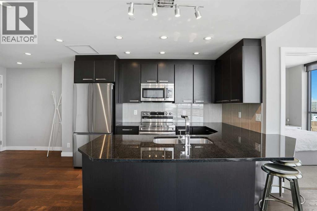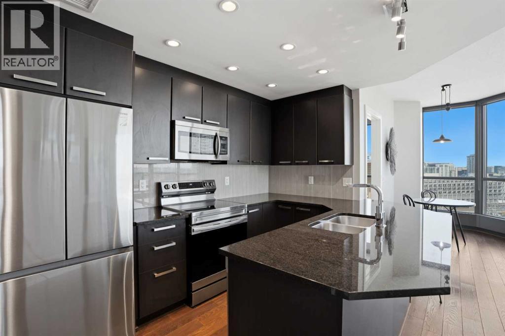 Welcome to elevated urban living in Keynote II, perfectly positioned in the heart of Calgary’s vibrant Beltline. From the moment you step inside this exceptional 14TH FLOOR residence, you’re greeted by an immediate sense of space, light, and openness that is rarely found in a two bedroom condo.Expansive FLOOR TO CEILING WINDOWS frame sweeping, unobstructed east facing views, filling the home with natural light from morning through evening. The thoughtfully designed OPEN CONCEPT LAYOUT creates a seamless flow between the kitchen, dining, and living areas, offering both comfort for everyday living and the perfect setting for entertaining.The layout is as functional as it is inviting, featuring TWO GENEROUSLY SIZED BEDROOMS POSITIONED ON OPPOSITE SIDES of the unit, each with its own adjacent bathroom. This “DUAL PRIMARY” configuration is ideal for professionals, couples, small families, or roommates seeking privacy and flexibility.At the heart of the home, the kitchen is equipped with GRANITE COUNTERTOPS and a full set of STAINLESS STEEL APPLIANCES, combining style and practicality for effortless day to day living.Beyond the interior, this home continues to deliver with a secure, heated titled UNDERGROUND PARKING STALL and an oversized titled STORAGE LOCKER, adding convenience and peace of mind.What truly sets this property apart is its unbeatable lifestyle location. With SUNTERRA MARKET conveniently located within the building and Market Bar just steps away, your daily essentials and dining options are always within reach. You’re also moments from the LRT, Stampede Grounds, BMO Centre, Saddledome (new Scotia Place Arena), and Calgary’s extensive +15 network, making it easy to stay connected to everything downtown has to offer.Residents of Keynote II enjoy access to PREMIUM AMENTITIES including a fully equipped fitness centre, guest suites, bike storage, and a beautifully designed outdoor terrace with a gas BBQ, perfect for relaxing or entertaining in the w armer months.Offering a rare combination of space, light, functionality, and location, this is a standout opportunity in one of Calgary’s most sought after buildings. (id:63190)