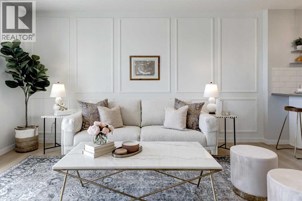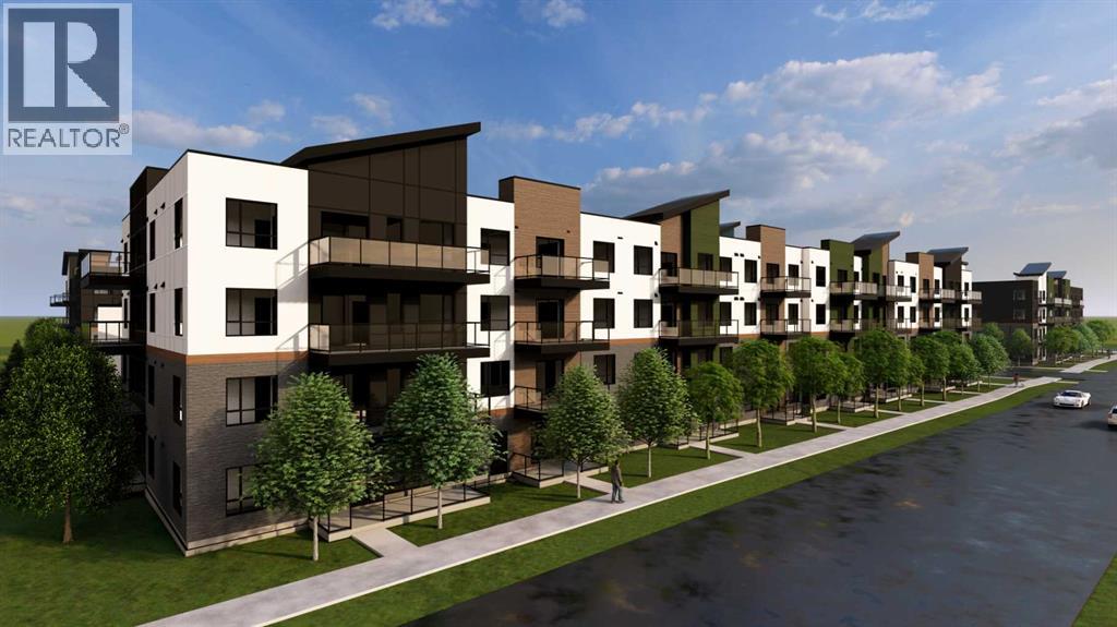 **Please contact the listing agent for information regarding available units and current inclusions - estimated completion JUNE 2026-DEC 2026*** PHOTOS ARE OF FORMER SHOW SUITE - ACTUAL UNIT FINISHES WILL VARY. Welcome to ALPINE PARK PLACE, a brand-new development by CEDARGLEN LIVING, 6x Customer Insight Builder of Choice Award winner. This “A” floor plan offers 514.21 sq. ft. RMS (565 sq. ft. builder size) with 1 bed + 1 bath, and a bright open-concept layout with 9’ ceilings and LVP flooring throughout common areas, carpet in the bedroom and closets (option to upgrade to LVP). The modern kitchen features quartz countertops, an island, stainless steel appliances, undermount sink, upgraded pot drawers and pantry, flowing into the spacious living and dining area—ideal for entertaining. The primary bedroom includes a walkin closet, and 4pc ensuite with full height tile. Additional highlights include Low-E triple-glazed windows, ERV fresh air system, A/C rough-in, BBQ gas line, in-suite laundry, sound-reducing membrane, glass patio railing, and 1 titled underground parking stall. A once in a lifetime community in Southwest Calgary. Pet and rental friendly complex. (id:63190)