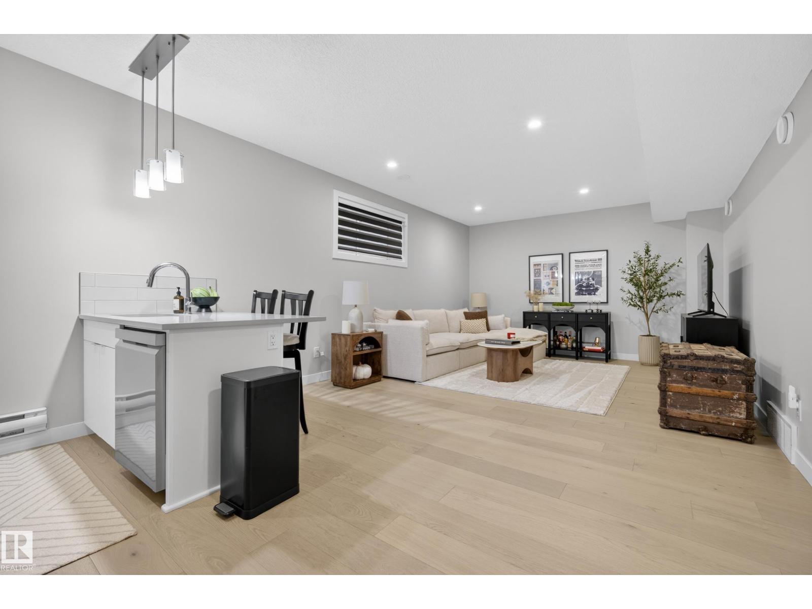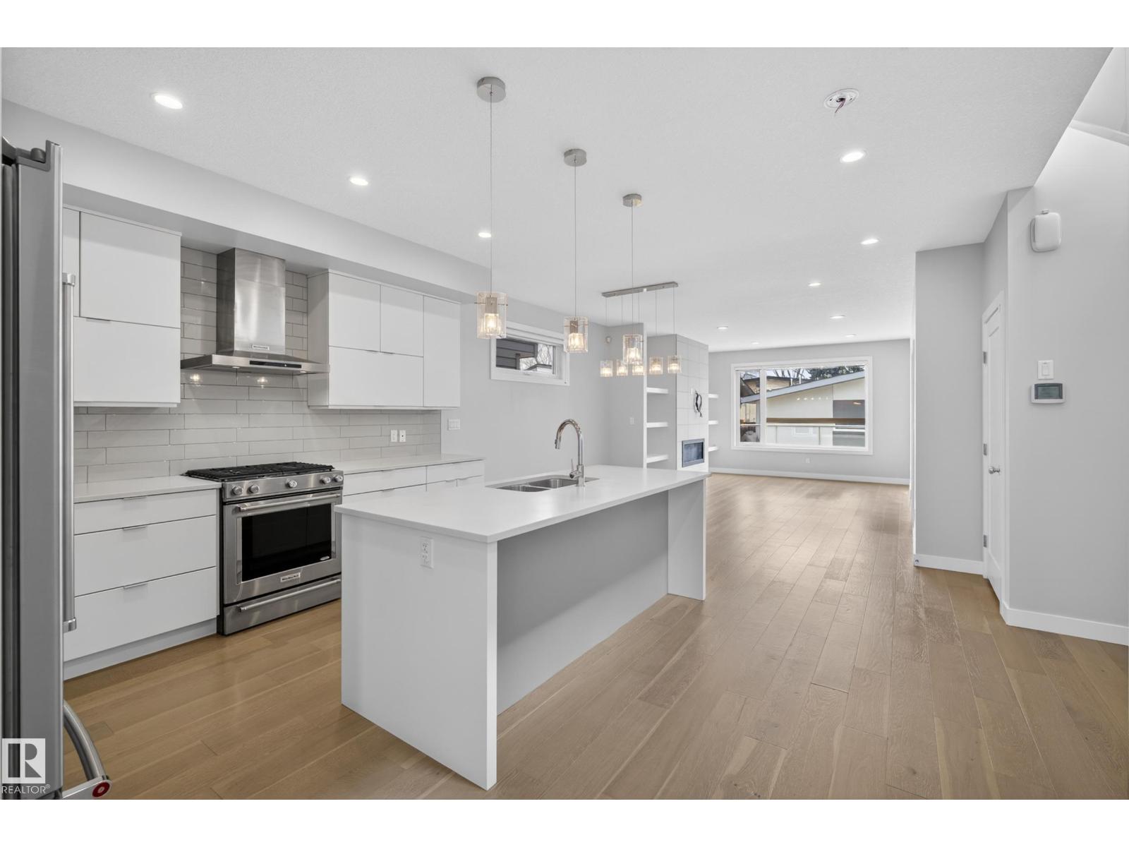 Elevated modern living in the heart of Forest Heights just minutes to downtown and the river valley. This beautifully designed home is filled with natural light and showcases a refined open concept main floor with a sleek kitchen, quartz counters, oversized island and stainless steel appliances, flowing into an inviting living space with a statement fireplace and custom built-ins. A main floor office provides the perfect work from home setup or quiet flex space. Upstairs delivers a stunning primary retreat with walk in closet and ensuite, plus two additional bedrooms, full bath and upper laundry. The fully developed basement features a self contained one bedroom suite with its own kitchen, living area, full bathroom and in suite laundry, currently rented to an excellent tenant paying $1,375 per month who would love to stay. Complete with air conditioning, double detached garage and a low maintenance yard in a prime location close to trails, parks and amenities. (id:63190)