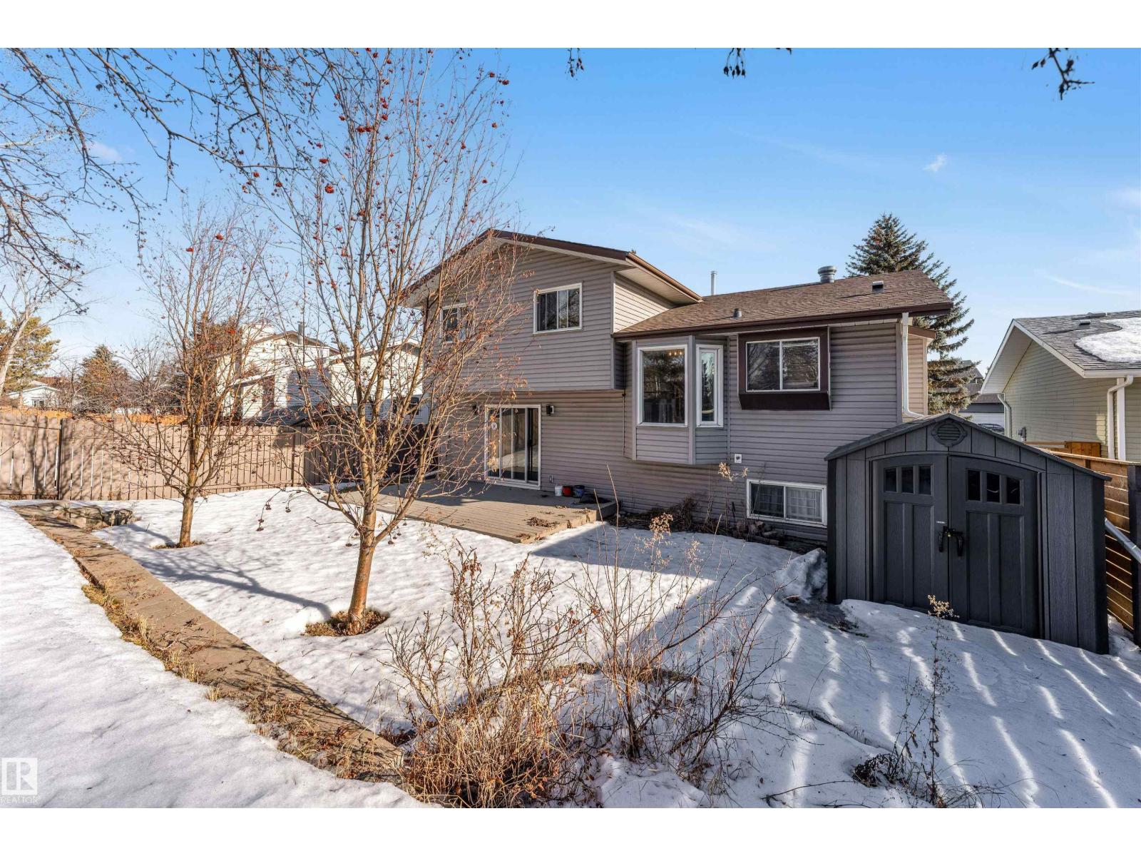 Spacious 4-level split offers 5 bedrooms and 2.5 bathrooms across the RENOVATED home. The bright kitchen features ample cupboard space & breakfast nook overlooking the backyard.The dining room & sunken living room are generously sized & highlighted by elegant bay windows. Relax in the family room w/fireplace & patio doors leading to a large deck—ideal for indoor-outdoor living. This level includes a 4-piece bath with double sinks and a deep soaker tub, a bedroom, & laundry.Upstairs, find a spacious primary retreat with a walk-in closet its own 2-piece ensuite. Two additional bedrooms, a 3-piece bathroom, and a second walk-in closet complete the upper level.The basement offers a bedroom, recreation room, den, & abundant storage. A double attached garage with built-in cabinetry & direct home access adds everyday convenience. Ideally located within walking distance to schools, amenities, & the scenic Mill Creek Ravine trails, w/nearby off-leash areas. Just minutes from golf course, spray park, & Whitemud. (id:63190)