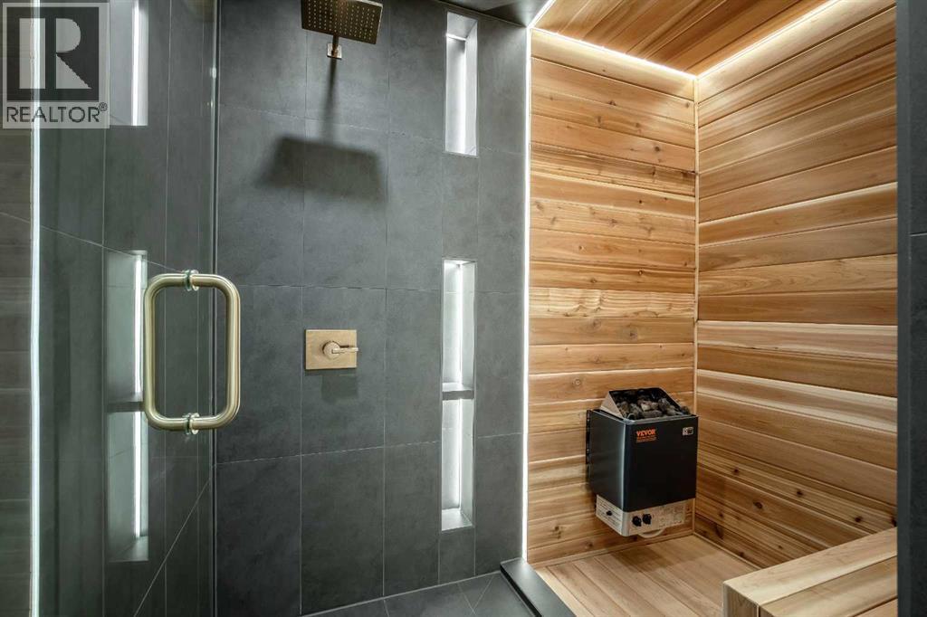 Welcome to Eleanor—an elegant, elevated, and exceptionally well-crafted home in the sought-after community of Oakridge. A fully renovated down to the studs home with over $600,000+ INVESTED (including all-new plumbing, electrical, and HVAC runs completed with all required city permits). Nestled on a quiet, tree-lined street, this home offers four bedrooms, a dedicated office and 2,366+ sq ft of living space, and an additional 500+ sq ft of crawl-space storage (not included in total living space). Situated on an expansive ~7,000 sq ft lot, only minutes away from South Glenmore Park, scenic pathways, and steps from Louis Riel School, Oakridge Community Centre, Stoney Trail, and more. The exterior of the home is striking yet inviting, featuring Hardie and Smart Panel siding, stained cedar soffits, new roofing and eavestroughs, and meticulously designed landscaping. The entry is equally refined, with a cedar-covered patio, garden-ready planters, and a stunning entrance inviting you home. Inside, sunlight fills every room through new triple-pane windows, white oak floors, curved oak arches, columns, beams, and white-oak butcher block shelving throughout. The main level features a Nordic-inspired kitchen with Taj Mahal counters, chocolate coloured white oak cabinetry, dovetail drawers and fluted detailing, a ~10-foot island with drop-down seating, a built-in coffee bar, and a glass wine display. Built-in appliances include a Fisher & Paykel fridge, freezer, and dishwasher, a Bosch 6-burner range, ZLINE convection oven, and Silhouette dual-temp wine fridge. The kitchen connects to the rear deck, creating a seamless transition between indoor and outdoor living. On the same level is the formal dining room and first living area, centred around a striking fireplace feature wall. Steps down, the main living room boasts dark oak ceiling beams, a second fireplace framed by custom arched cabinetry, a refined wet bar, and access to the backyard patio. This level also includes a gla ss-enclosed office, powder room, laundry, mudroom, and access to the finished oversized double car garage with epoxy floors and EV and garage heater rough-ins. Upstairs, the primary is a serene retreat featuring a fluted soaker tub, oversized double shower, champagne bronze fixtures, a walk-in closet, and a built-in makeup vanity. Two additional well-sized bedrooms with built-in closets and a beautifully finished full bath complete the level. The basement includes a rec room/flex room, an additional fourth bedroom, a three-piece bath with spa-calibre shower, cedar sauna and ample storage. Heated floors and champagne bronze fixtures are featured in all bathrooms. There’s new batt and blow-in insulation, a tankless water heater, central A/C, sump pump, solid core doors, smart home features, camera CAT-6 roughed-in, new drywall and a BBQ gas line on the deck. Eleanor embodies refined design and understated luxury—a rare opportunity to make her your home! (id:63190)