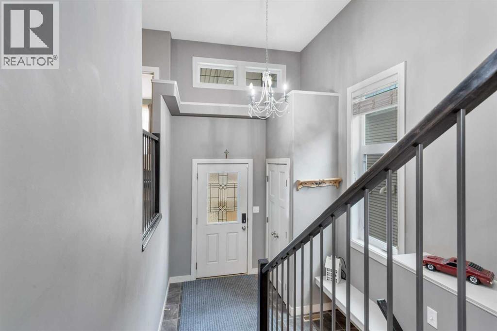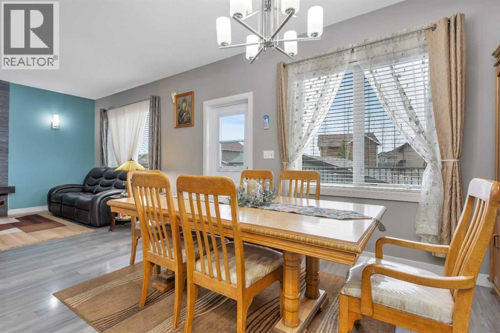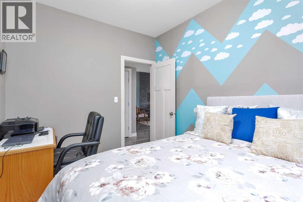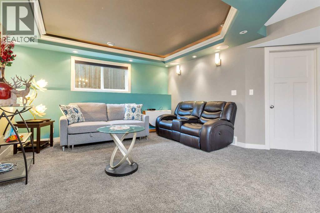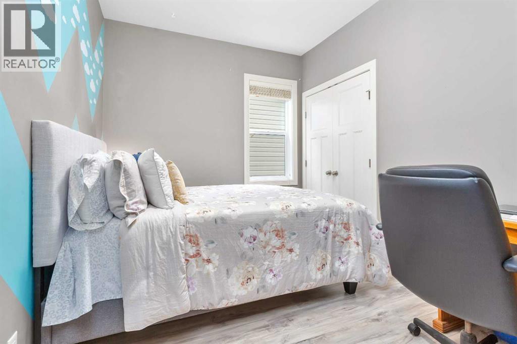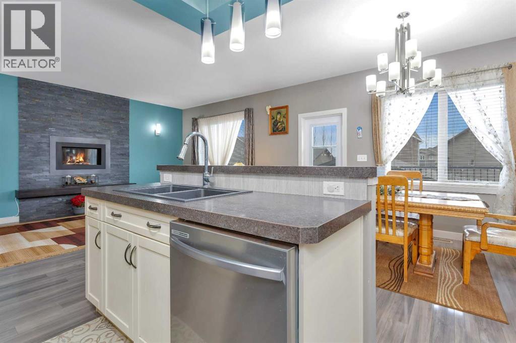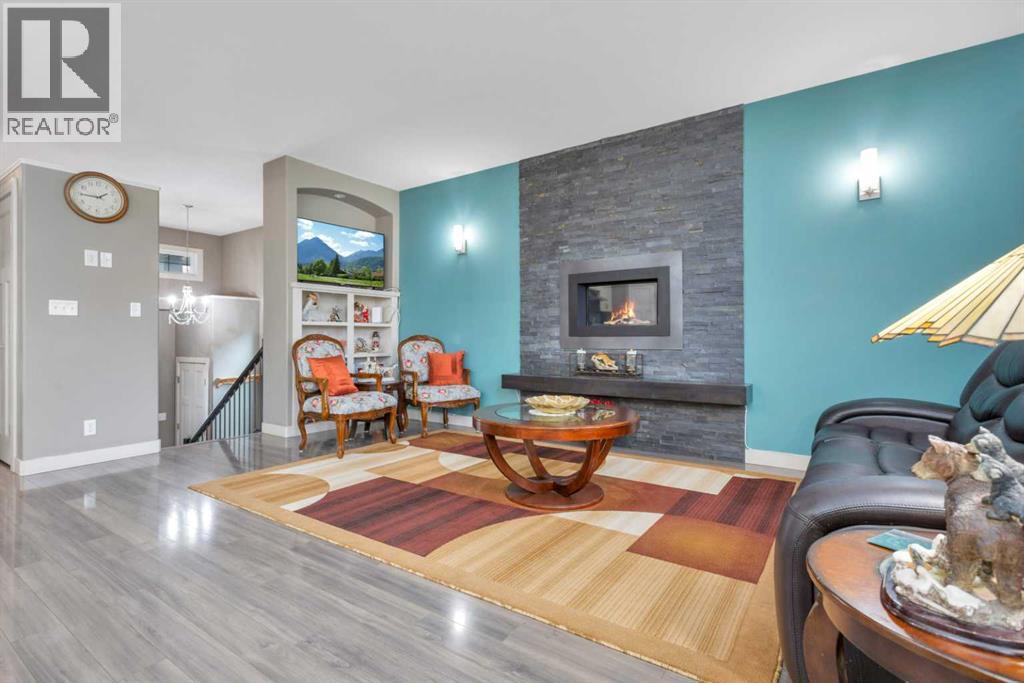 Gorgeous fully finished bi-level featuring coffered 9’ ceilings throughout the main floor and a bright, open-concept design. This 4 bedroom, 3 bathroom home offers a warm and inviting living space complete with a gas fireplace accented by stone surround, built-in shelving, and gleaming laminate flooring. The spacious entry welcomes you with a generous closet, leading upstairs to a well-appointed kitchen showcasing stainless steel appliances, quality cabinetry, and a functional breakfast bar. The open layout seamlessly connects the kitchen, dining, and living areas, with garden door access to a large south-facing deck—perfect for summer BBQs and effortless entertaining. The primary bedroom easily accommodates a king-sized suite and features a walk-in closet and private 3-piece ensuite. A second bedroom and a full 4-piece bathroom complete the main level. Downstairs, you’ll be impressed by the massive 21’ x 18’ family room, highlighted by a stunning coffered, lighted ceiling and several built in speakers. The lower level also includes two additional bedrooms (one with a large walk-in closet), a 4-piece bathroom, and a laundry room with in-floor heat and large windows that bring in plenty of natural light. Step outside to enjoy the fully fenced yard and BRAND NEW 20’ x 24’ garage. All of this is perfectly complemented by peaceful country views right across the street. Solar panels provide an added benefit, enhancing energy efficiency and long-term savings. (id:63190)