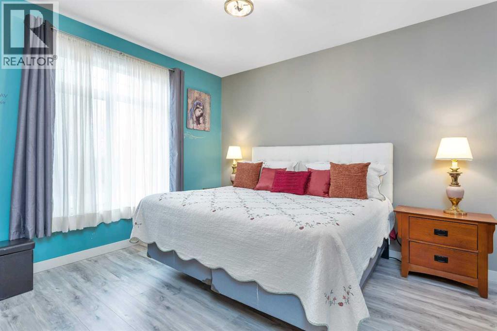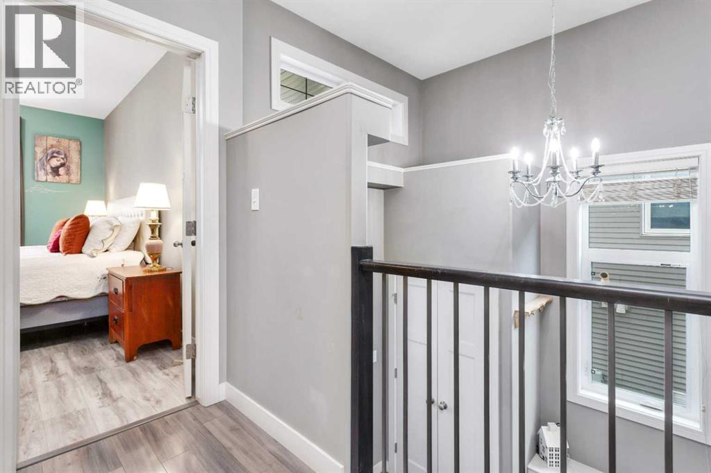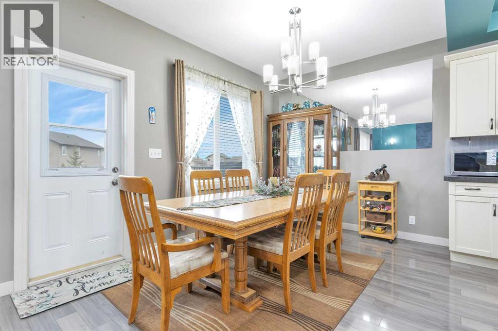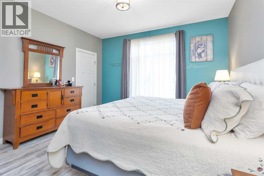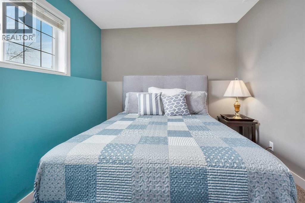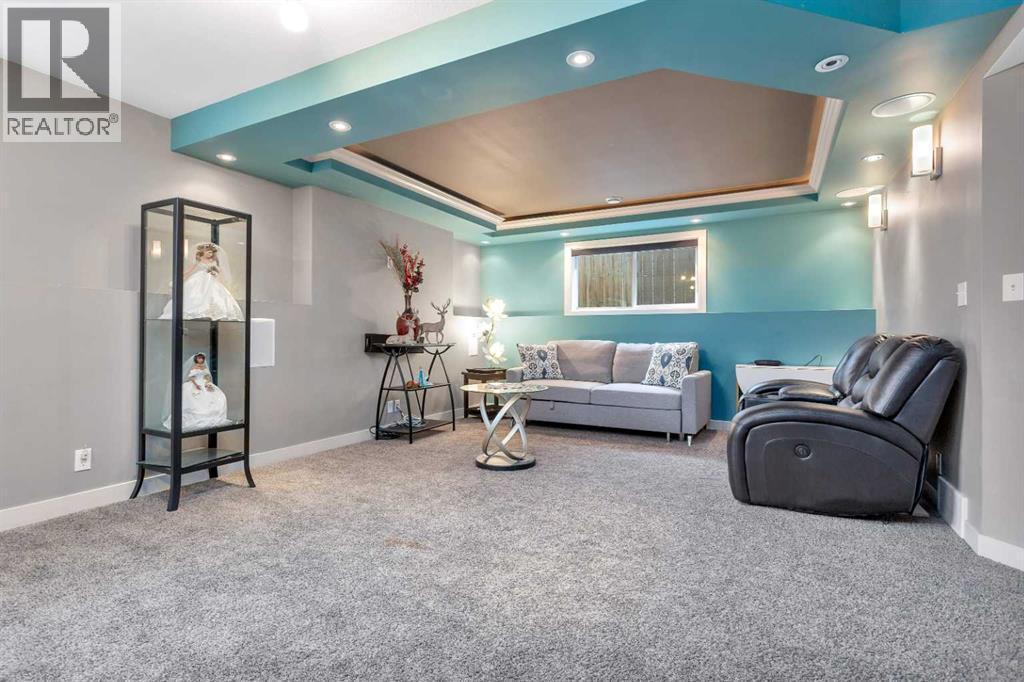 Gorgeous fully finished bi-level featuring coffered 9’ ceilings throughout the main floor and a bright, open-concept design. This 4 bedroom, 3 bathroom home offers a warm and inviting living space complete with a gas fireplace accented by stone surround, built-in shelving, and gleaming laminate flooring. The spacious entry welcomes you with a generous closet, leading upstairs to a well-appointed kitchen showcasing stainless steel appliances, quality cabinetry, and a functional breakfast bar. The open layout seamlessly connects the kitchen, dining, and living areas, with garden door access to a large south-facing deck—perfect for summer BBQs and effortless entertaining. The primary bedroom easily accommodates a king-sized suite and features a walk-in closet and private 3-piece ensuite. A second bedroom and a full 4-piece bathroom complete the main level. Downstairs, you’ll be impressed by the massive 21’ x 18’ family room, highlighted by a stunning coffered, lighted ceiling and several built in speakers. The lower level also includes two additional bedrooms (one with a large walk-in closet), a 4-piece bathroom, and a laundry room with in-floor heat and large windows that bring in plenty of natural light. Step outside to enjoy the fully fenced yard and BRAND NEW 20’ x 24’ garage. All of this is perfectly complemented by peaceful country views right across the street. Solar panels provide an added benefit, enhancing energy efficiency and long-term savings. (id:63190)