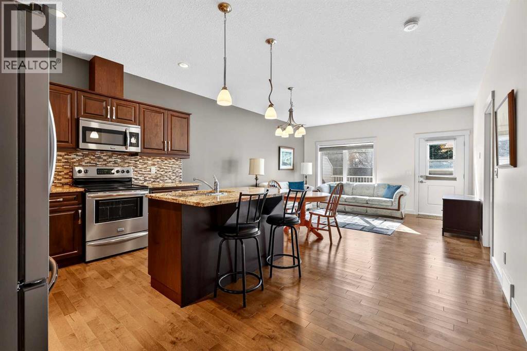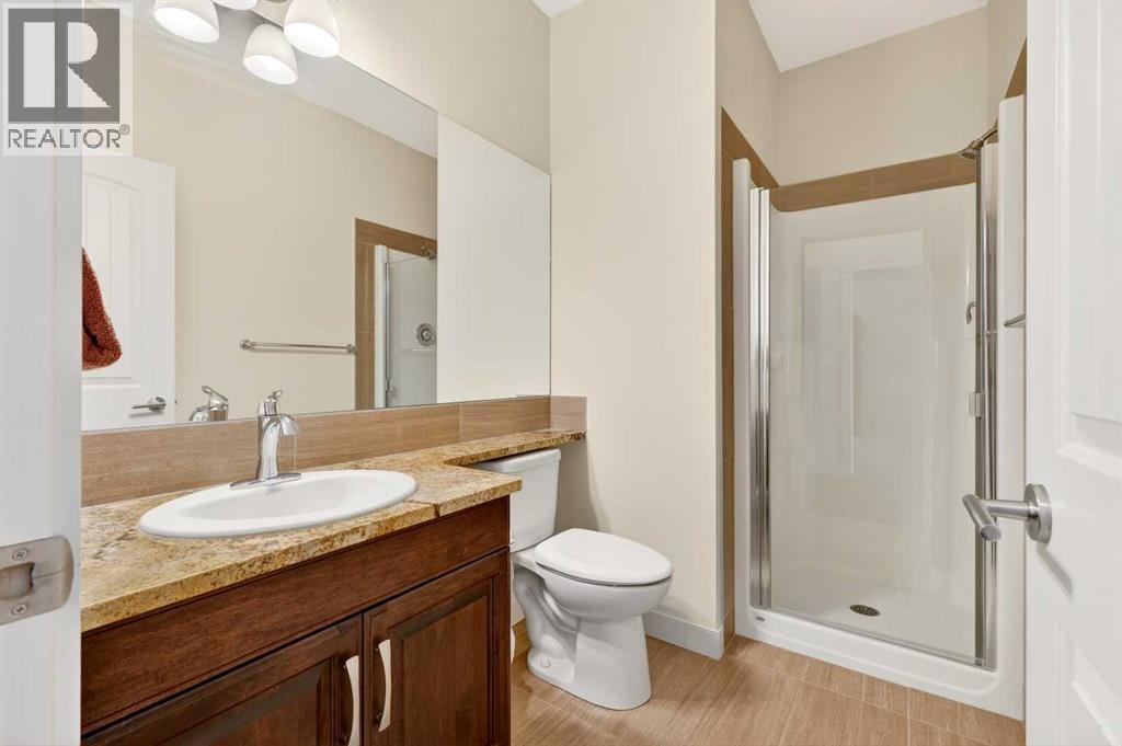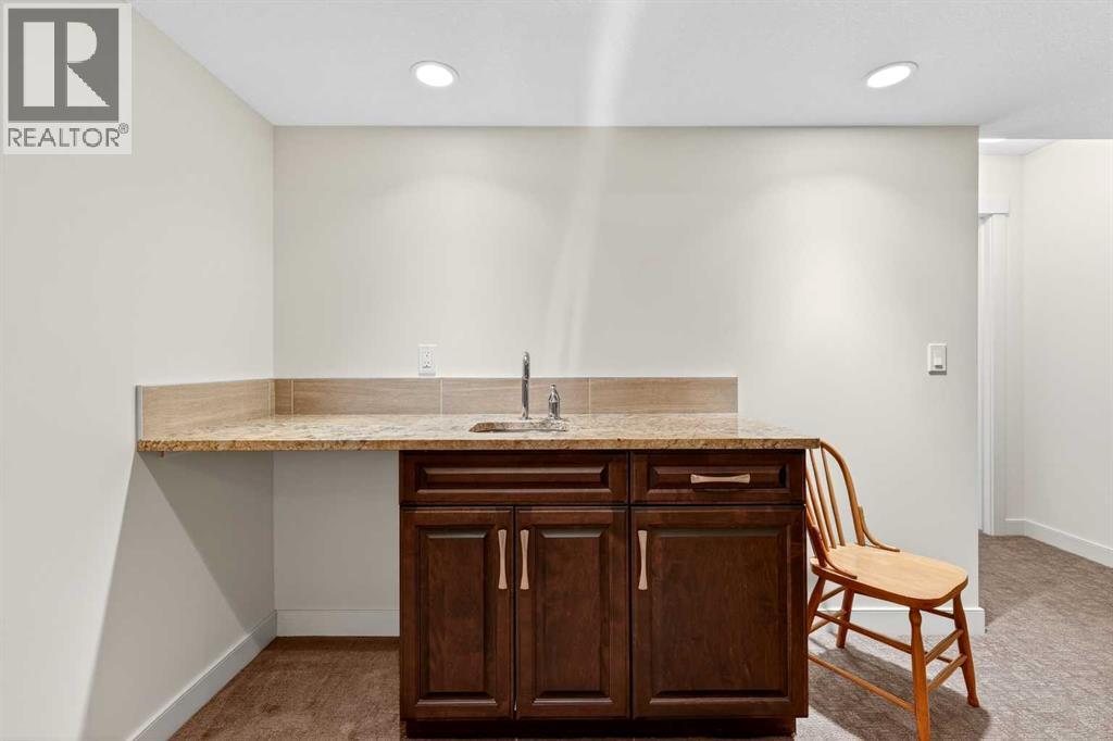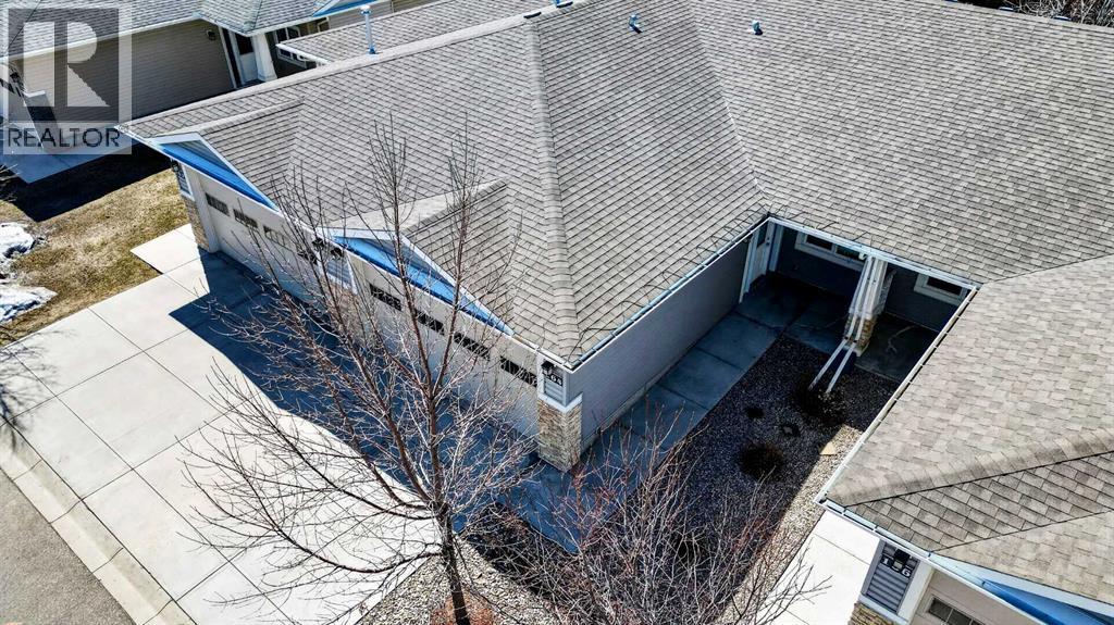 You've earned the home that actually works for you. This former show home in Sagewood Villas — Strathmore's popular 55+ villa community — delivers single-level living with a finished lower level for the guests, the grandkids' sleepovers, and the hobbies that finally have their own room.The main floor was built with intention: 9' ceilings, an open-concept kitchen with granite counters, soft-close cabinetry, under-cabinet lighting, and a west-facing living area that fills with afternoon light. The primary suite fits a king and then some — walk-in closet with organizers, 4pc ensuite with his-and-her sinks. The second bedroom works equally well as a home office or a formal dining room. Laundry is on the main floor, and the double attached garage has a 10-foot ceiling.Downstairs: a full rec room with wet bar, a third bedroom with its own full bath, and serious storage with room to grow. Condo fees are $340/month — snow removal, grounds, and insurance handled.The Town of Strathmore delivers everything close: shopping, hospital, walking paths, and pickleball courts nearby. Quick possession available. (id:63190)