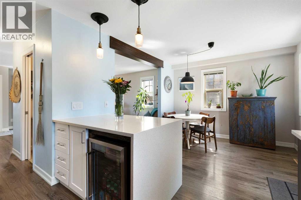 Welcome to this beautifully upgraded end-unit townhome offering the perfect blend of style, space, and location. With two assigned parking stalls plus ample visitor and street parking right out front, convenience is built right in. Enjoy serene park views and the added privacy that comes with this premium end-unit location. Designed with functionality in mind, this home features a dual primary bedroom layout, with two spacious bedrooms each boasting their own full 4-piece ensuite—ideal for roommates, guests, or families seeking flexible living. The tastefully updated kitchen is a standout, showcasing newer quartz countertops, a stunning waterfall island, modern backsplash, stainless steel appliances, and a bar fridge—perfect for entertaining. The adjacent dining area offers generous space for hosting. Thanks to its end-unit positioning, the home is filled with abundant natural light from additional side windows. The spacious living room features a large front-facing window overlooking the greenspace, creating a bright and inviting atmosphere. Outdoor living is a treat with a spacious front veranda overlooking the park and a private rear patio—ideal for relaxing in the sun. The undeveloped basement offers excellent potential for future customization, complete with multiple windows that bring in natural light—perfect for adding a rec room, home office, or additional bedroom. Located close to schools, shopping, amenities, and transit, this home delivers exceptional value in a highly convenient setting. A rare opportunity—don’t miss it! (id:63190)