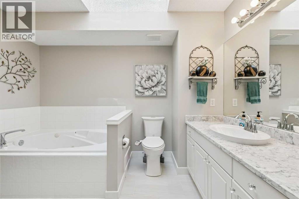 **Open House Cancelled - property is conditionally sold**. The one you've been waiting for - just 2 blocks from the Lake. Offering over 3000+ SF of refined living space, this one-owner home has been meticulously cared for and thoughtfully updated. The main level showcases a renovated kitchen with ceiling height cabinetry, quartz counter tops, stainless steel appliances and corner pantry. A zen living room complete with gas fireplace & large picture window with views of yard + a spacious dining area for all the family to enjoy! The front flex room ensures a private home office or elevated formal dining room. Sleek 2-piece guest bath, roomy laundry area and gorgeous engineered hardwood flooring underfoot! Upstairs delights with a huge bonus room + vaulted ceilings (engineered hardwood flooring too), a serene primary suite complete with large walk-in closet and spa-like ensuite bath. Enjoy a soaking tub, separate shower, skylight and stunning vanity with smart storage. Two more large family bedrooms (one with built-in study area) and modern family bath. The fully finished basement adds 2 more large bedrooms, family room + bathroom rough-in, ready for your finishing vision. Step outside to your beautifully treed west-facing backyard, offering privacy, glorious mature trees, underground irrigation, gas BBQ hook up - a setting that’s increasingly hard to find. Perfectly positioned near schools, walking paths and one of the BEST lake areas in Calgary, this home delivers space, updates, Central Air and lifestyle—at a price that sets it apart. So many quality improvements including: Hi-eff furnace/Hot water tank/Central Air (2021), Roof with hail resistant shingles (2021), Washer/dryer (2022), Fridge/Microwave Hood Fan (2025), Dishwasher (2021), Bathroom renovated (2021), Kitchen (2012)+ ALL Poly B removed in 2021. Your new home comes with access to the private lake offering year-round amenities: swimming, tennis, pickleball, volleyball, beach, fireworks, fishing, community events and community centre. You don't want to miss this one!! (id:63190)