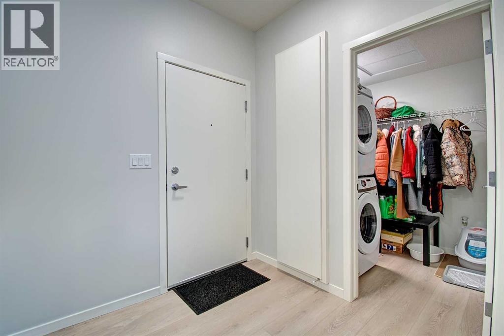 Welcome to this beautifully appointed ground floor condo in the vibrant community of Seton. Built in 2025, this modern 1 bedroom, 1 bathroom unit offers stylish and functional living, perfect for first time buyers, downsizers, or investors.Step inside to discover durable luxury vinyl plank flooring throughout and a bright open concept layout. The contemporary kitchen features sleek white quartz countertops, stainless steel appliances including fridge, stove, and dishwasher, and ample cabinetry, making it both elegant and practical. Enjoy the convenience of in unit stacked laundry for added ease.The spacious bedroom is complemented by a well designed bathroom, while the large ground floor balcony provides the perfect outdoor space for relaxing or entertaining. Ideal for those with mobility considerations, this unit offers easy access with no stairs required.Additional highlights include one assigned surface parking stall and a prime location close to shopping, dining, amenities, and transit in one of Calgary’s most sought after communities. (id:63190)