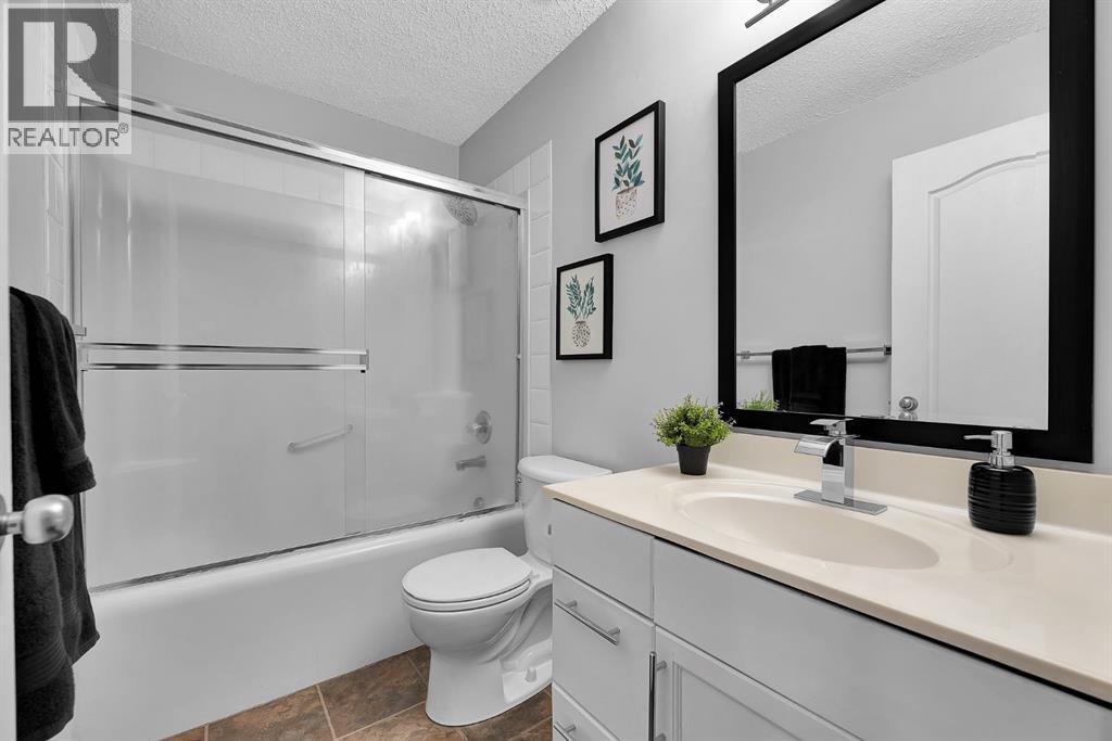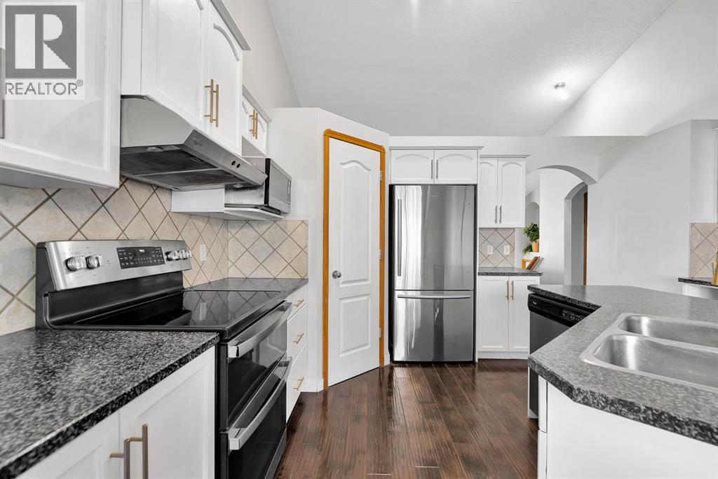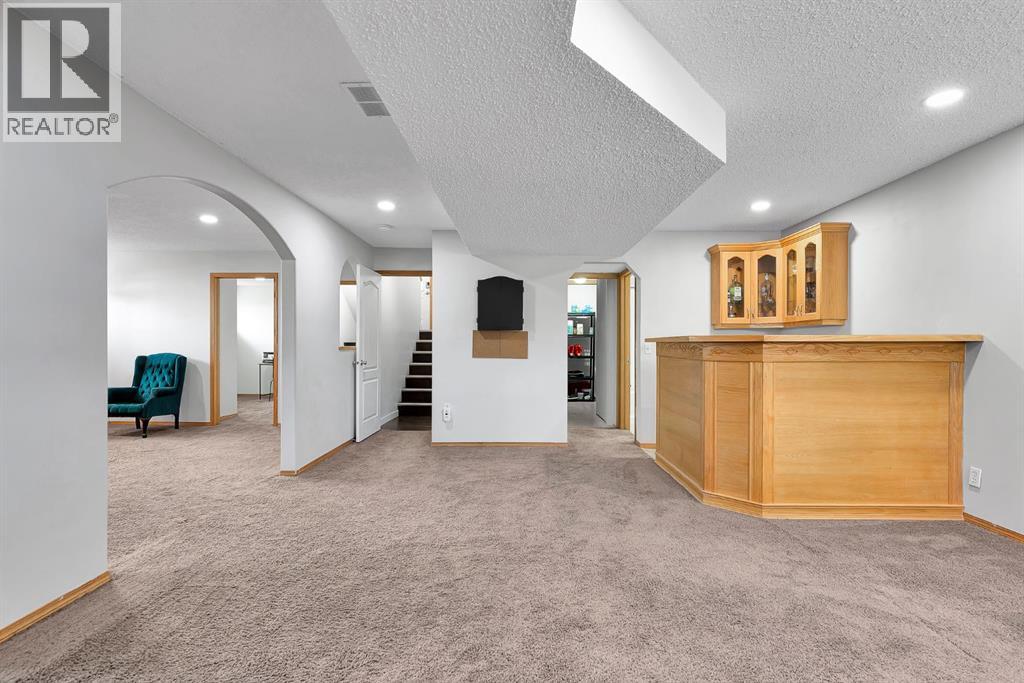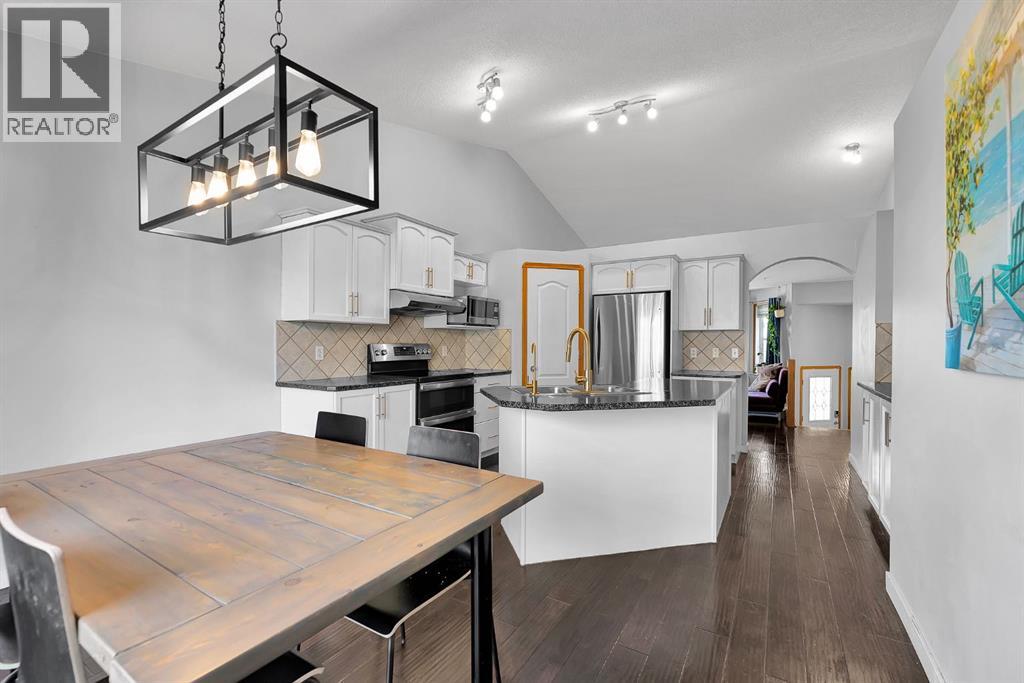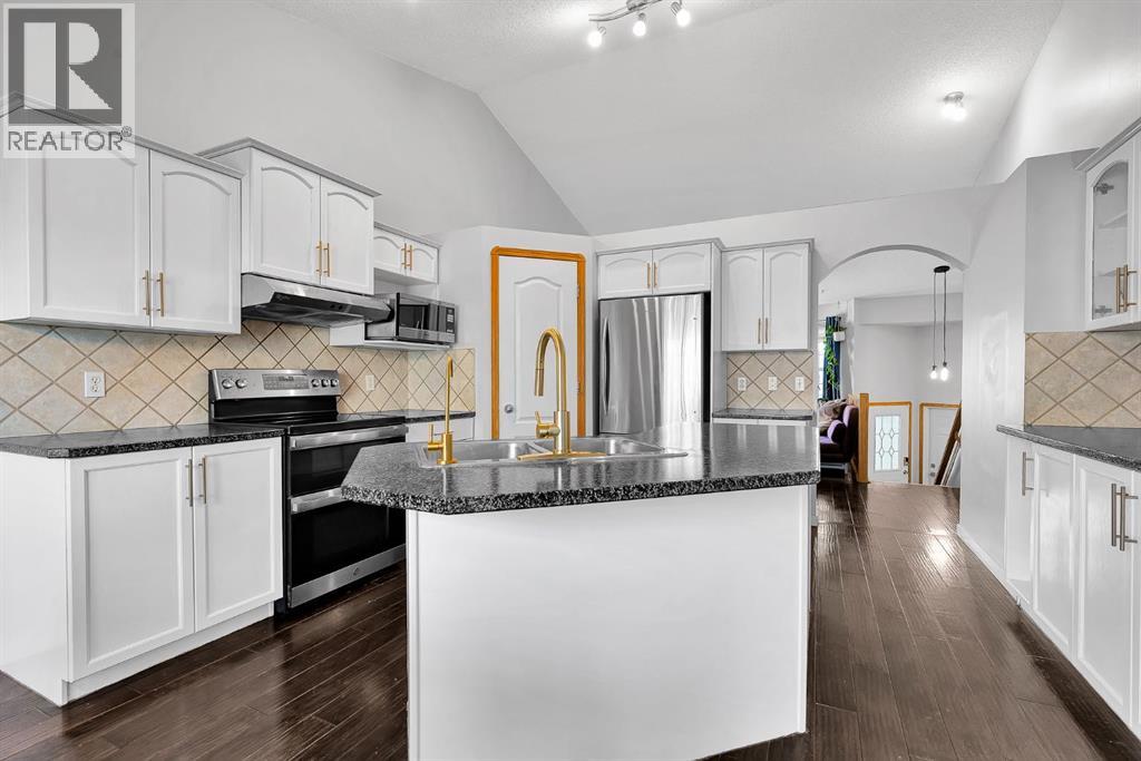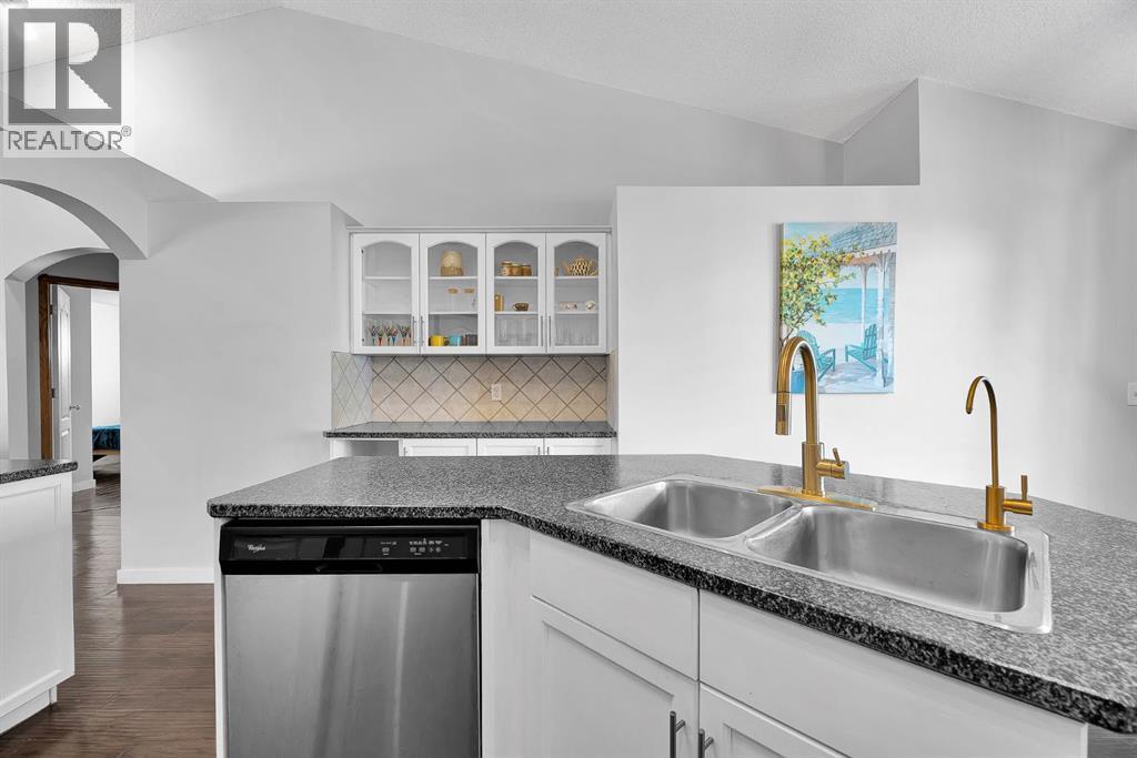 Located in the established community of West Creek, just steps from a park/playground, walking paths and within easy walking distance of three schools, numerous shops and restaurants, the Chestermere Family Bike Park, Lakeside Greens Golf Course, and a quick drive to the public beach is this fully-developed bi-level home with double attached garage! Enjoy a quiet morning coffee on the covered, south-facing front patio! Perfect for first time buyers or a growing family, the main floor features three bedrooms, including a spacious primary with double closets and a 3 piece ensuite, a 4 piece main bathroom, a bright living room and adjoinned kitchen and dining area, all featuring high vaulted ceilings which expand the feel of these spaces. The kitchen offers plenty of counter and cabinet storage, a built-in wine rack, corner pantry and stainless steel fridge, dishwasher and stove. The dining area overlooks the rear deck and fenced back yard. The bright basement offers plenty of open space, a recreation area with wet bar, family room with gas fireplace, an office/den, 4 piece bathroom and laundry area. Great value for a fully-developed, detached home with attached double garage in a convenient location! (id:63190)