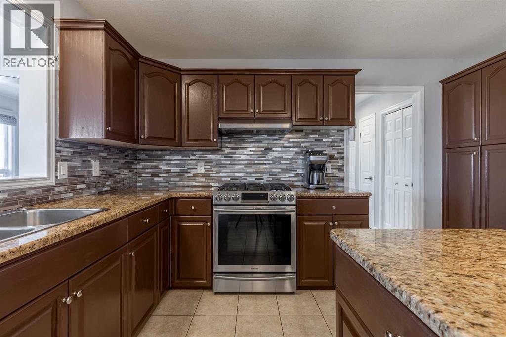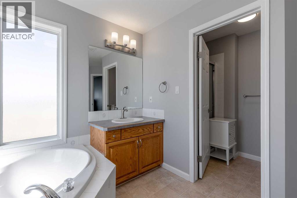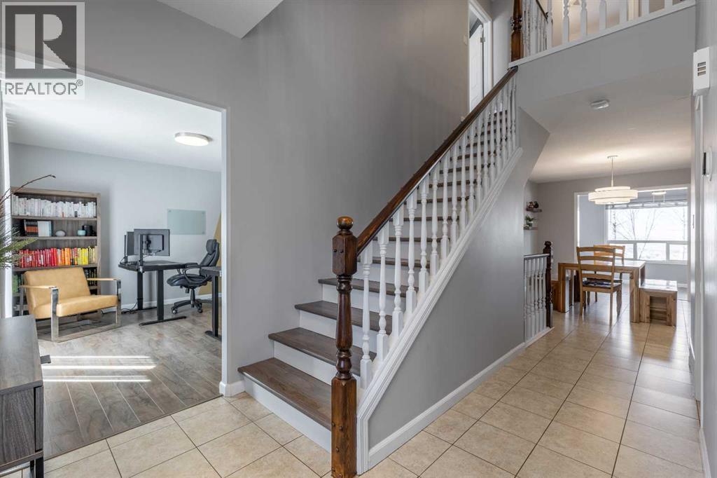 Here's a stunning and spacious home in Mountain Meadows; situated on 1 acre that backs green space and the coulees! This 2 storey boasts nearly 2,800 sq/ft of living space above grade alone with an additional 1,080 sq/ft of living space in the basement. There's a oversized 35'11" x 21'6" attached garage along with a tremendous amount of parking on the driveway and a cozy east-facing front veranda, along with timeless exterior architectural lighting. Stepping inside, there's an office/flex space just off of the entryway, an eat-in kitchen with granite counter tops and island for food prep. The living room is complete with a fireplace and the sun room in the back of the home acts as a multi-use space bracketed by the west-facing coulee views. There's a laundry room/mudroom off the garage complete with a sink and a powder bathroom rounds off the main floor. Heading upstairs, there are 4 bedrooms and 2 full bathrooms. The primary retreat boasts TWO walk-in closets and a 5 piece ensuite, including a jetted tub. The finished basement has 2 more bedrooms (both with walk-in closets), a 4 piece bathroom and well sized family room. The 1 acre lot is fenced and includes a fenced-in garden, additional planter boxes, a deck with natural gas line for BBQing and mature trees! (id:63190)