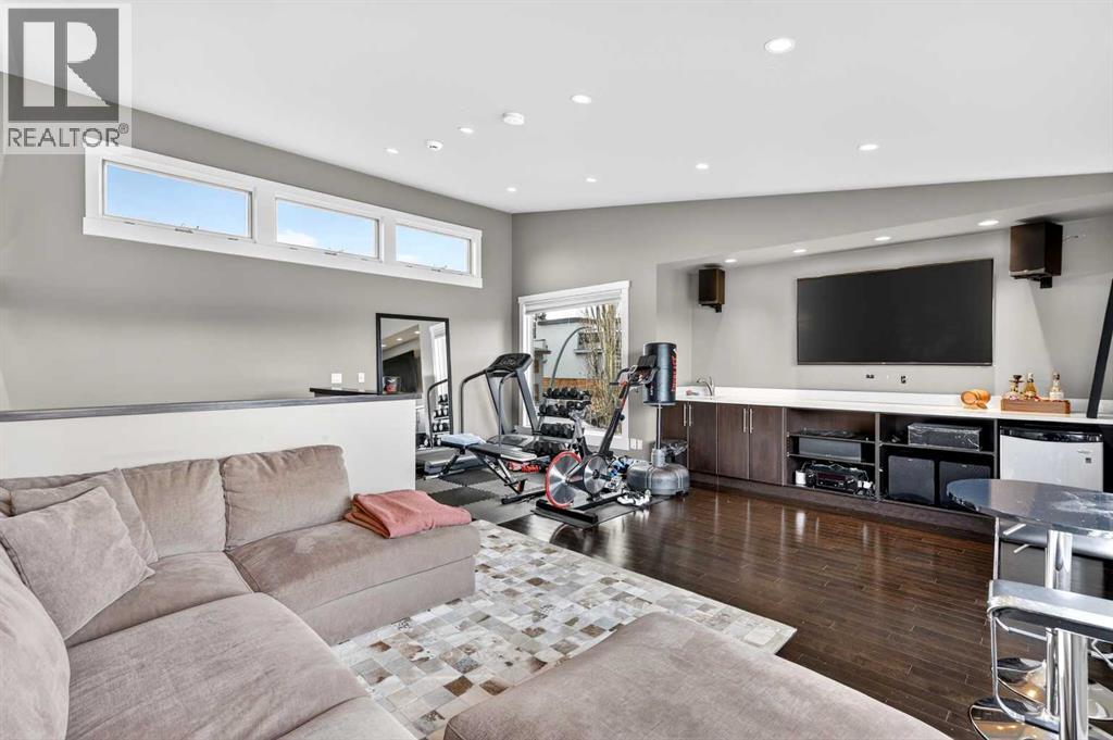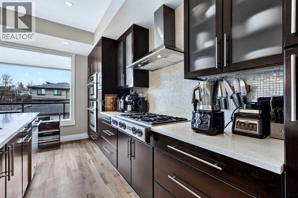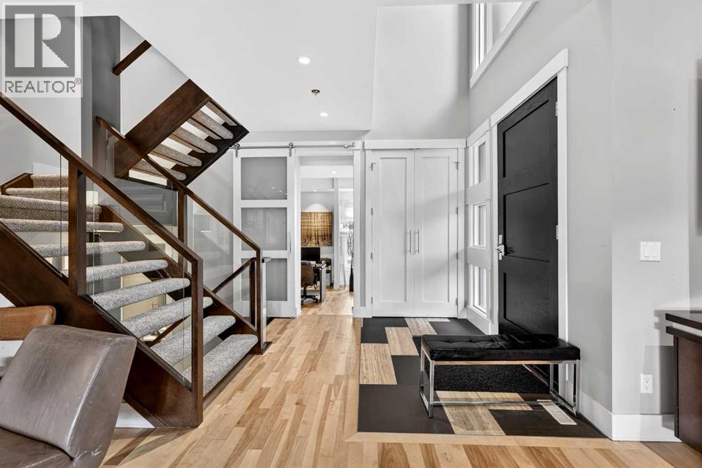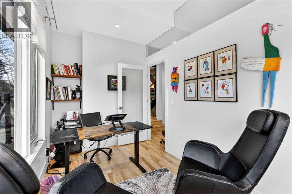 Nestled on a corner lot in the heart of the established inner city community of South Calgary, this meticulously maintained and move-in-ready 3-bedroom home offers nearly 3,300 sq ft of luxury living space. Extensively renovated with high-end upgrades throughout, this home ensures a modern, premium experience for families who value both comfort and connection.The bright, open concept main floor is ideal for everyday living and entertaining, featuring beautifully refinished hardwood floors, high ceilings, and large windows that fill the home with natural light. The spacious living room is anchored by a cozy floor-to-ceiling fireplace with built ins perfect for family movie nights. The chef inspired kitchen is both stylish and functional, complete with quartz countertops, a generous island, and easy access to the deck for effortless summer BBQs. A standout feature on this level is the dedicated professional office space, providing the ultimate environment for working from home or private consultations, while two convenient powder rooms complete the main level.Upstairs, a unique split staircase leads to a well planned layout featuring new high end carpet throughout. The primary suite provides a peaceful retreat with a double sided fireplace, walk in closet, and a 5 piece ensuite with heated floors and a soaker tub. A third bedroom offers added privacy with its own ensuite and access to a private balcony perfect for older kids, guests, or extended family. An additional versatile workspace on the upper levels offers flexibility for a second home office or homework station.The top level is a true bonus space the whole family will love, with a large media/family room and wet bar ideal for game nights, movie marathons, or entertaining friends. Step out onto the rooftop patio and take in the city views while the kids play or unwind at the end of the day.The fully developed basement adds even more space with a recreation room, laundry area, and direct access to the double attached underdrive garage making busy family life that much easier. Additional features include central air conditioning and built in speakers. Outside, enjoy a private, professionally landscaped yard featuring a beautiful outdoor living space perfect for summer evenings and a secure area for children and pets to play.Located just steps from parks, excellent schools, and all the amenities of Marda Loop, with quick access to downtown via 14th Street, this home offers the perfect balance of inner city convenience and family friendly luxury. (id:63190)