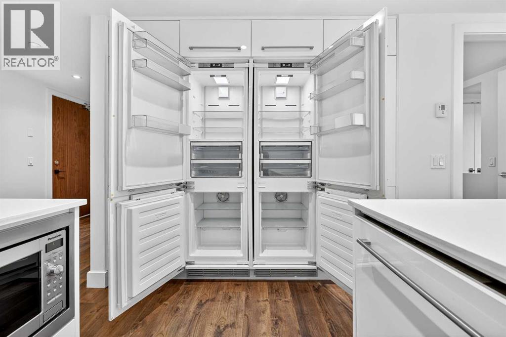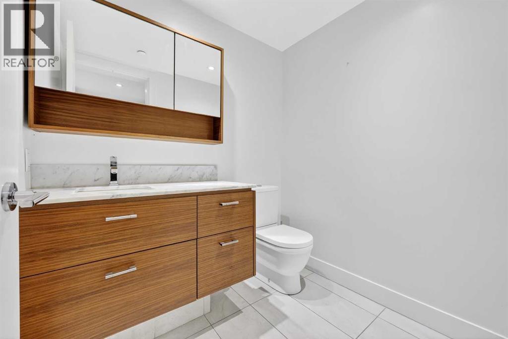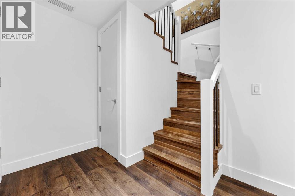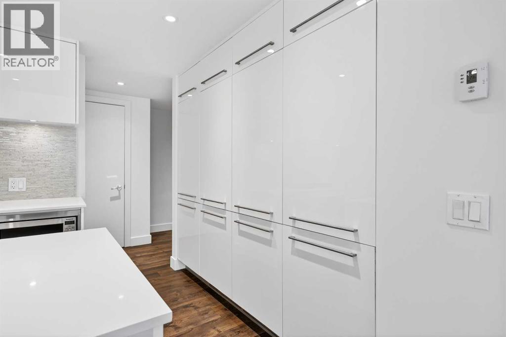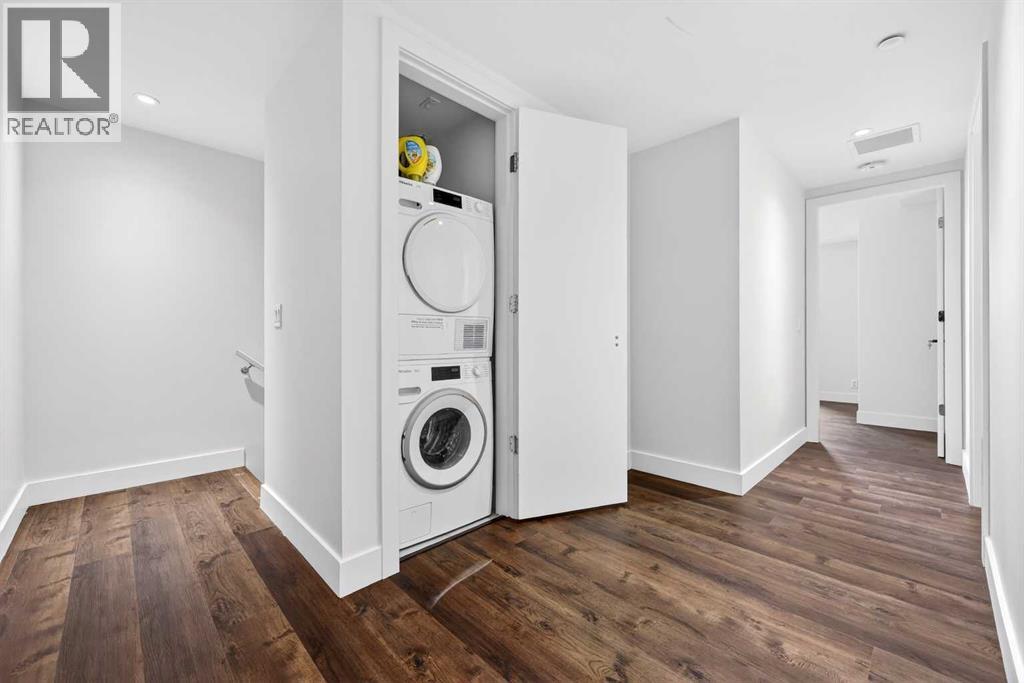 Welcome to one of the most unique offerings in the highly sought-after Avenue West End—a beautifully designed 2-bedroom, 2.5-bathroom multi-level residence that blends the convenience of condo living with the feel of a sophisticated townhome. Also, you can operate a home business or run your business from this street-front 2-story condo. Perfectly positioned in the heart of downtown, just steps from the Bow River pathways, C-Train, parks, and everyday amenities, this pet-friendly building with 24-hour concierge service offers an unbeatable urban lifestyle.With its own private street-level entrance and an expansive elevated front terrace, this home invites seamless indoor-outdoor living—ideal for morning coffee, evening wine, or entertaining guests. Inside, the thoughtfully designed layout spans multiple levels, creating a sense of space and separation rarely found in condo living.The main floor is both stylish and functional, featuring engineered hardwood and tile flooring throughout. A welcoming living room flows effortlessly into the central dining area and a beautifully appointed kitchen. Designed with both everyday living and entertaining in mind, the kitchen showcases quartz countertops, a peninsula island with seating, full-height cabinetry, a marble backsplash, a built-in pantry, wine storage, and premium stainless-steel appliances, including a gas range and a built-in refrigerator. A versatile den with additional storage, a chic powder room, and a secondary interior entrance completes this level.Upstairs, the primary suite offers a private retreat with three organized closets and a spa-inspired ensuite featuring dual vanities, a glass walk-in shower, and heated floors. The second bedroom is generously sized and ideally located next to the main four-piece bathroom, which also includes in-suite laundry and heated tile floors—adding both comfort and convenience.Floor-to-ceiling windows flood the home with natural light, while central air conditioning and m odern roll-up blinds ensure year-round comfort.This exceptional property includes two titled underground parking stalls and a titled storage locker—an increasingly rare find in the downtown core.Residents of Avenue West End enjoy premium amenities, including a fully equipped fitness center, dog wash station, bicycle workshop, and 24-hour concierge/security service.Offering a rare combination of style, function, and location, this is an outstanding opportunity to own one of the building’s most desirable and unique floor plans (id:63190)