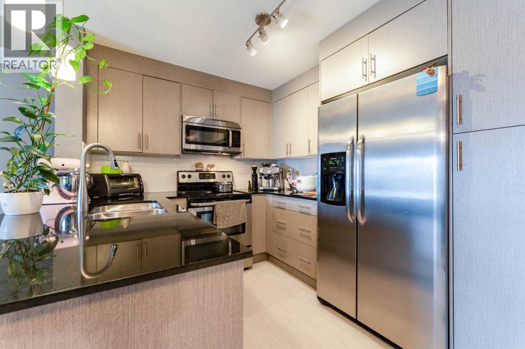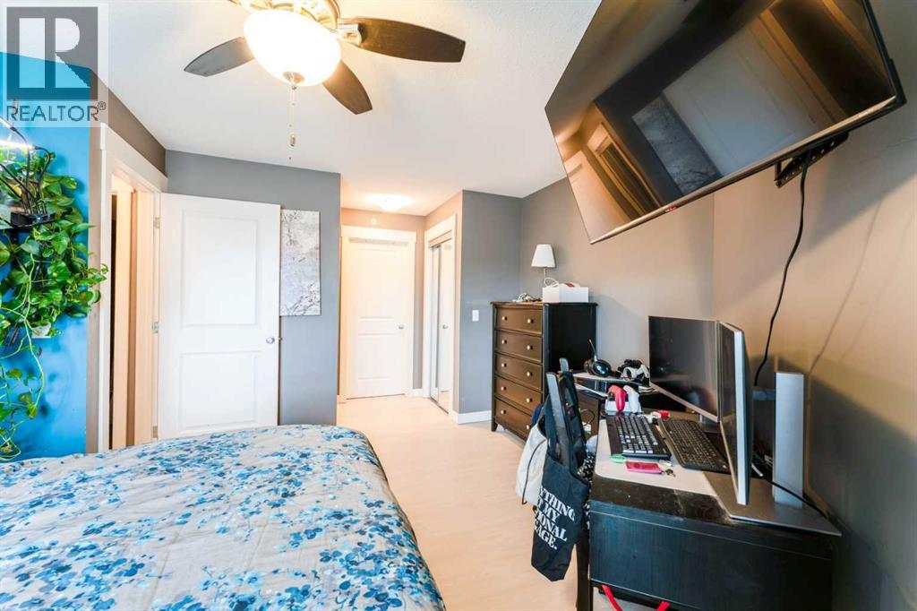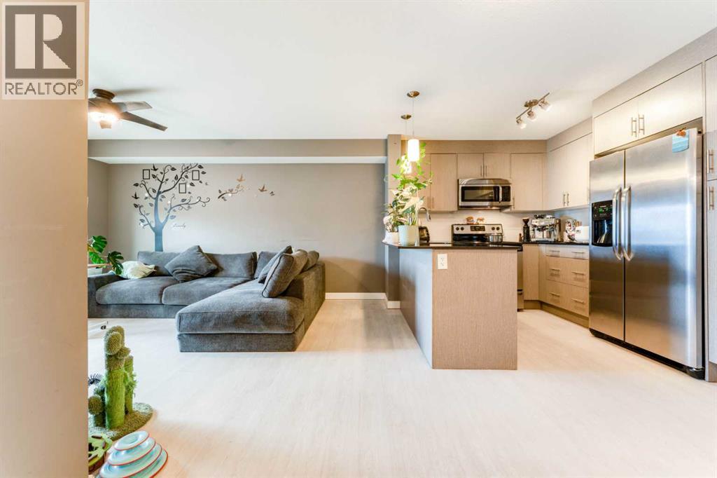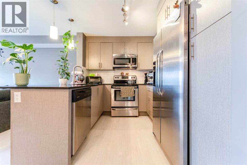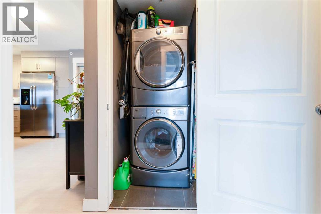 Welcome to this stunning top-floor, south-facing unit in Skymills at Skyview! Offering 806 sq ft of thoughtfully designed living space, this bright and airy 2-bedroom, 2-bathroom condo is filled with natural light throughout the living room, kitchen, primary bedroom, and private balcony. The open-concept layout is perfect for both everyday living and entertaining, while the smart bedroom separation provides added privacy. The spacious primary suite features a walk-through dual closet leading to a beautiful 4-piece ensuite. A second bedroom and full bathroom make this home ideal for guests, roommates, or a home office setup. Enjoy the convenience of in-suite laundry, updated floors, underground parking, and ample guest parking. Located close to shopping, schools, parks, and an abundance of pathways and green space, this home offers both comfort and lifestyle. (id:63190)