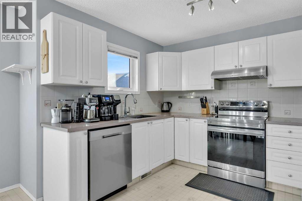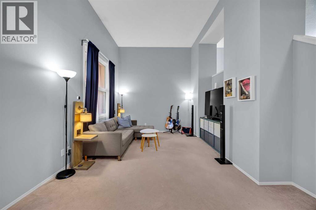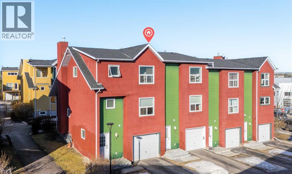 This well-maintained end unit offers added privacy, great natural light, and a functional multi-level layout designed for comfortableeveryday living. The entry level features a convenient 2-piece bathroom, generous space for coats and shoes, and direct access to the attachedgarage. A short flight up, the bright living room stands out with extra-tall ceilings and a cozy gas fireplace, creating a spacious, airy feel that’s hard tofind in townhome living. The next level opens into a large kitchen and dining area with enough room to accommodate a sitting area or workspace,making it ideal for both daily living and entertaining. Upstairs, the primary bedroom includes a 4-piece ensuite and access to a private, coveredbalcony. Two additional bedrooms, a full bathroom, and upper-level laundry complete the upper floor. The fully finished basement provides a versatilebonus space that works well as a home office, gym, media room, or hobby area, while still offering plenty of storage. Recent updates within the pastfive years include a raised front deck with new boards and railing, three exterior doors, and eleven windows. Major mechanical upgrades have alsobeen completed, including a furnace and hot water tank replaced approximately three years ago, along with the addition of a water softener. As anend unit, the home further benefits from additional windows and a quieter setting within the complex. Conveniently located within walking distance toshopping, schools, parks, and restaurants, this property offers a practical layout and an easy Okotoks lifestyle. (id:63190)