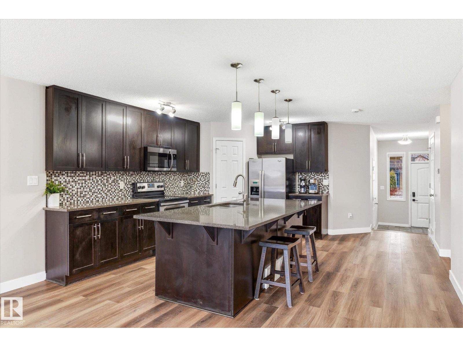 Beautifully maintained open-concept half duplex in desirable Chappelle Gardens, offering modern comfort and exceptional privacy. Backing directly onto a walking trail, this home features a west-facing backyard offering abundant natural light and no close rear neighbours. Recent upgrades include new vinyl plank flooring on the main floor (2026) and a new microwave hood fan (2026). The bright and inviting main level showcases a spacious living room and a stylish kitchen with granite countertops, a large island, upgraded cabinetry, and a convenient 2-piece bathroom. Upstairs offers a versatile bonus room, 2 spacious bedrooms, and a stunning primary suite complete with a large walk-in closet and a luxurious ensuite featuring dual sinks and a walk-in shower. Perfectly designed for comfortable family living, this home is ideally located close to parks, shopping, restaurants, and all everyday amenities. (id:63190)