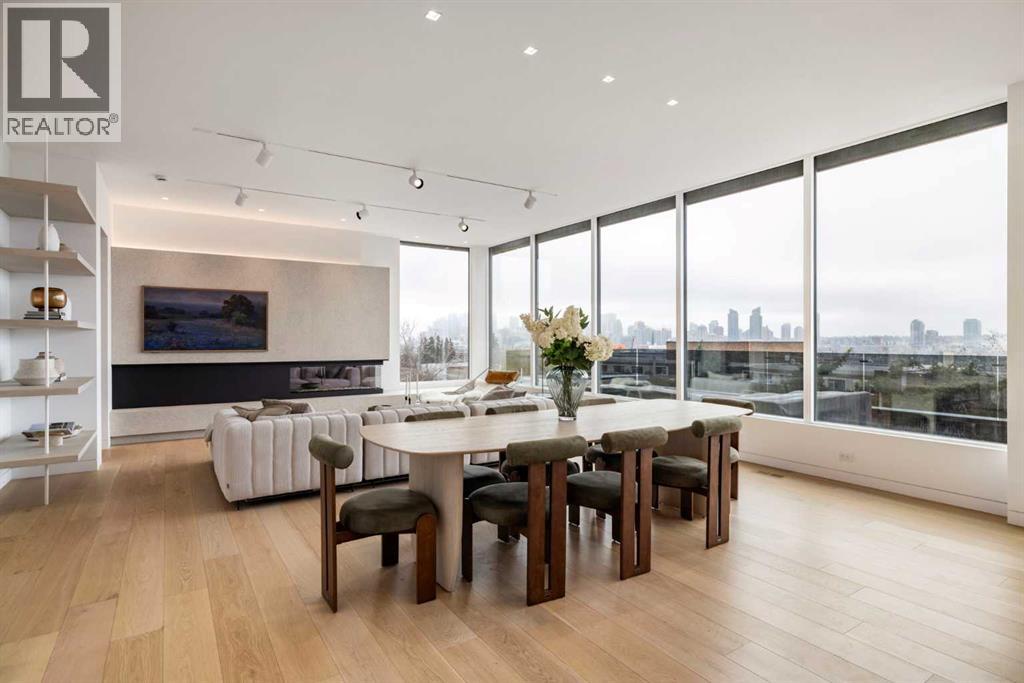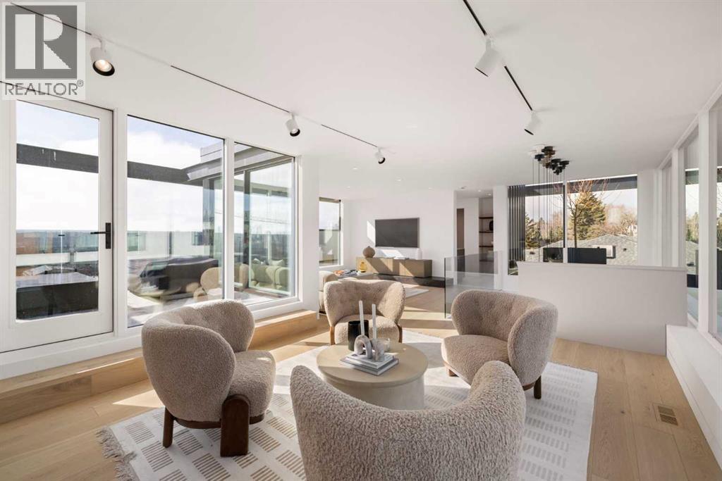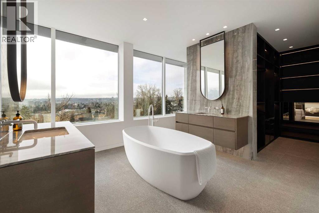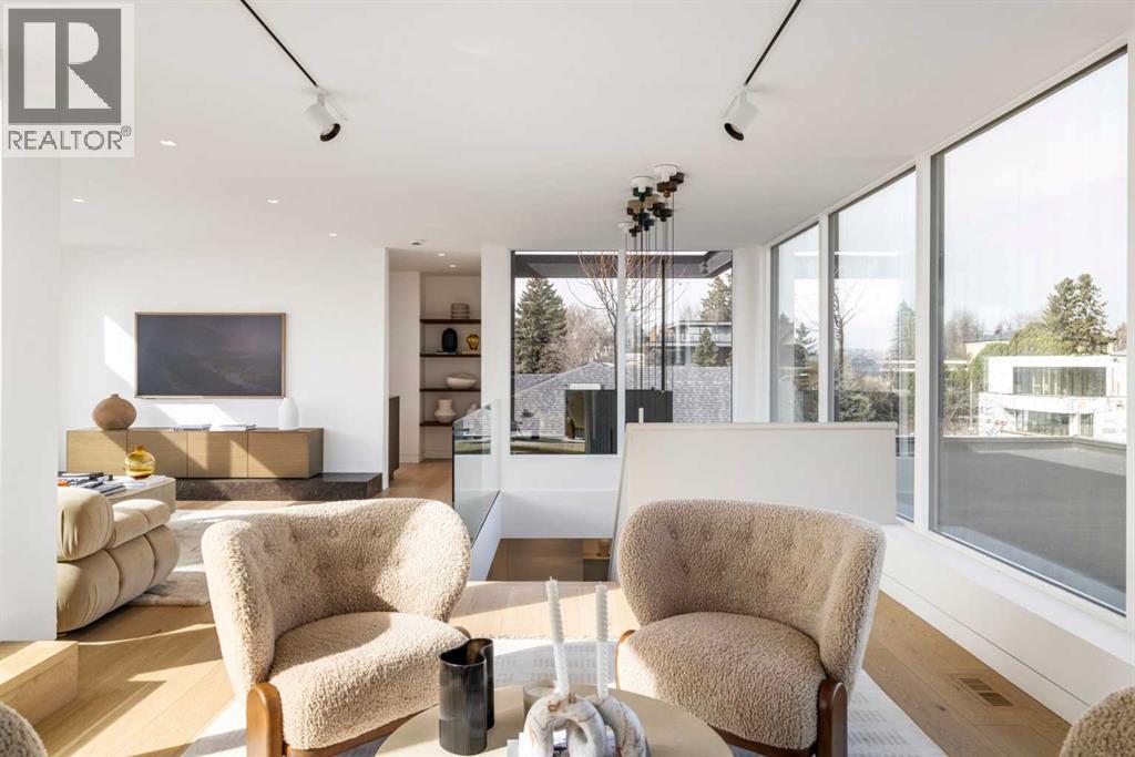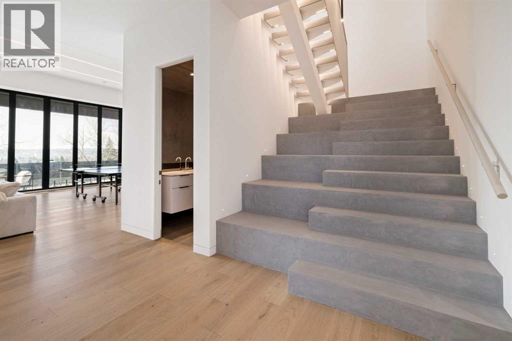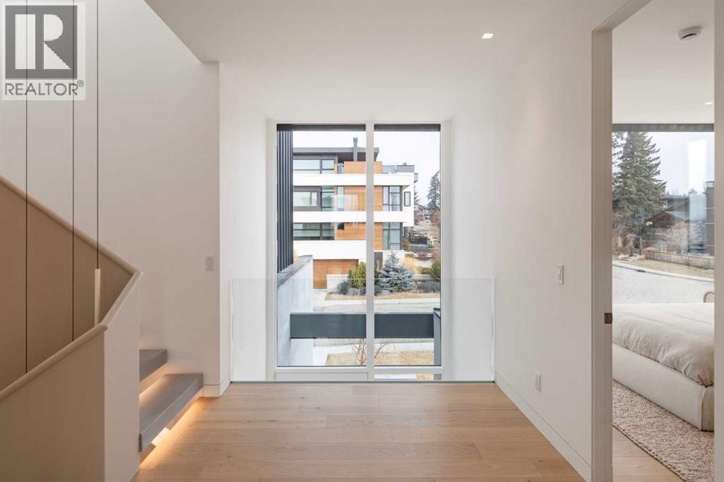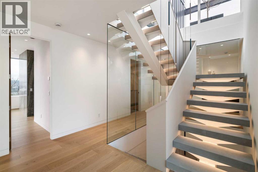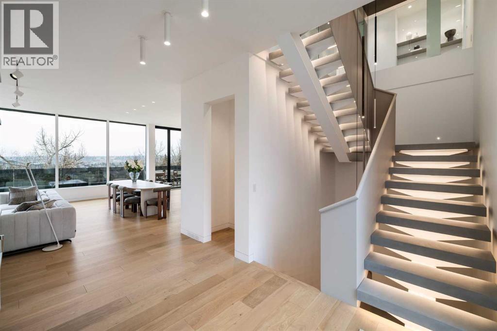 Nestled in the prestigious Briar Hill neighborhood, this warm contemporary masterpiece, built by Wurzer Page Homes, spans 6,000 sq ft of exquisite living space, embodying California-inspired design and exceptional craftsmanship. Designed by R-EID Studio as a true architectural gem, this south-facing home boasts unequaled city views from every level, with all three exterior patio spaces basking in southern light, framed by an oversized Loewen window package. Constructed with steel, wood, and concrete, the residence exudes sophistication with high-end quartzite and stone finishes, matte white California Faucets, and a stainless steel island. The entire home operates on a Lutron control system, featuring designer light fixtures throughout, including a stunning Bocci light fixture above the basement bar. Designed for seamless entertaining, the walkout basement offers a 12-foot ceiling and a 36’ wide folding door, blending indoor and outdoor living. Perfect for hosting or relaxation, the home includes a 400 sq ft dedicated gym, a serene office with floor-to-ceiling windows, and heated floors in the basement and garage, with rough-in for driveway heat. Located in a tranquil setting next to green space, surrounded by luxury homes, it’s close to downtown and hospitals. With too many features to capture in print, this home must be experienced in person—a private tour is recommended. Potential buyers are advised to drive by at night to witness the captivating illumination. Vendor financing available upon approval. (id:63190)