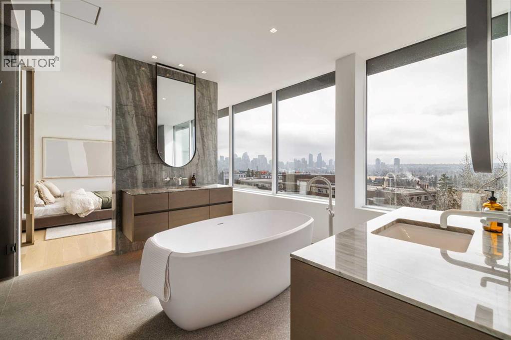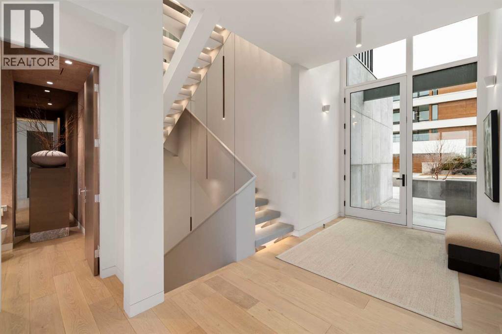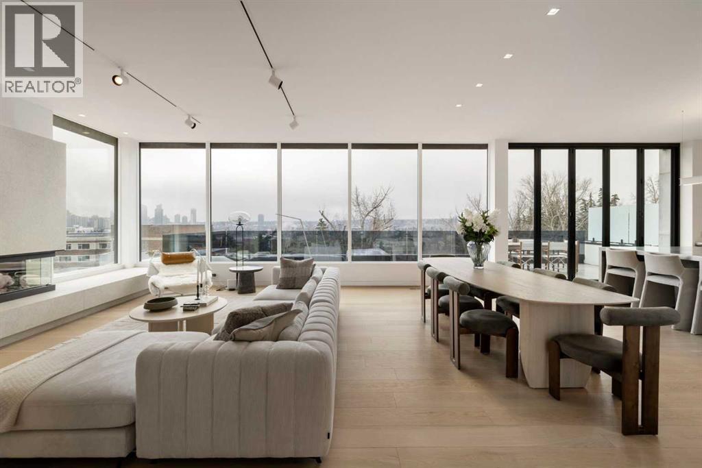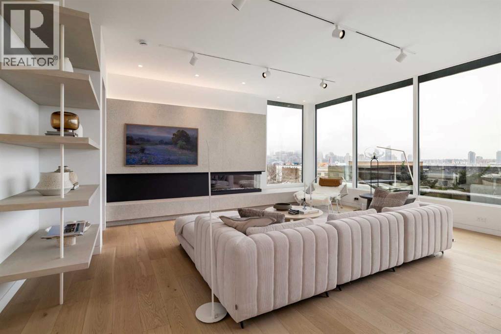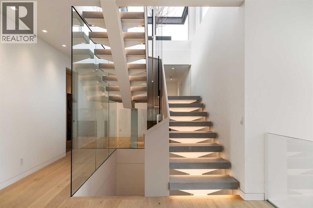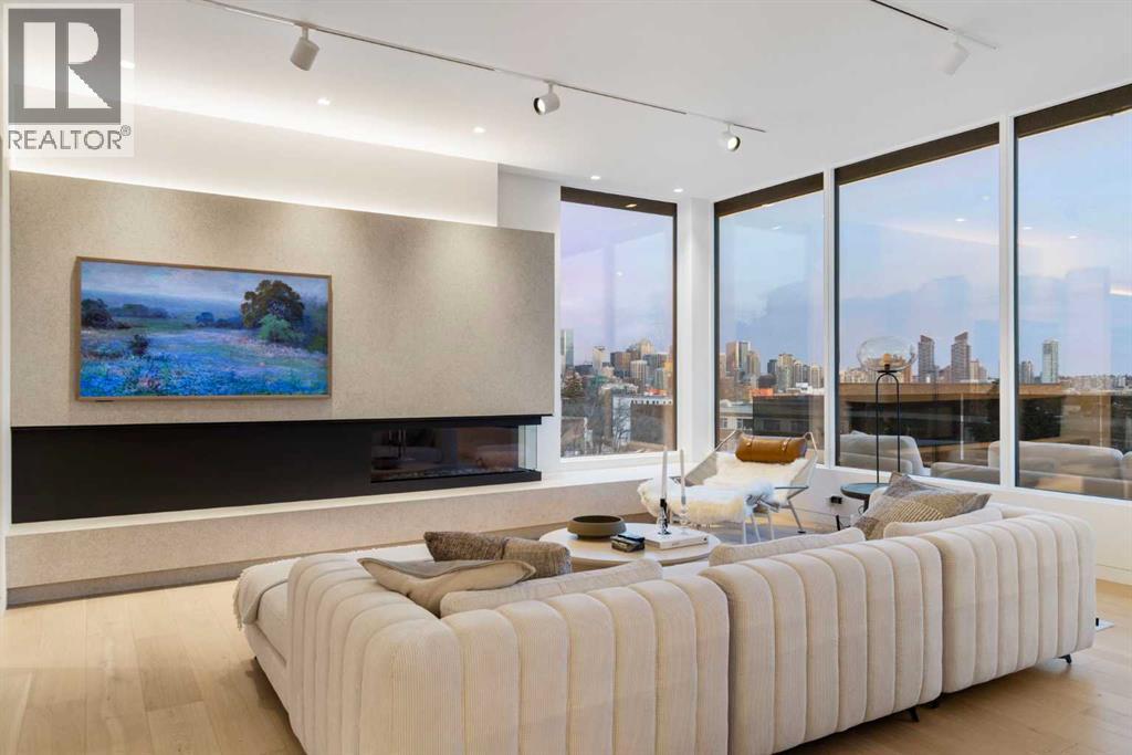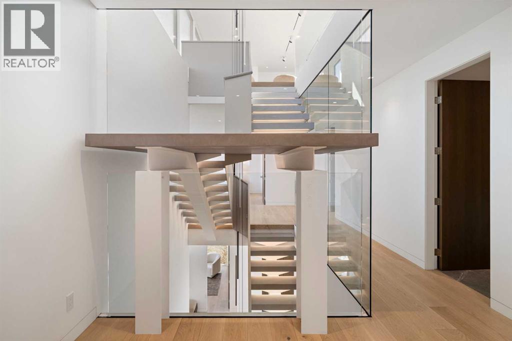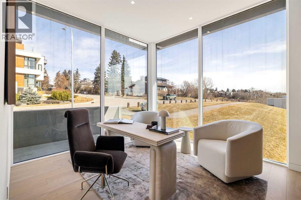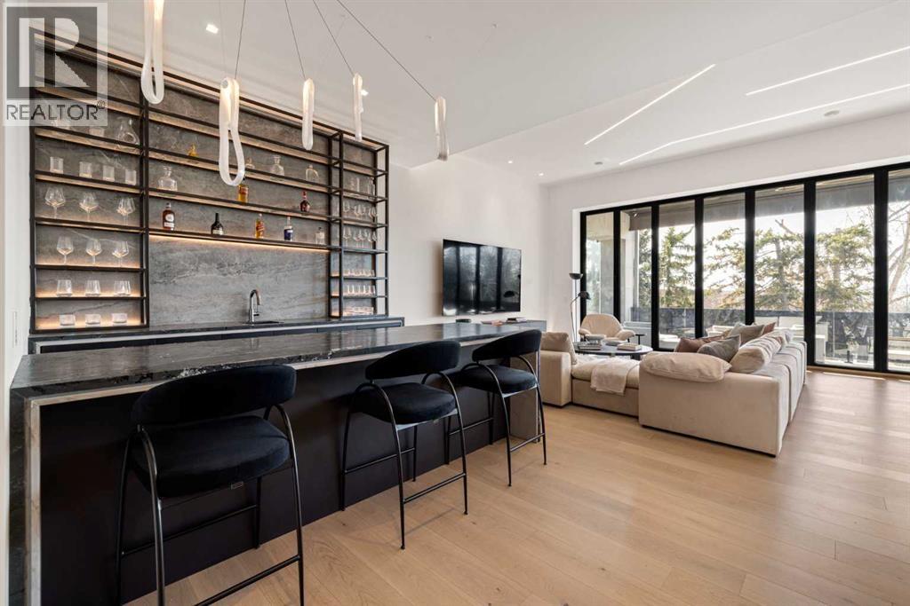 Nestled in the prestigious Briar Hill neighborhood, this warm contemporary masterpiece, built by Wurzer Page Homes, spans 6,000 sq ft of exquisite living space, embodying California-inspired design and exceptional craftsmanship. Designed by R-EID Studio as a true architectural gem, this south-facing home boasts unequaled city views from every level, with all three exterior patio spaces basking in southern light, framed by an oversized Loewen window package. Constructed with steel, wood, and concrete, the residence exudes sophistication with high-end quartzite and stone finishes, matte white California Faucets, and a stainless steel island. The entire home operates on a Lutron control system, featuring designer light fixtures throughout, including a stunning Bocci light fixture above the basement bar. Designed for seamless entertaining, the walkout basement offers a 12-foot ceiling and a 36’ wide folding door, blending indoor and outdoor living. Perfect for hosting or relaxation, the home includes a 400 sq ft dedicated gym, a serene office with floor-to-ceiling windows, and heated floors in the basement and garage, with rough-in for driveway heat. Located in a tranquil setting next to green space, surrounded by luxury homes, it’s close to downtown and hospitals. With too many features to capture in print, this home must be experienced in person—a private tour is recommended. Potential buyers are advised to drive by at night to witness the captivating illumination. Vendor financing available upon approval. (id:63190)
