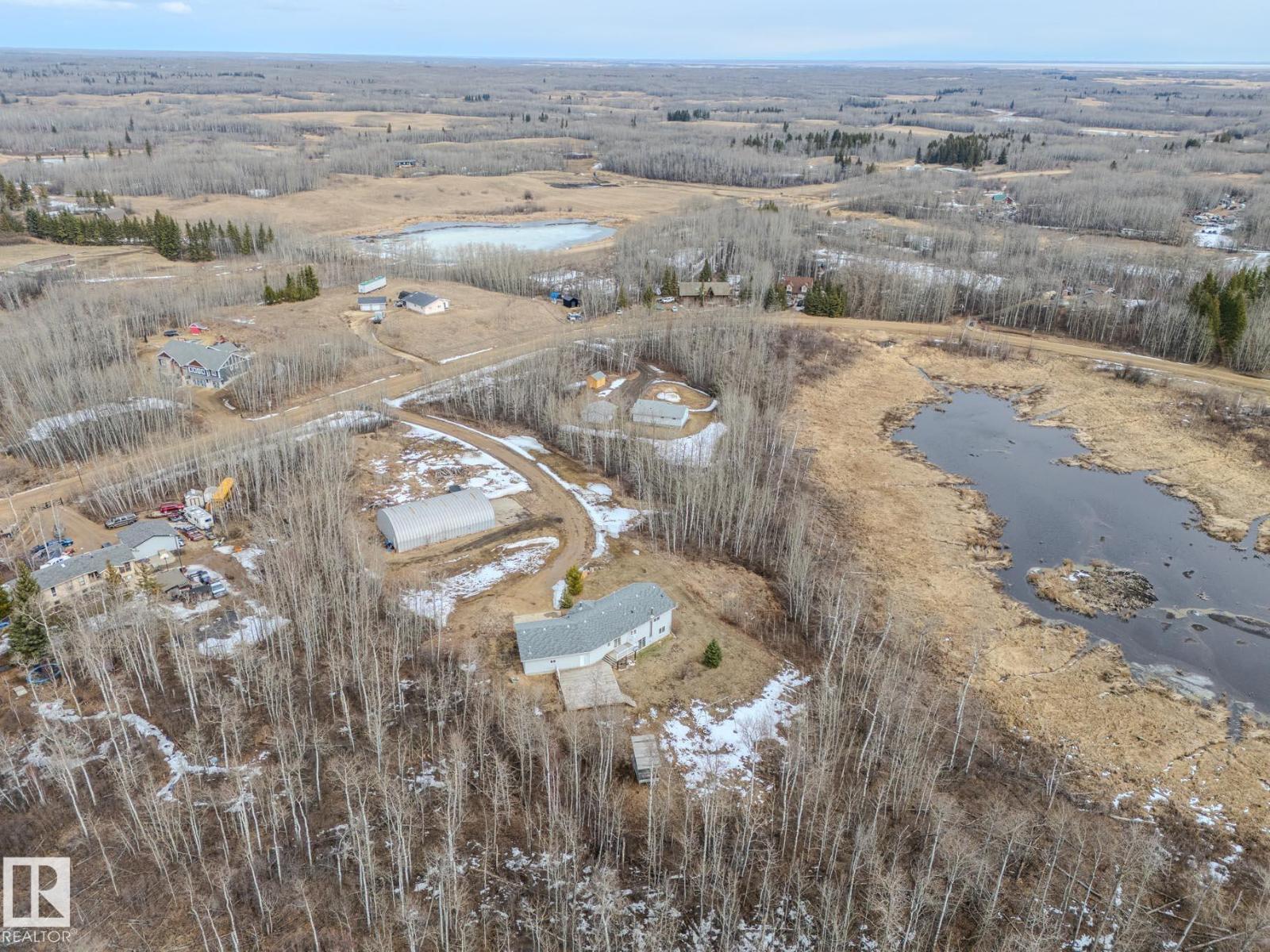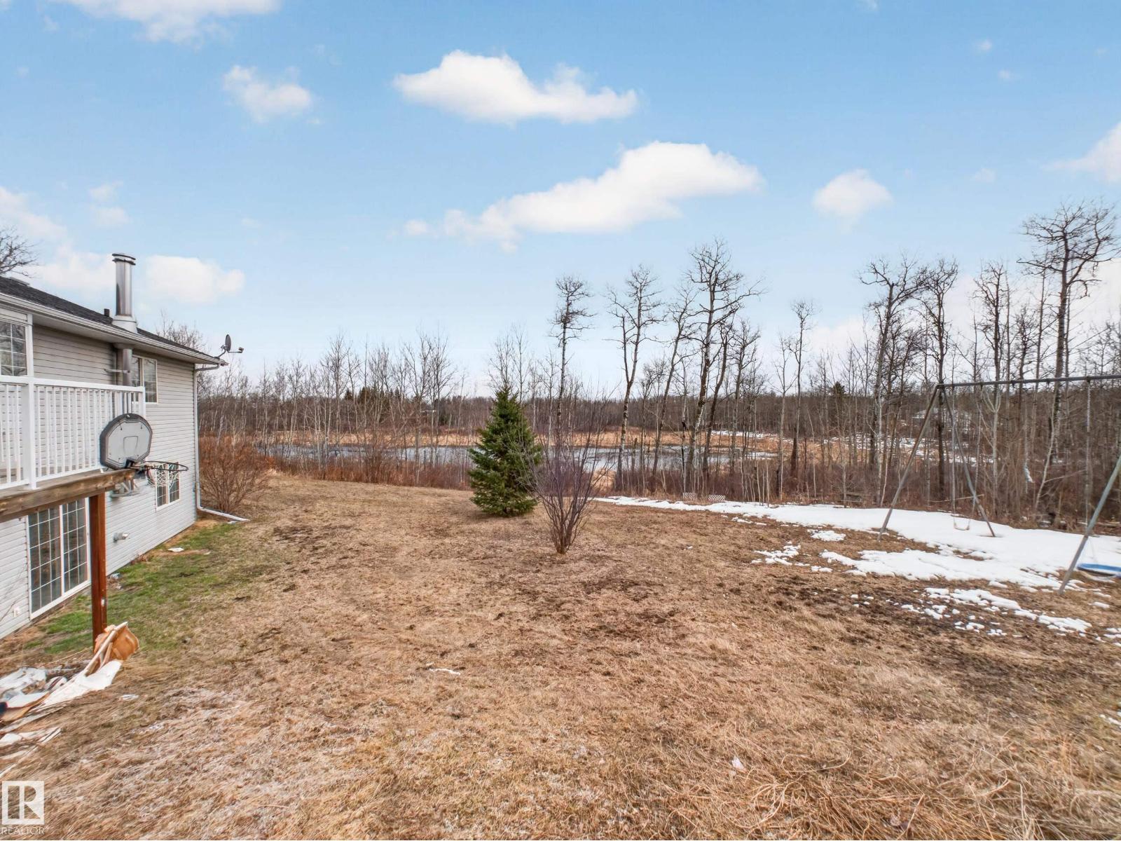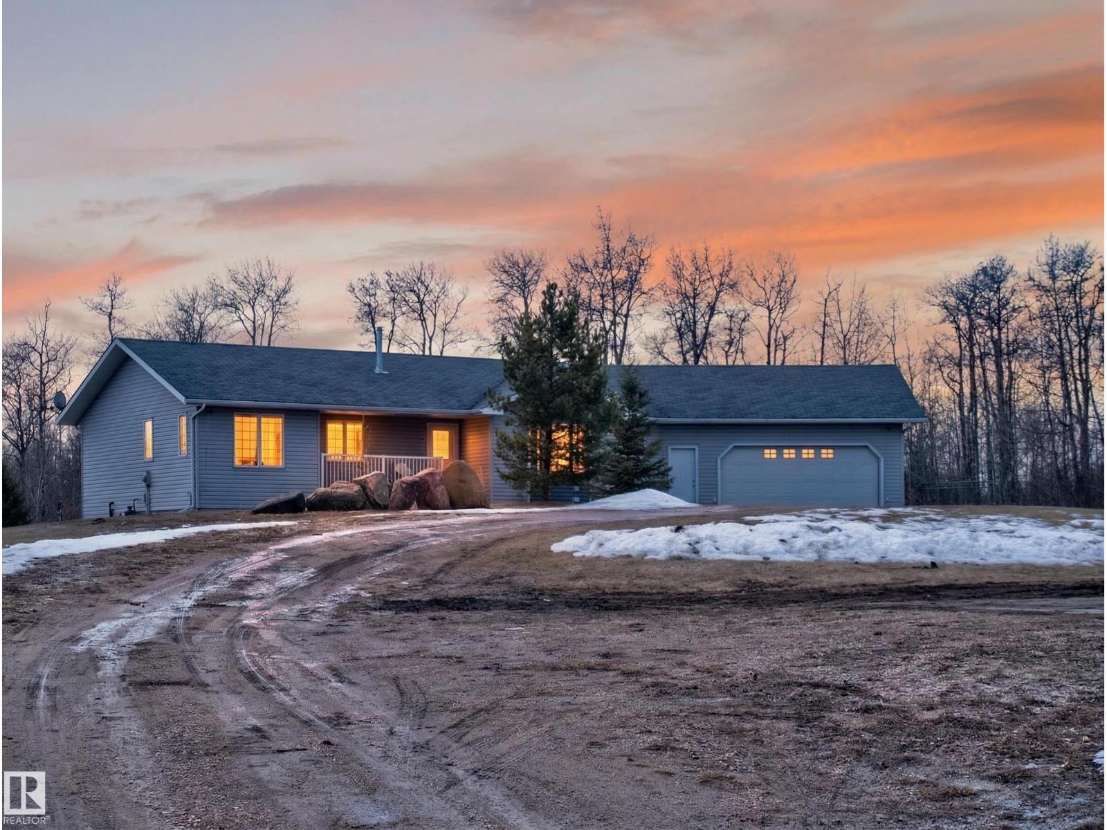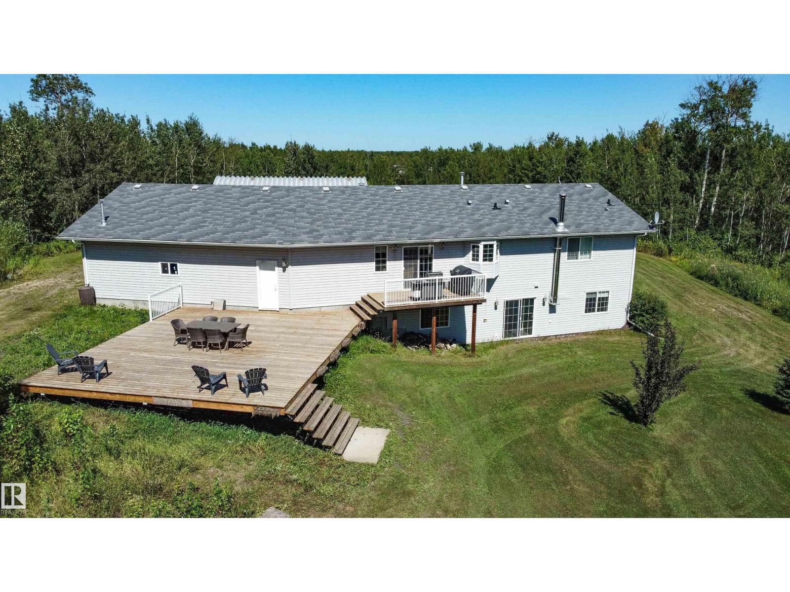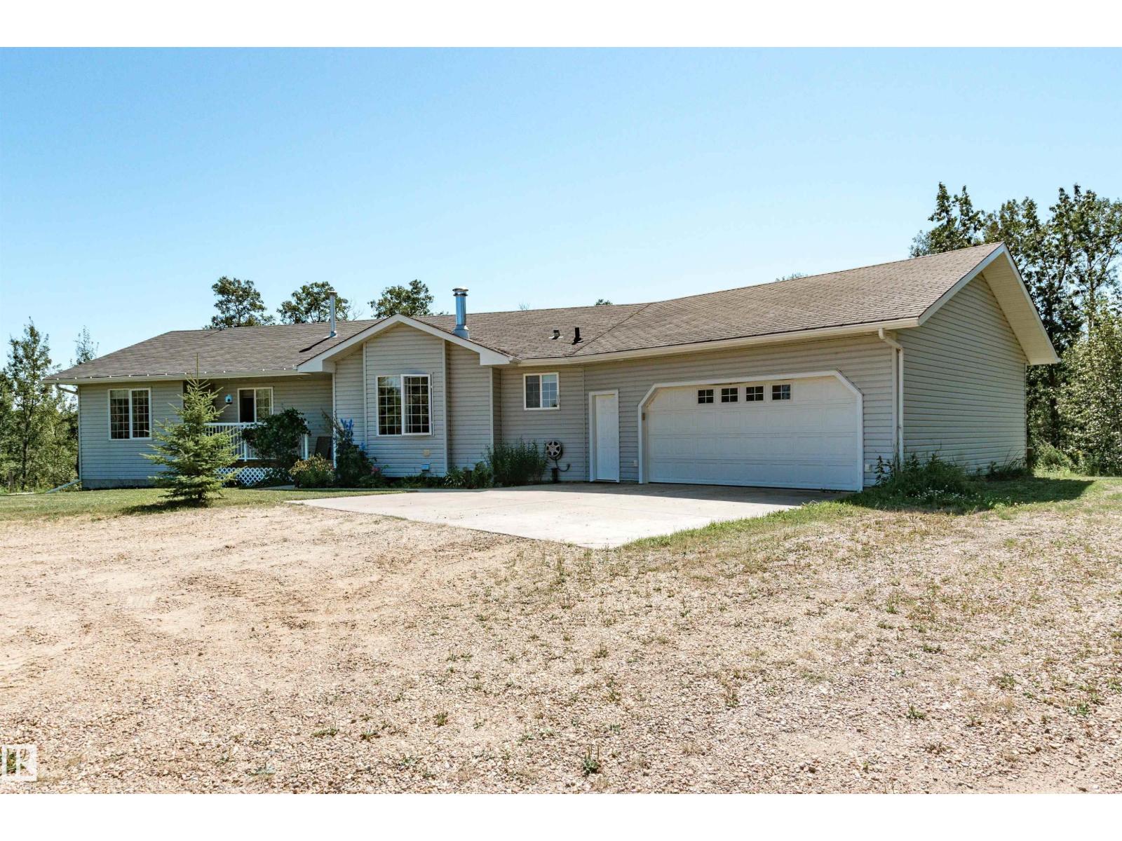 ~!WELCOME!~ A heated double garage PLUS a 63x40' metal Quonset with in-floor heat, boiler system, floor drain, service pit, 220 power, and a 20' overhead door — toys, work, or both… you’re set up. PLUS CITY WATER! And the land? TREES. PRIVACY. POND VIEWS. South-facing exposure with a picturesque pond to the east — this walkout bungalow checks the acreage boxes and then some. Inside, the open-concept main floor is anchored by a granite kitchen with island and stainless appliances. Three bedrooms up, including a primary with ensuite, plus the convenience of main floor laundry. Out back, a massive deck and dedicated BBQ area overlook nothing but nature. Quiet mornings. Long summer nights. This is why people move to the country! The walkout basement adds even more potential with 2 additional bedrooms, a bath, and a wood-burning fireplace to tie it all together. Municipal water, close to Tofield and Parkland Natural Area, and quick possession available. Acreage living done right. (id:63190)