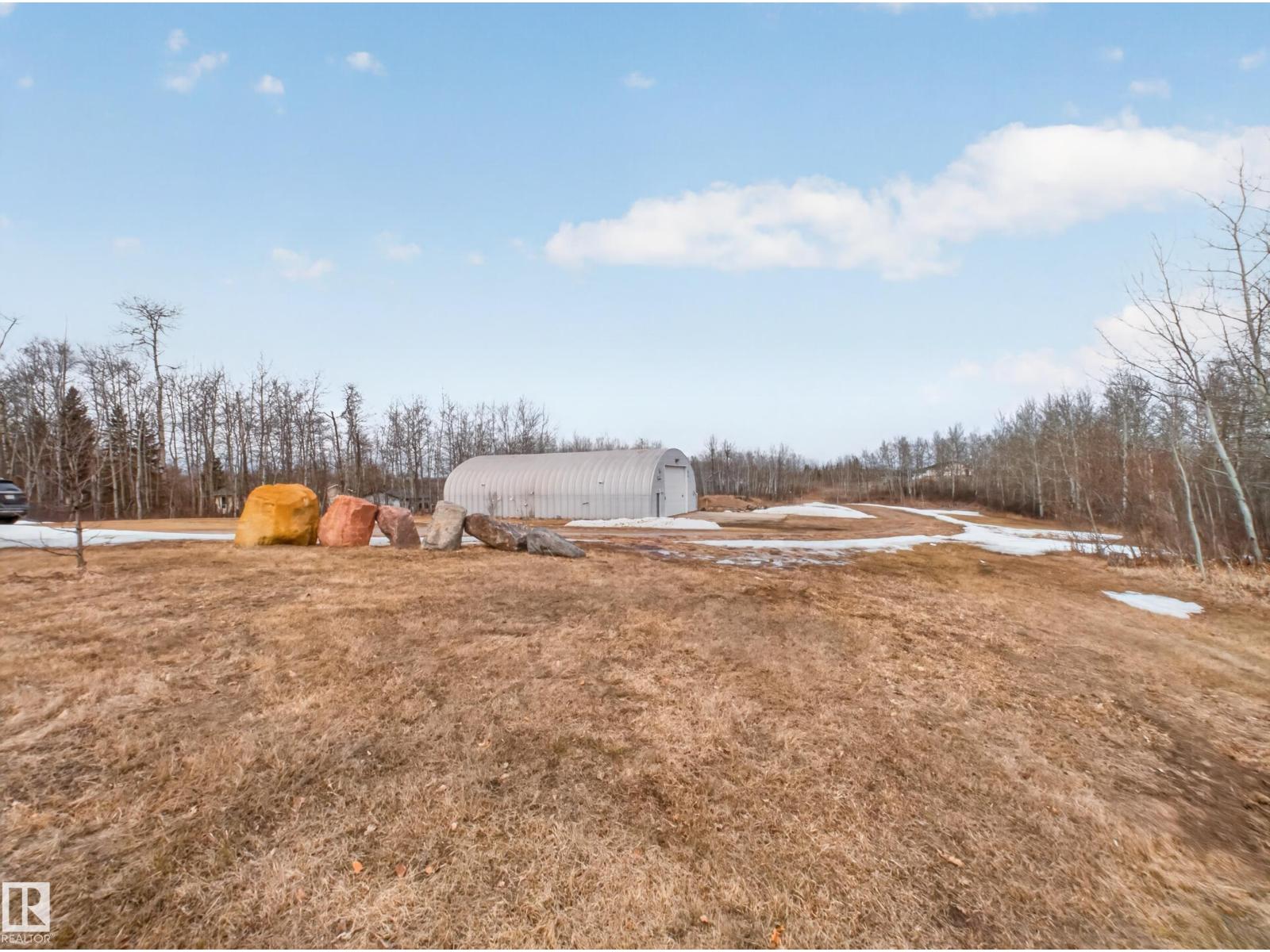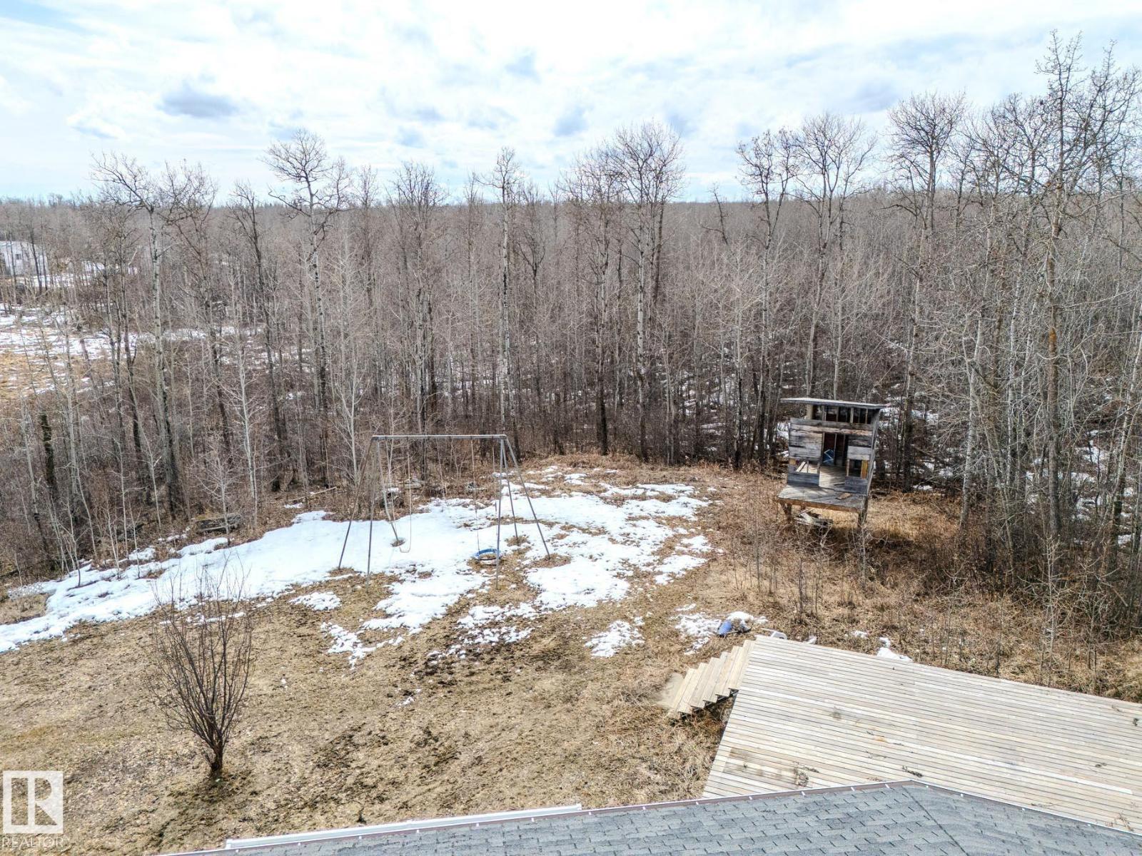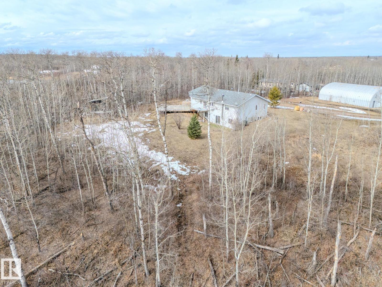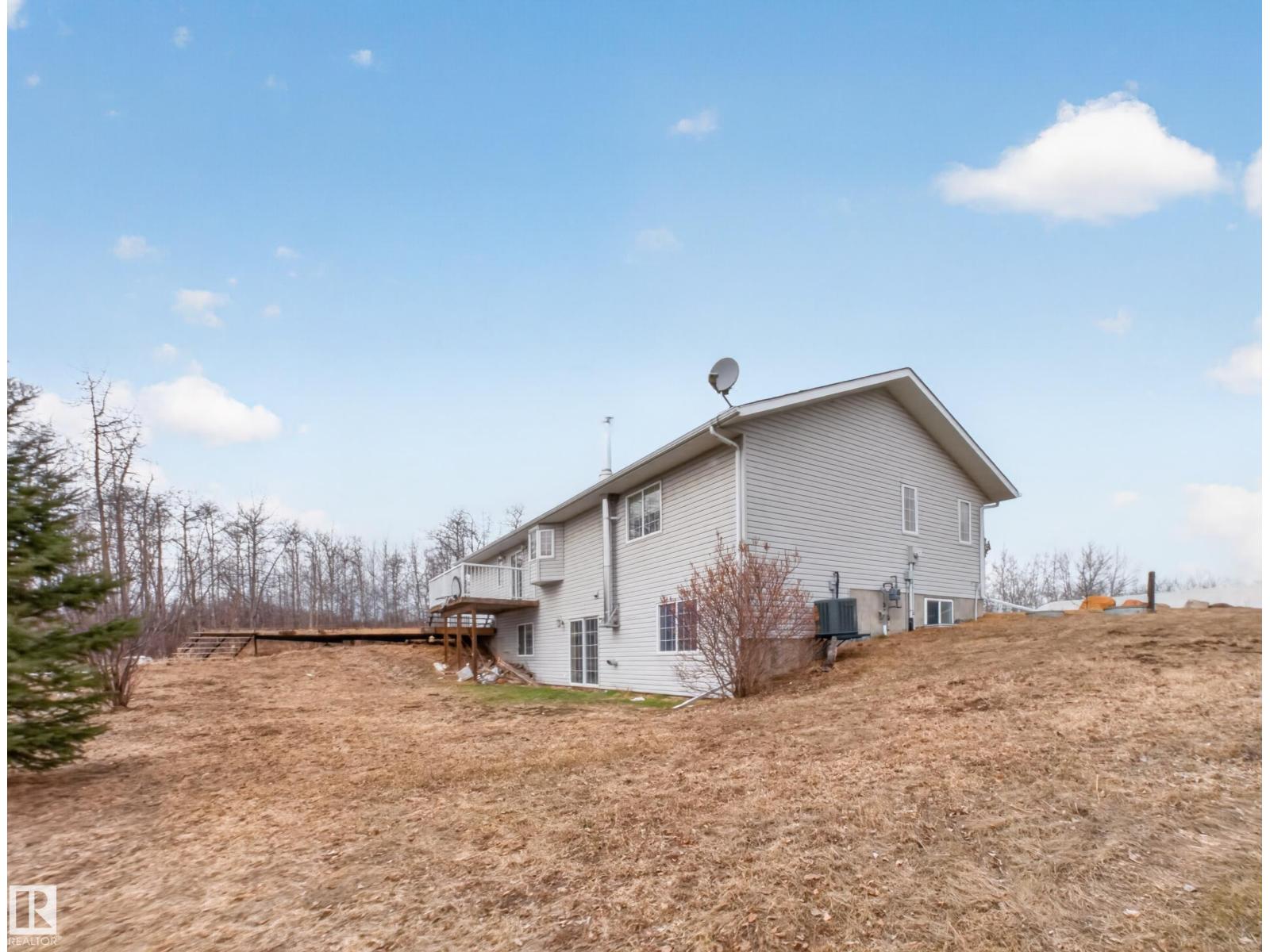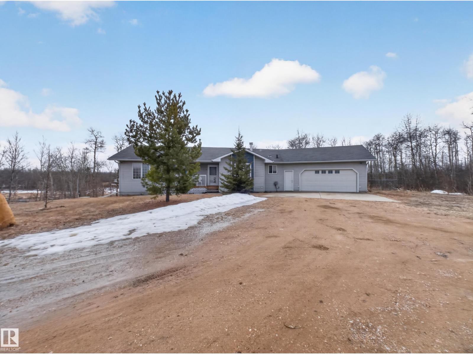 ~!WELCOME!~ A heated double garage PLUS a 63x40' metal Quonset with in-floor heat, boiler system, floor drain, service pit, 220 power, and a 20' overhead door — toys, work, or both… you’re set up. PLUS CITY WATER! And the land? TREES. PRIVACY. POND VIEWS. South-facing exposure with a picturesque pond to the east — this walkout bungalow checks the acreage boxes and then some. Inside, the open-concept main floor is anchored by a granite kitchen with island and stainless appliances. Three bedrooms up, including a primary with ensuite, plus the convenience of main floor laundry. Out back, a massive deck and dedicated BBQ area overlook nothing but nature. Quiet mornings. Long summer nights. This is why people move to the country! The walkout basement adds even more potential with 2 additional bedrooms, a bath, and a wood-burning fireplace to tie it all together. Municipal water, close to Tofield and Parkland Natural Area, and quick possession available. Acreage living done right. (id:63190)