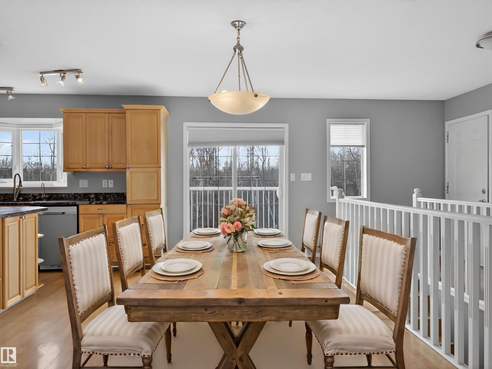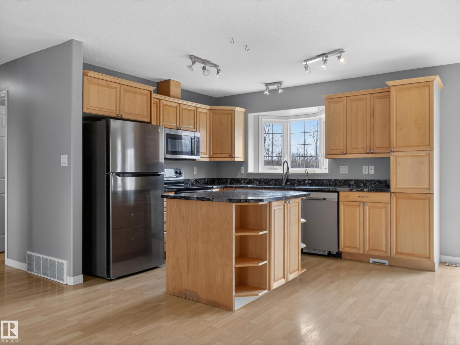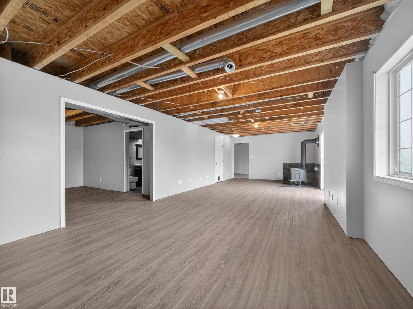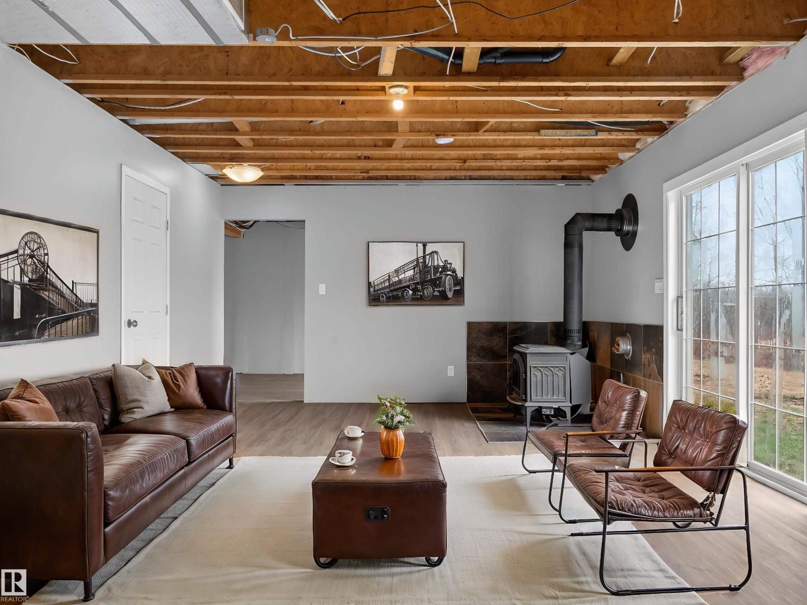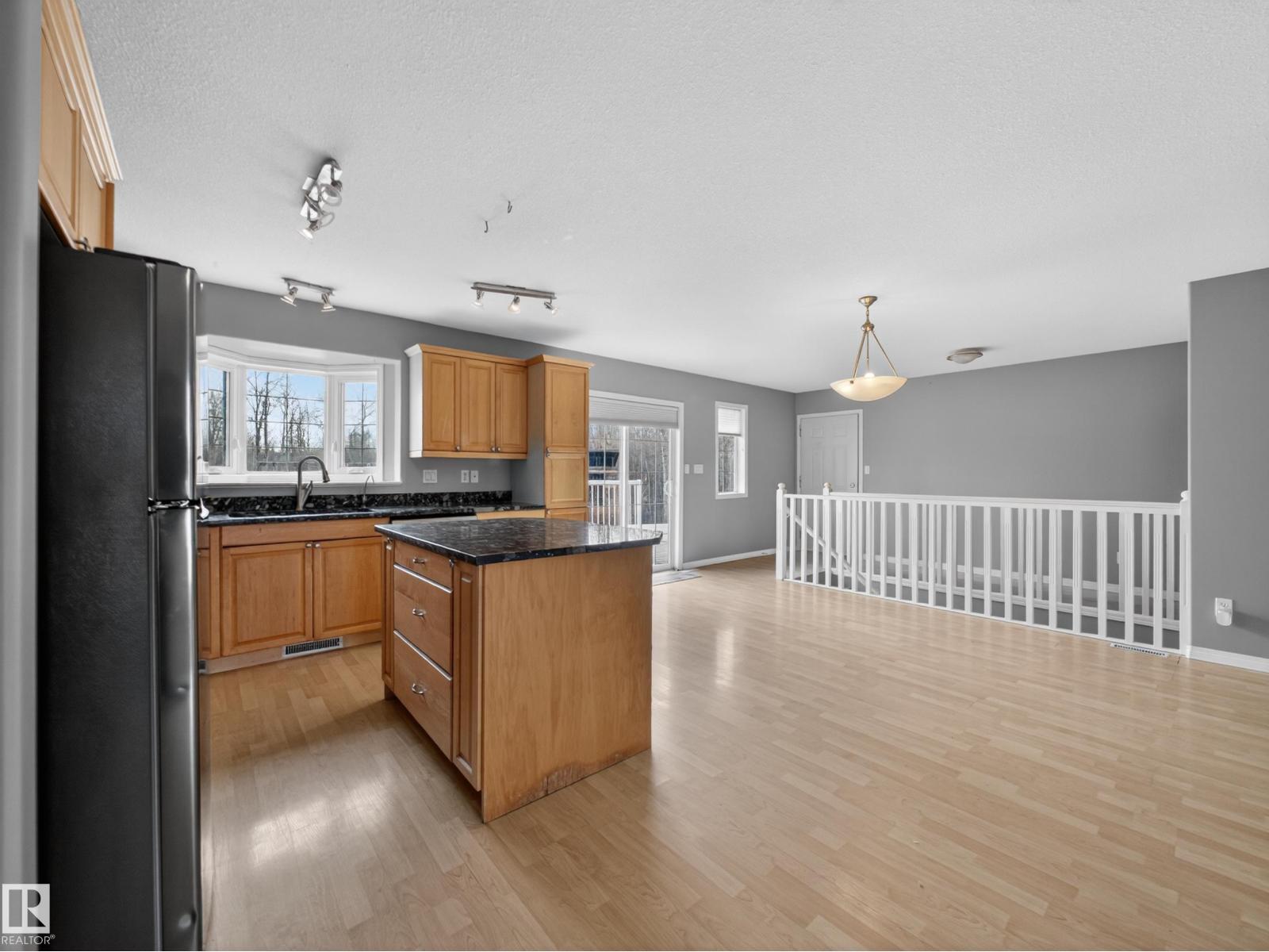~!WELCOME!~ A heated double garage PLUS a 63x40' metal Quonset with in-floor heat, boiler system, floor drain, service pit, 220 power, and a 20' overhead door — toys, work, or both… you’re set up. PLUS CITY WATER! And the land? TREES. PRIVACY. POND VIEWS. South-facing exposure with a picturesque pond to the east — this walkout bungalow checks the acreage boxes and then some. Inside, the open-concept main floor is anchored by a granite kitchen with island and stainless appliances. Three bedrooms up, including a primary with ensuite, plus the convenience of main floor laundry. Out back, a massive deck and dedicated BBQ area overlook nothing but nature. Quiet mornings. Long summer nights. This is why people move to the country! The walkout basement adds even more potential with 2 additional bedrooms, a bath, and a wood-burning fireplace to tie it all together. Municipal water, close to Tofield and Parkland Natural Area, and quick possession available. Acreage living done right. (id:63190)