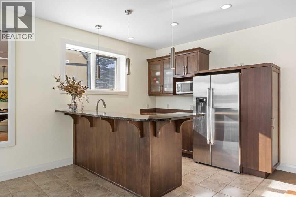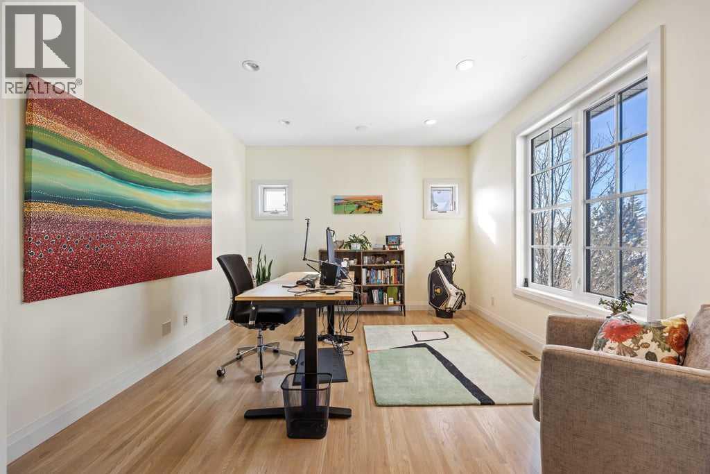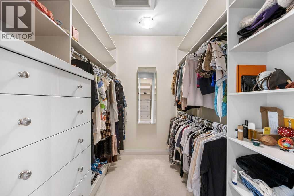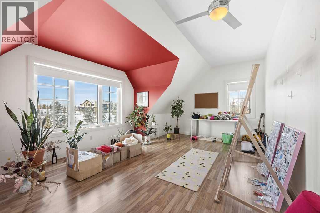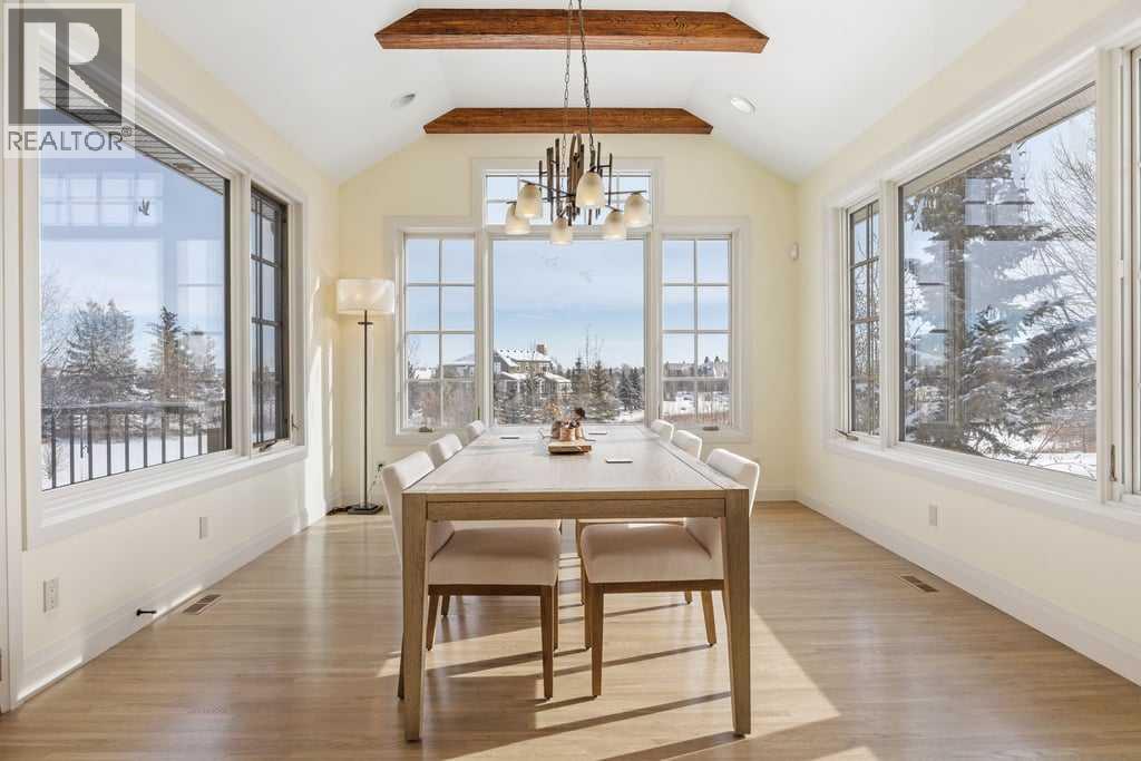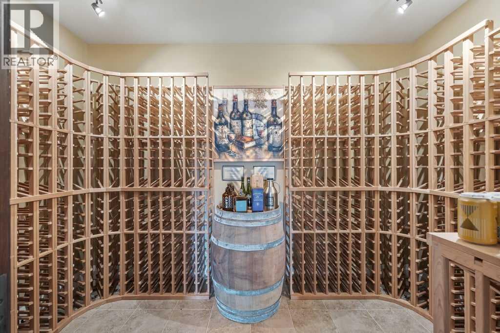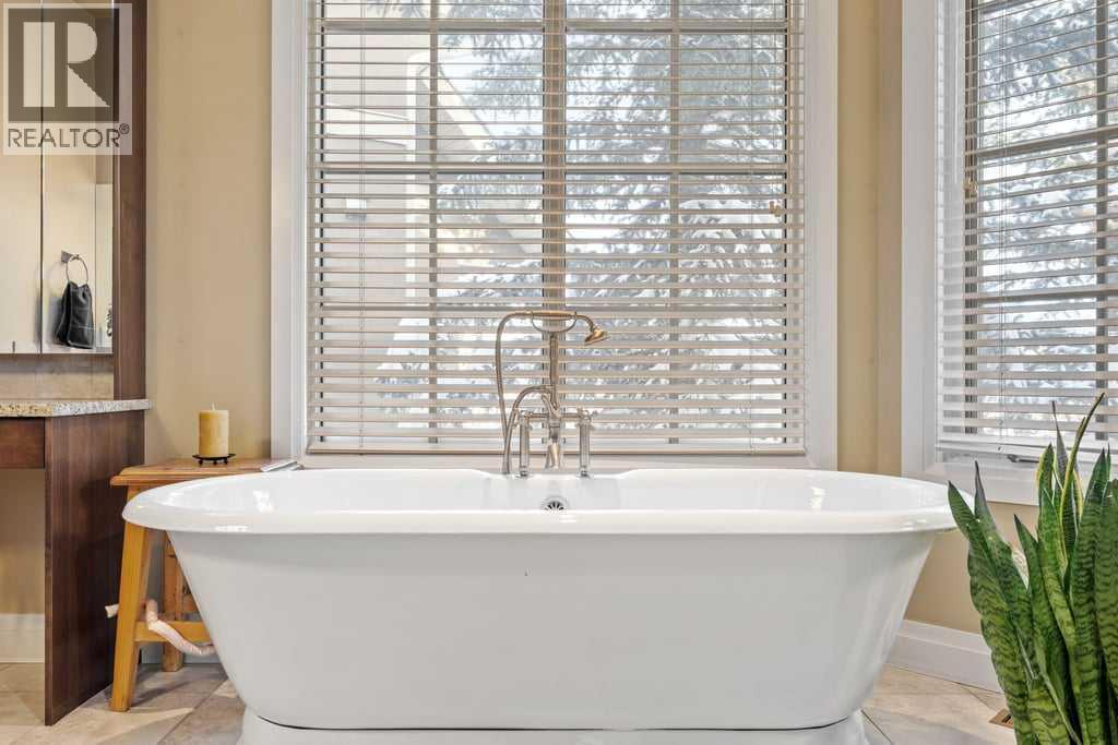 Set on over 2 acres of beautifully treed land, this exceptional Springbank home offers a rare blend of privacy, space, and refined comfort, all just minutes from west Calgary amenities and top schools.A curved driveway winds through mature landscaping, creating a strong sense of arrival as the home comes into view. Inside, soaring vaulted ceilings with exposed beams and rich hardwood floors set the tone in the main living area, where a striking stone fireplace anchors the space and invites both quiet evenings and larger gatherings.The kitchen is designed for both everyday living and entertaining, featuring integrated Thermador appliances, a walk-in pantry, a generous island with seating, and thoughtful details like a built-in wine rack. The adjacent dining area is surrounded by views of the natural landscape and opens onto a private balcony, extending your living space outdoors.The main floor primary suite is positioned to take full advantage of the peaceful setting, with views toward the pond and a well-appointed ensuite complete with dual vanities, a soaker tub, steam shower, heated floors, and separate walk-in closets. An office, along with a functional mudroom and laundry space with built-ins, completes the main level.Upstairs, a dedicated family zone offers two spacious bedrooms, a full bathroom, and a flexible recreation or study area, ideal for growing families.The walkout lower level is bright and expansive, designed for both relaxation and entertainment. Heated floors run throughout, with spaces that include a wet bar, wine cellar, theatre area, gym, and multiple recreation areas, along with two additional bedrooms and a full bathroom for guests.Outdoors, the property feels like a private retreat. Mature trees, two patio areas, a tranquil water feature with a flowing stream, and a firepit setting near the pond create multiple spaces to unwind or host throughout the seasons.Additional features include an oversized four-car garage with access to both t he front and rear of the property, air conditioning, and whole-home audio. Residents also enjoy community features such as pond maintenance and seasonal stocking through the HOA.Located within the Springbank school system and close to Calgary’s leading private schools, with convenient access west to the mountains, this is a rare opportunity to own a truly special property in a sought-after setting. (id:63190)