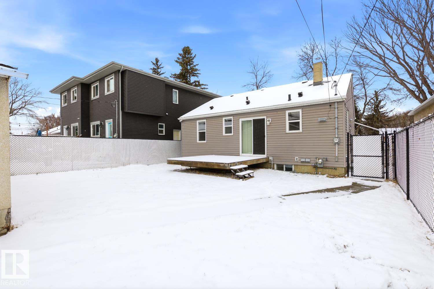 Attention Investors, First-Time Buyers & Developers. Opportunity Knocks in King Edward Park! Live in it, rent it, or redevelop. This 4-bed, 2-bath, 812 sq ft home on a generous 42x130 ft lot has been thoughtfully maintained and updated throughout. Beautiful oak hardwood floors, renovated kitchen, newer windows, and freshly redone concrete paths show pride of ownership from the moment you arrive. Out back, a maintenance-free deck is perfect for entertaining, while the finished basement with added sump pump and fully replaced sewer line offer serious peace of mind. The oversized double detached garage features its own separate panel, ready for a workshop, EV charger, or whatever you need. For developers, the deep lot in this high-demand neighbourhood signals prime infill potential. Steps from Mill Creek Ravine, Whyte Avenue, the University of Alberta, Bonnie Doon Shopping Centre, and transit. King Edward Park is a mature, walkable community with tight supply and strong demand. Bring your vision. (id:63190)