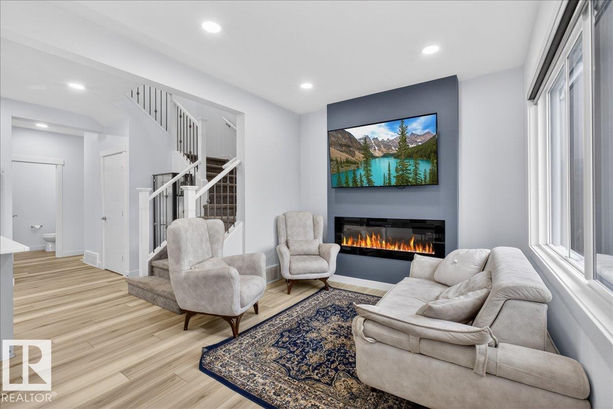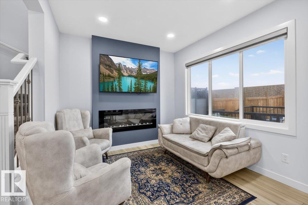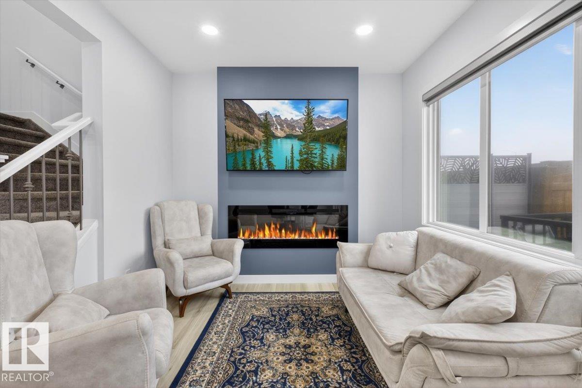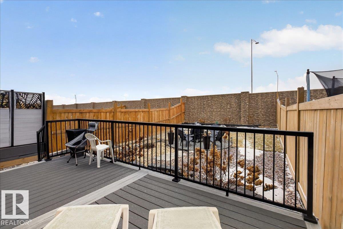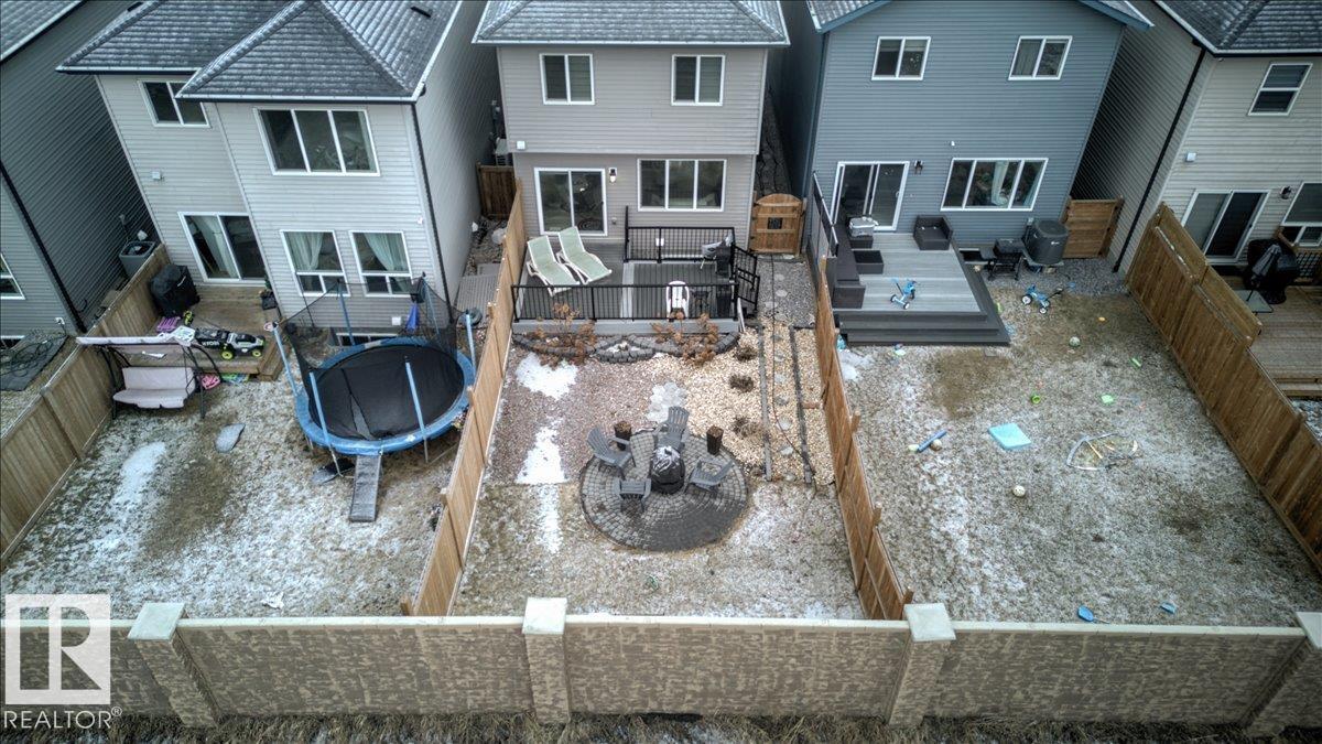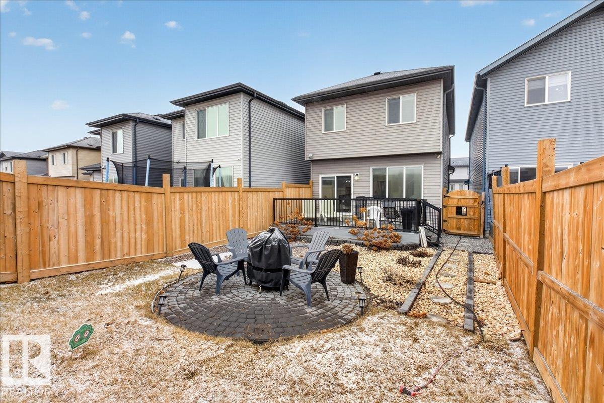 Welcome to Cavanagh! This bright and stylish 2-story home offers 3 bedrooms, 2.5 bathrooms, and thoughtful upgrades throughout. The modern kitchen features stainless steel appliances, upgraded quartz countertops, and a beautiful backsplash, opening to a warm and inviting living area with an electric fireplace and soaring 9-ft ceilings. Upgraded railings and shelving add refined finishing touches throughout. The spacious primary bedroom includes a private 3-pc ensuite for added comfort. Step outside to a professionally landscaped backyard with a composite deck, aluminum railings, and a dedicated fire pit area, perfect for relaxing or entertaining. The fully finished, insulated double-attached garage offers year-round convenience, and the Central A/C keeps the home comfortable all summer long. Located in the sought-after, family-friendly community of Cavanagh, you are just minutes from parks, schools, and everyday amenities. (id:63190)