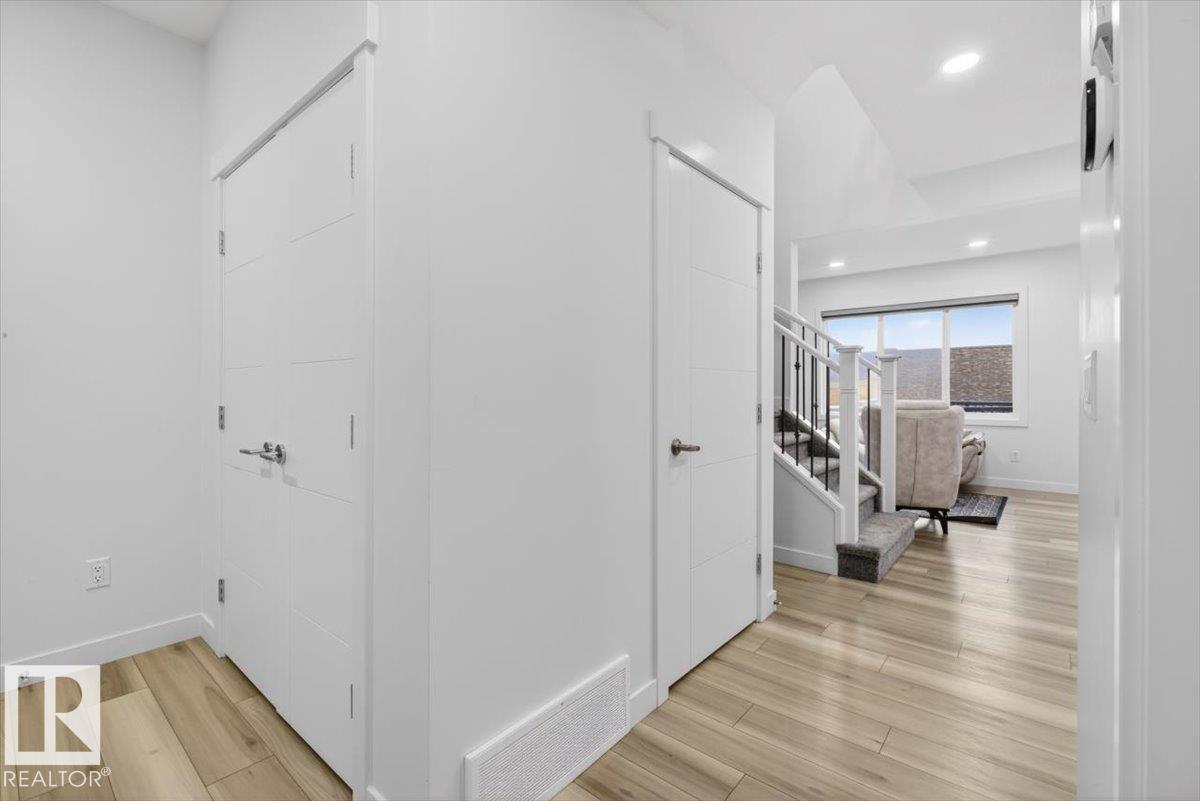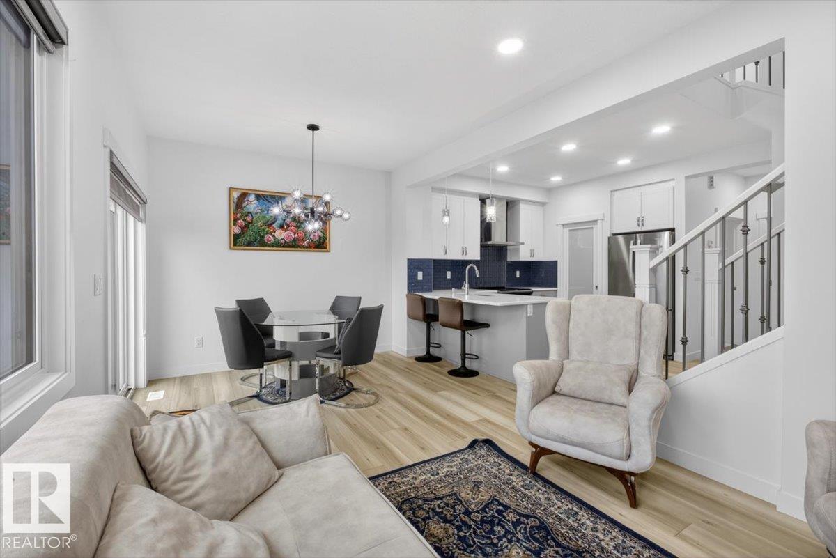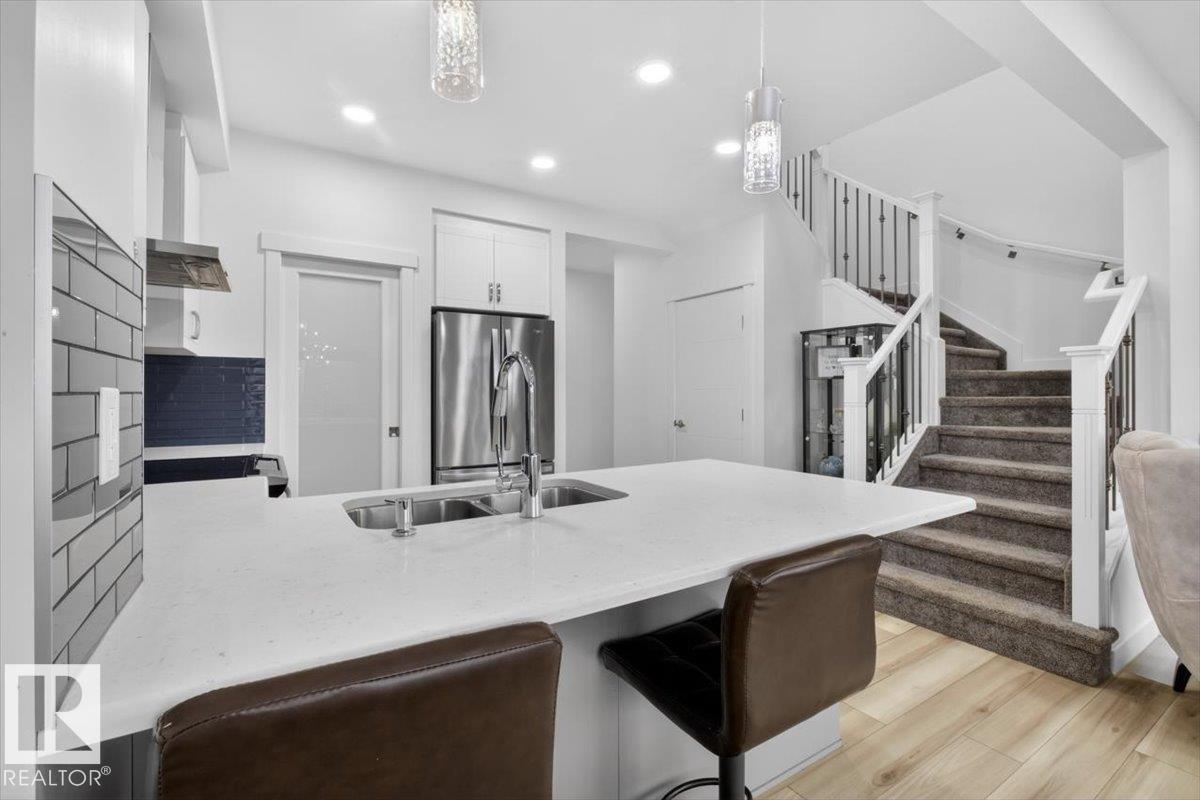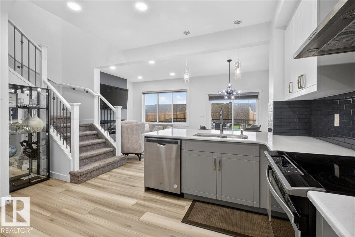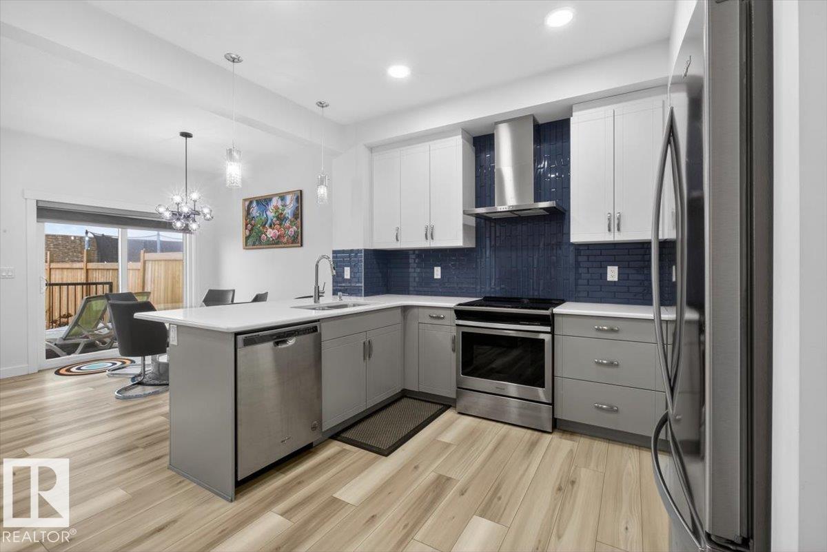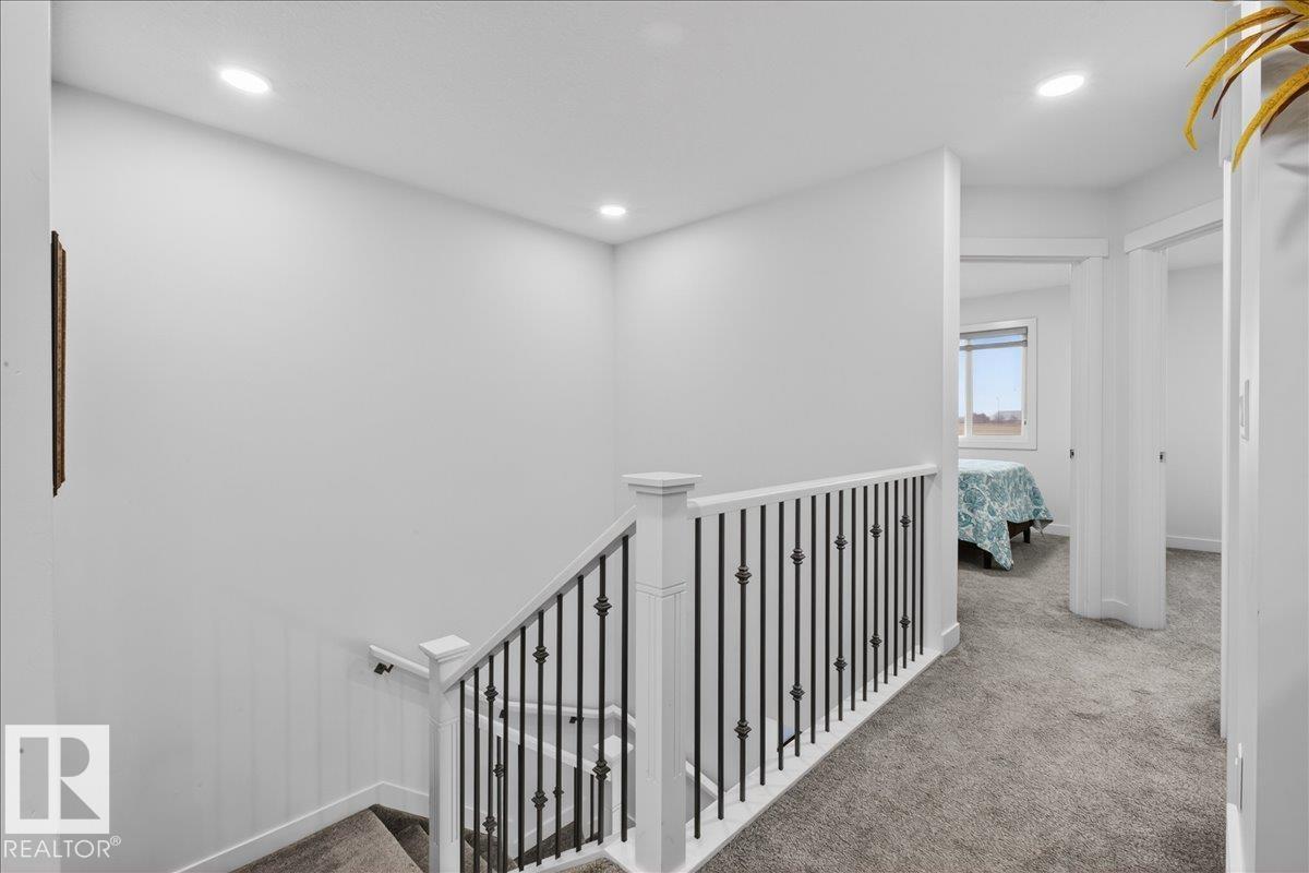 Welcome to Cavanagh! This bright and stylish 2-story home offers 3 bedrooms, 2.5 bathrooms, and thoughtful upgrades throughout. The modern kitchen features stainless steel appliances, upgraded quartz countertops, and a beautiful backsplash, opening to a warm and inviting living area with an electric fireplace and soaring 9-ft ceilings. Upgraded railings and shelving add refined finishing touches throughout. The spacious primary bedroom includes a private 3-pc ensuite for added comfort. Step outside to a professionally landscaped backyard with a composite deck, aluminum railings, and a dedicated fire pit area, perfect for relaxing or entertaining. The fully finished, insulated double-attached garage offers year-round convenience, and the Central A/C keeps the home comfortable all summer long. Located in the sought-after, family-friendly community of Cavanagh, you are just minutes from parks, schools, and everyday amenities. (id:63190)