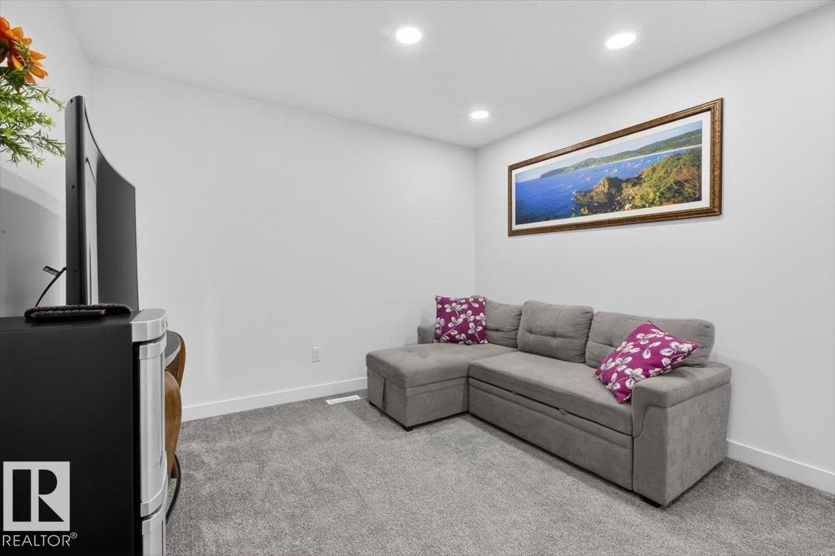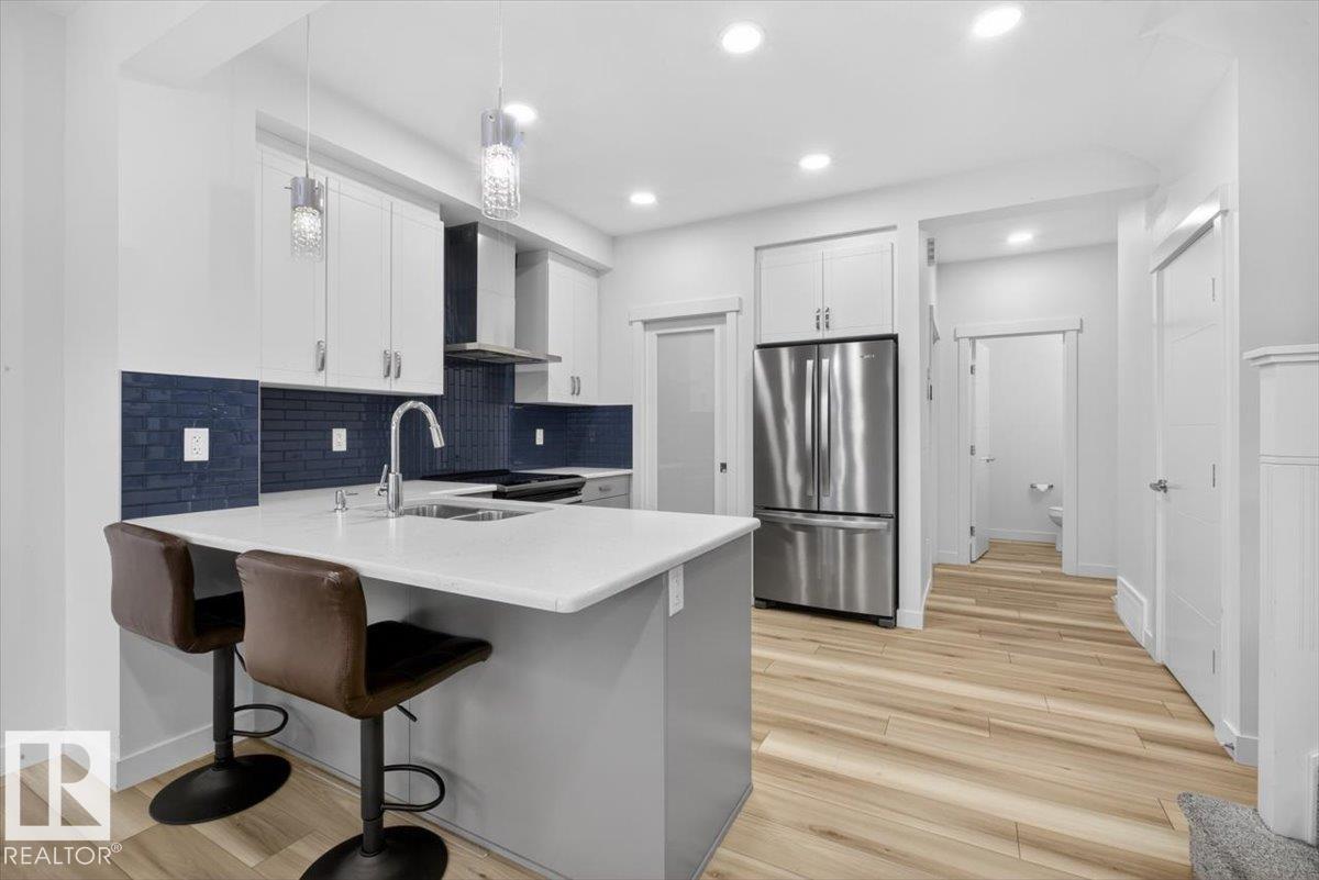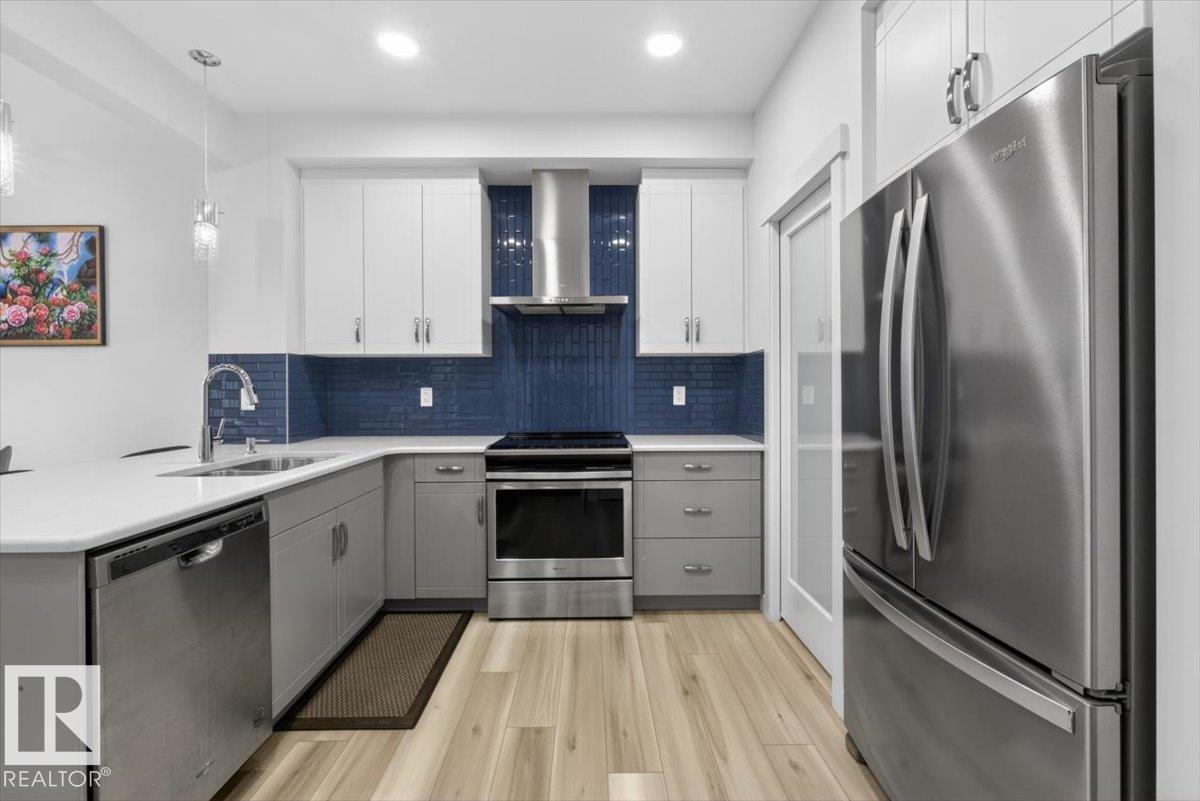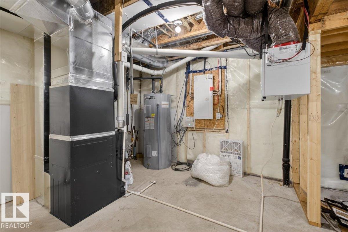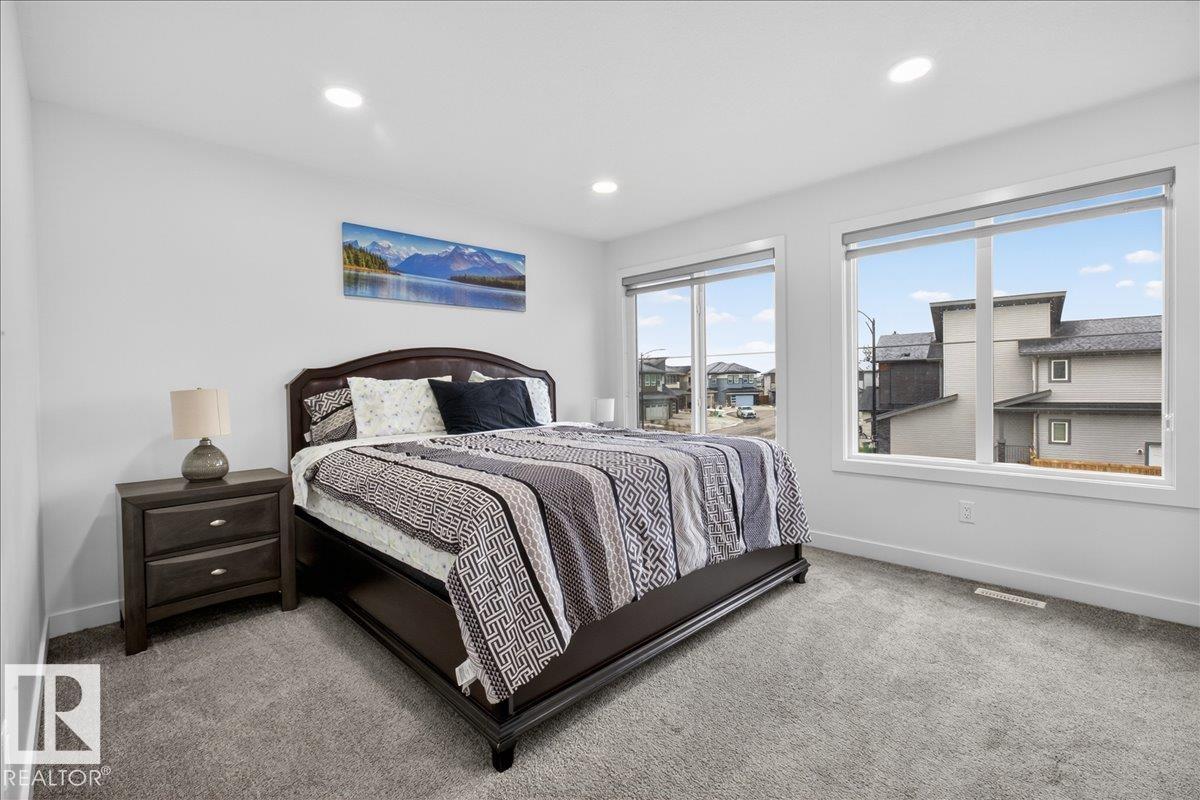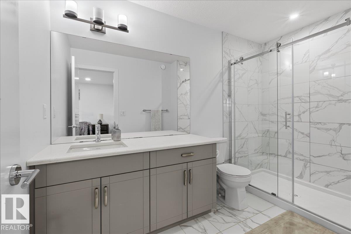 Welcome to Cavanagh! This bright and stylish 2-story home offers 3 bedrooms, 2.5 bathrooms, and thoughtful upgrades throughout. The modern kitchen features stainless steel appliances, upgraded quartz countertops, and a beautiful backsplash, opening to a warm and inviting living area with an electric fireplace and soaring 9-ft ceilings. Upgraded railings and shelving add refined finishing touches throughout. The spacious primary bedroom includes a private 3-pc ensuite for added comfort. Step outside to a professionally landscaped backyard with a composite deck, aluminum railings, and a dedicated fire pit area, perfect for relaxing or entertaining. The fully finished, insulated double-attached garage offers year-round convenience, and the Central A/C keeps the home comfortable all summer long. Located in the sought-after, family-friendly community of Cavanagh, you are just minutes from parks, schools, and everyday amenities. (id:63190)