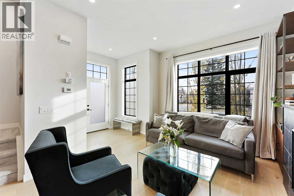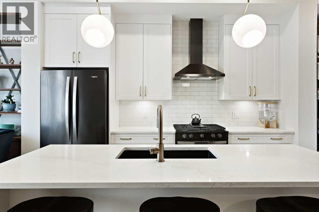 In Altadore, it’s rare to find the perfect blend of an inner city lifestyle and true outdoor living, a private backyard and a garage, but this home checks all of the boxes! Set in a location that truly maximizes lifestyle, you are just minutes from the boutiques, dining, coffee shops, and gyms of Marda Loop. Outdoor enthusiasts will love having Sandy Beach and endless pathways nearby! This community has top rated schools, convenient transit options and access to major roads, making commutes a breeze. This corner unit townhome delivers elevated style, thoughtful upgrades, and urban convenience all wrapped in charming brick architecture. Inside, 10 ft. ceilings and oversized windows create a bright, sophisticated atmosphere. Hardwood floors flow through the open main level, where a welcoming living room centers around a sleek gas fireplace. The dining space is designed for entertaining, while the chef’s kitchen stands out with quartz counters, premium appliances including a gas range, a sleek backsplash, and a rare upgrade, an additional full pantry! This level is complete with a 2 piece powder room, just off the kitchen. Upstairs, the primary retreat includes a generous walk-in closet with upgraded shelving and a serene ensuite featuring dual sinks and heated floors, an everyday luxury. A second spacious bedroom and convenient laundry complete this level, with remote controlled ceiling fans in the bedrooms adding extra comfort year round. The top floor flexes to suit your lifestyle! A family room, home gym, office, or additional bedroom, enhanced with motorized electronic blinds and a bar rough-in. From this floor, you have direct access to your private rooftop patio showcasing sweeping city and mountain views. A must see for the best sunsets! The fully developed lower level extends your living space with a recreation area, office niche, another full bedroom, and a 4-piece bathroom. This home also includes; custom closet organizers, Hunter Douglas premium blinds, rou gh ins for air conditioning and Vacuflo that all add to the everyday function and finish. Step outside to one of Altadore's most desirable features, a private, fully fenced backyard, perfect for pets, play, or summer nights, complete with a gas line for your barbecue. A single detached garage offers secure parking and storage. This is the best of Altadore! Urban energy, walkability, modern living, without sacrificing space, privacy, or comfort. Welcome home. (id:63190)