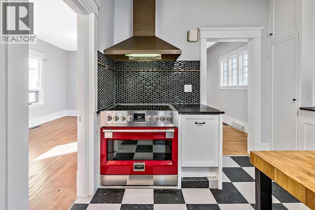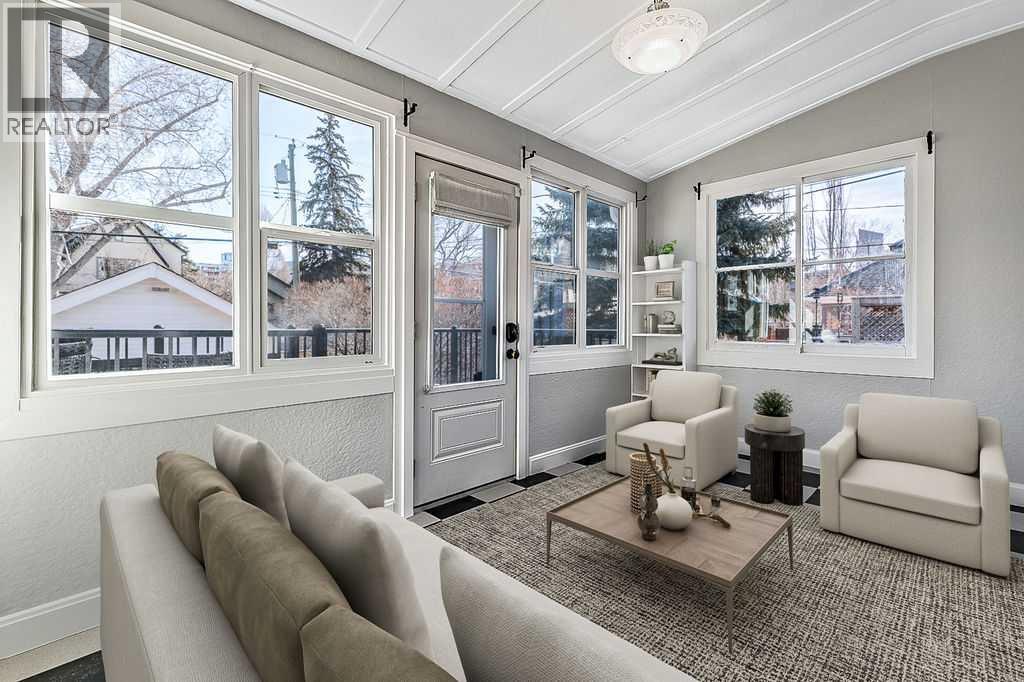 Charming bungalow on one of Calgary’s best streets! Nestled on a picturesque, tree-lined street, this delightful bungalow is brimming with character and modern updates. From the moment you arrive, the inviting front porch welcomes you into a home that perfectly blends vintage charm with contemporary comfort. Step inside to spacious rooms, soaring high ceilings, and hardwood floors, creating a warm and inviting atmosphere. The east-facing, four season heated sunroom offers pretty city views, your perfect spot for morning coffee, no matter the season. The stunning kitchen is a true showstopper, featuring ceiling-height cabinetry, an abundance of counter and storage space, and a striking red Fulgor stove that feels more like an art piece than an appliance. A quaint island with included stools completes this cozy yet highly functional space. The gorgeously remodeled 4-piece bathroom is thoughtfully designed, while the partially developed basement provides additional living space with a family room, bedroom, and a 2-piece bathroom, ideal for guests or extra relaxation. This freshly painted, move-in-ready home boasts solar panels, mature landscaping, some updated plumbing & electrical, and a newer high-end Sync furnace/water heater combination for ultimate comfort. Some newer windows enhance efficiency while preserving the home’s timeless appeal. All of this is just steps away from Calgary’s finest restaurants, boutique shops, and exercise studios, making it the perfect location for those who love to be at the heart of it all. If you’re searching for a quaint and charming bungalow with the perfect mix of character and modern convenience, this is the one! (id:63190)
