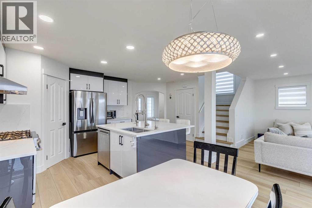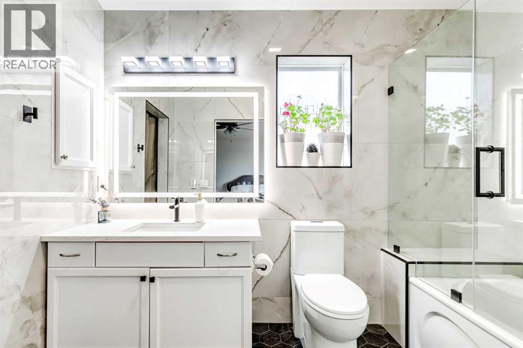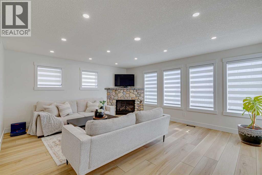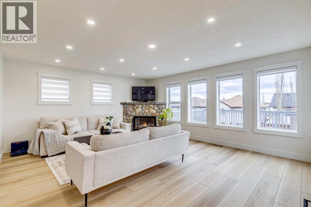 Welcome to this beautifully renovated walkout detached home offering stunning mountain and city views. Thoughtfully updated in 2026 with high-quality finishes throughout, this home blends modern elegance with comfortable family living.The bright and spacious main floor features a fully upgraded kitchen with premium materials and contemporary design, perfect for both everyday living and entertaining. Large windows fill the home with natural light while showcasing the scenic views.Upstairs you will find 3 spacious bedrooms plus a versatile bonus room, ideal for a family lounge, home office, or play area. The home offers 3.5 bathrooms, including two luxurious upstairs bathrooms with heated floors, providing added comfort during Calgary’s colder months.The walkout basement, professionally developed in 2020 with permits, includes an additional bedroom and a large living area, making it perfect for guests, extended family, or future rental potential.Recent upgrades provide peace of mind, including:Full interior renovation (2026)New roof (2026)New fence (2026)New window blinds (2026)Hot water tank, water softener, and drinking water filtration system (2025)Ideally located in a family-friendly neighborhood, this home is within walking distance to an elementary school (210 m) and close to major amenities including Sobeys shopping plaza (1 km), high school (1.5 km), and LRT station (2 km).This move-in ready home offers modern upgrades, breathtaking views, and exceptional convenience, making it a rare opportunity in today’s market. (id:63190)