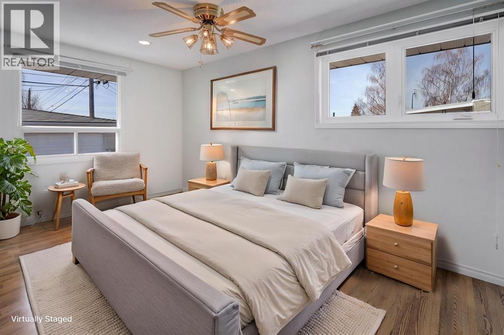 Proudly owned by the original owners since 1965, this well-cared-for bungalow offers classic charm, and incredible potential for future renovations. With its desirable layout and solid construction, this home is the perfect opportunity to personalize while enjoying a property that has been lovingly maintained over the years. The main floor features two bedrooms and two full bathrooms, along with a spacious living room, a dedicated dining area, and a functional kitchen that opens directly onto the back deck - ideal for seamless indoor-outdoor entertaining. The basement presents an excellent renovation opportunity, offering a large recreation room for family gatherings, a generously sized bedroom, a full bathroom, and a spacious utility room providing ample storage and flexibility. The heated garage adds year-round convenience, while the south-facing backyard is perfect for outdoor enjoyment. For gardeners, you will enjoy the beautifully maintained flower beds complete with a mature crabapple tree - ideal for late summer harvesting! Situated in a quiet neighbourhood with only one next door neighbour and convenient alley access, this property offers added privacy. With parking for up to 6 vehicles, there’s plenty of space for family and guests. Some upgrades to appliances include refrigerator in the kitchen (2023), furnace (2019), hot water tank (2015 only used by 2 people). The shingles on the house and garage were replaced in 2017. While the home may require some more updating, it presents a fantastic opportunity to renovate, customize, or enjoy as-is. A rare find with great bones in a peaceful setting—don’t miss your chance to make it your own! (id:63190)