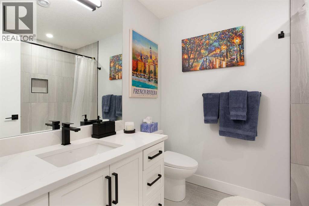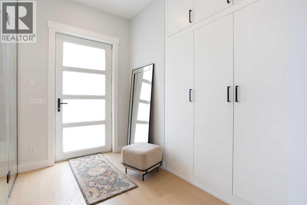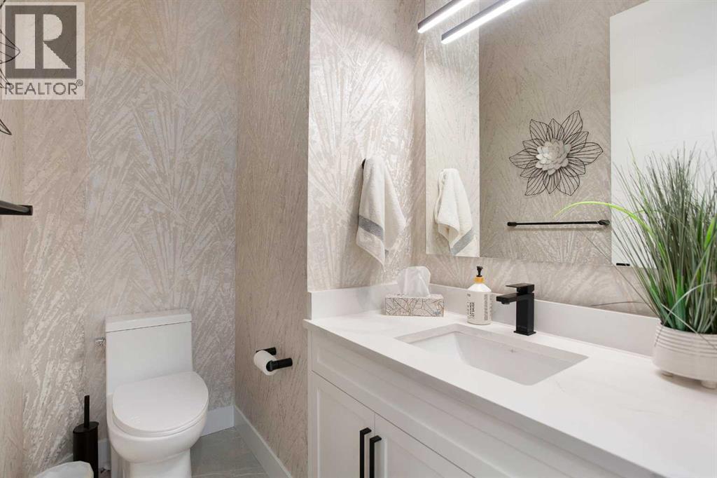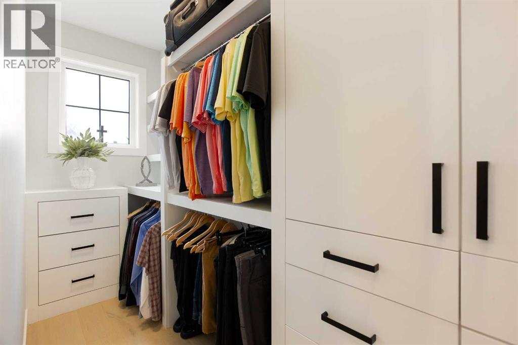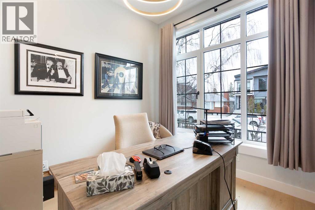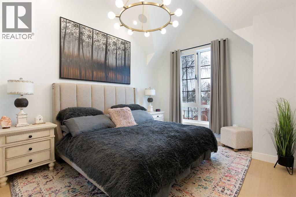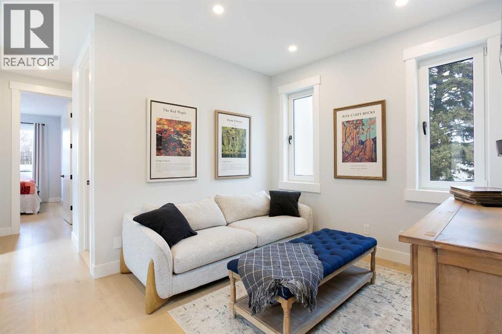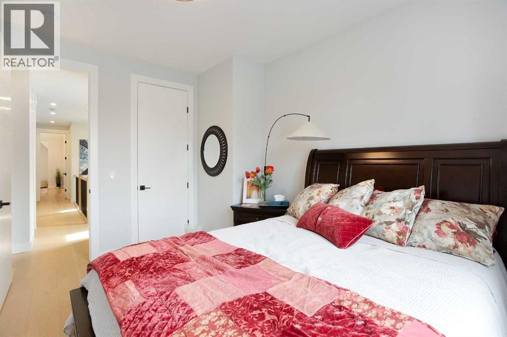 Experience elevated inner-city living in this custom-built home in Rosscarrock, offering over 3,000 sq ft of finished space and a location that puts you minutes to downtown, Westbrook LRT, Edworthy Park, and Shaganappi Golf Course.The main floor is bright and functional with 10-foot ceilings, wide-plank engineered hardwood, and a seamless open layout. A glass-enclosed front flex room works perfectly as a home office or formal dining space. At the heart of the home, the kitchen delivers both style and performance with full-height two-tone cabinetry, built-in appliances, a gas cooktop with pot filler, and a waterfall quartz island. A walkthrough butler’s pantry adds extra prep and storage space.The living area is anchored by a gas fireplace with custom millwork and opens to the backyard through large Kulu Tilt & Slide tilt-and-turn doors, leading to a covered composite deck and professionally landscaped yard.Upstairs features a central bonus room, laundry, and three bedrooms. The primary suite offers a walk-in closet with built-ins and a five-piece ensuite with heated floors, dual vanities, a soaker tub, and a fully tiled shower.The finished basement adds a spacious rec room with wet bar, a fourth bedroom, and a full bathroom, ideal for guests or additional living space.Additional highlights include built-in speakers, air conditioning, and a heated double detached garage with epoxy flooring.A polished, move-in-ready home in a growing inner-city neighbourhood. (id:63190)