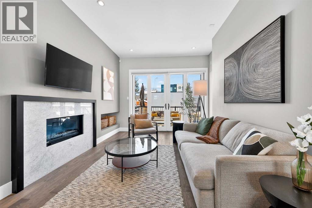 Rooftop Patio | Full City Views | Over 3,400 Sq Ft of Finished Living Space | West-Facing Backyard | Prime LocationWelcome to a rare offering in the heart of Altadore—an exceptional contemporary three-storey detached home crafted for those who appreciate refined design, open-concept living, and effortless entertaining. With over 3,400 sq ft of meticulously finished space, this residence showcases a level of quality and attention to detail seldom found in today’s infill market.Step inside to a welcoming front foyer with a convenient side closet, leading into an elegant dining area illuminated by a stunning smoked glass chandelier. The main floor unfolds into a showpiece kitchen, featuring premium stainless steel appliances and a striking dual waterfall Caesarstone island with updated pendant lighting and generous seating—perfect for gathering with family and friends. Throughout the home, Kentwood hardwood flooring, rich oak ebony cabinetry with soft-close hardware, and solid-core doors reflect a commitment to both style and durability.A dramatic open-rise hardwood staircase with floor-to-ceiling glass creates a striking architectural focal point, while the built-in wired audio system enhances everyday living and entertaining. A custom Sugi Ban burnt oak barn door adds a unique designer touch.Designed with versatility in mind, this home offers multiple spaces to relax and entertain. The main living room is anchored by a stone-encased gas fireplace with an art niche, creating a warm, inviting setting. Upstairs, are 2 Large bedrooms + Full Bath & Laundry room & flex/entertainment room with a wet bar provides the perfect retreat or hosting space. The fully developed basement expands your options further, featuring brand-new plush carpeting, a second wet bar with cooler and wine fridge, ample storage, a spacious guest bedroom with a walk-in closet, and a full bathroom just steps away.The entire third level is dedicated to a luxurious private retreat. Enjoy bre athtaking city views from your rooftop patio and expansive primary suite. The spa-inspired ensuite features programmable in-floor heating, a freestanding soaking tub, a large glass shower, dual vanities finished in vein-cut limestone, a dedicated makeup station, and a generous walk-in closet with built-in cabinetry—creating a true sanctuary to unwind at the end of the day.The exterior is equally impressive, showcasing cedar soffits, metal-clad windows, and durable acrylic stucco. The fully landscaped yard includes exposed aggregate walkways and low-maintenance Trex composite decking. A sunny west-facing backyard offers the perfect setting for outdoor living, complete with a gas line rough-in for barbecuing.Ideally located just minutes from downtown, with a playground at the end of the street and close proximity to Sandy Beach and the river pathways, this home offers the perfect blend of luxury, comfort, and convenience.An outstanding opportunity to own in one of Calgary’s most desirable communities. (id:63190)
