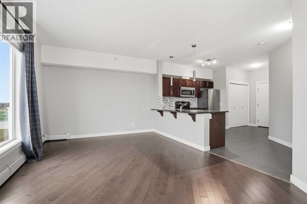 Welcome to The Edge. This quiet, top-floor corner unit offers great natural light and a beautiful view of East Lake.There is a unique and open floorplan which gives a spacious feel to the living space, along with granite countertops throughout, stainless steel appliances, a recently upgraded stacked washer and dryer and brand new carpet in the bedroom. The unit comes with a conveniently located, titled underground parking stall.One of the biggest perks of living at The Edge is the location; you are right next door to the Genesis Centre, which offers a huge range of amenities including a 6-lane, 25-meter pool, dive tank, water slide, hot tub, steam room, indoor soccer field, gyms, dance studio, running tracks, fitness spaces, two NHL-sized ice rinks, and more. You’re also just minutes from East Lake with walking paths, great for getting outside or walking the dog.The unit is vacant and available for quick possession, so book a showing right away! (id:63190)
