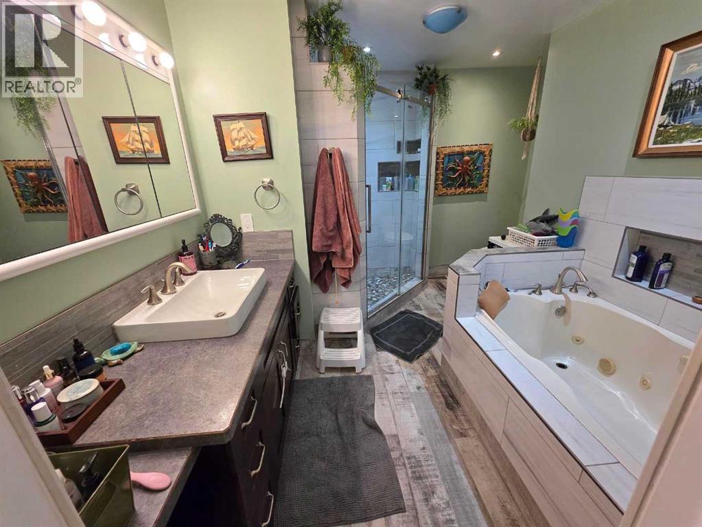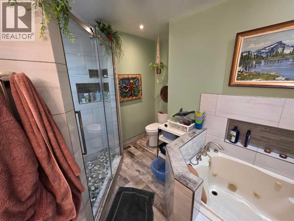 Outstanding location very close to school with large lot and extensive living space. This 2709 square foot bungalow with 5 large bedrooms and 2 full bathrooms offers a massive amount of living space and a huge yard. The main bedroom features walk in closet and an ensuite bathroom with jetted tub. The attached unheated garage has been converted into a large storage/multi use area with large windows and lots of natural light. Ample kitchen and dining room have their own gas fireplace and the large living room offers a cozy feel with another gas fireplace. The home has loads of extra storage space and room for a growing family as each bedroom is large. The massive 100x169 foot corner lot is a yard lovers dream with all the space to enjoy private outdoor activities. The home has a 15x16 foot rear covered deck and RV parking as well. (id:63190)