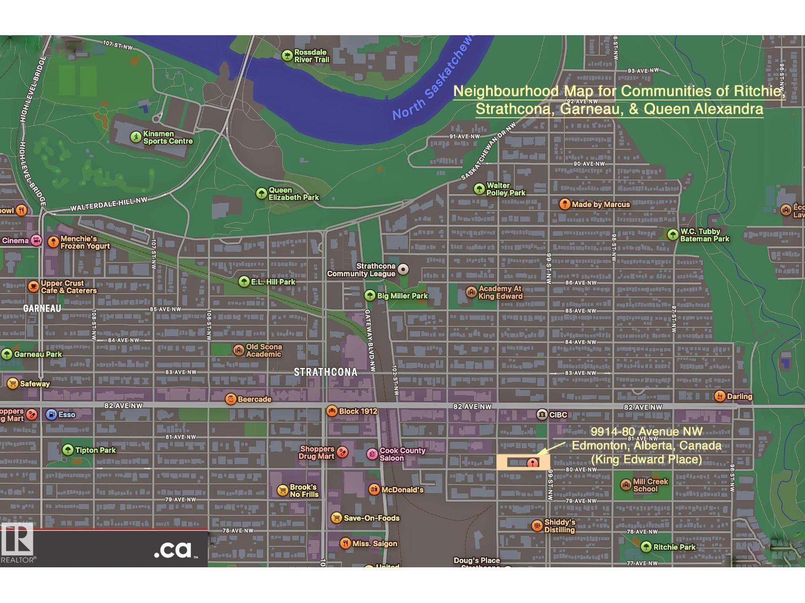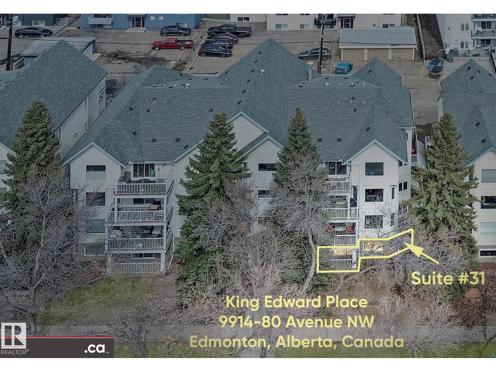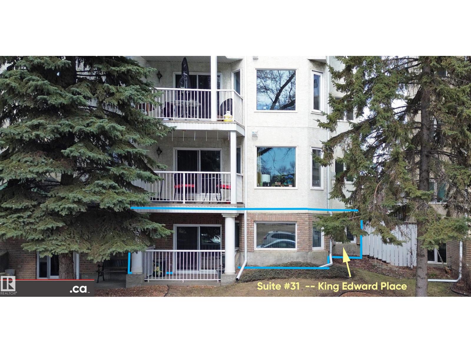 * ATTENTION SENIORS, RESTRICTED-MOBILITY BUYERS, PROFESSIONALS, STUDENTS, & INVESTORS: EXCELLENT CONDITION MAIN LEVEL UNIT NOW AVAILABLE IN KING EDWARD PLACE! A palette of suite features: * Very nice corner kitchen with island & white appliances * Spacious dinette accessing South-facing balcony * Living room corner gas fireplace & bay window * Large-sized primary bedroom plus full en suite bath * 2nd guest bedroom / office with desk & Murphy bed * Full 2nd bath beside medium-sized laundry / storage room. KING EDWARD PLACE is a low-rise apartment condominium complex divided into four separate buildings: * Suite #31 is adjacent to front entrance, lobby area, & mailboxes * Included: assigned parking stall #66 & storage locker #31 * Condo documents package on order for Buyer review * Restricted to Adult Living & No Pets for a quieter & tidier building * Prof. managed by KDM Mgmt. Located SE Edmonton -- Ritchie close to 99 St., Whyte Ave., transit, U of A, shopping, Downtown, recreation, & River Valley Parks!! (id:63190)
