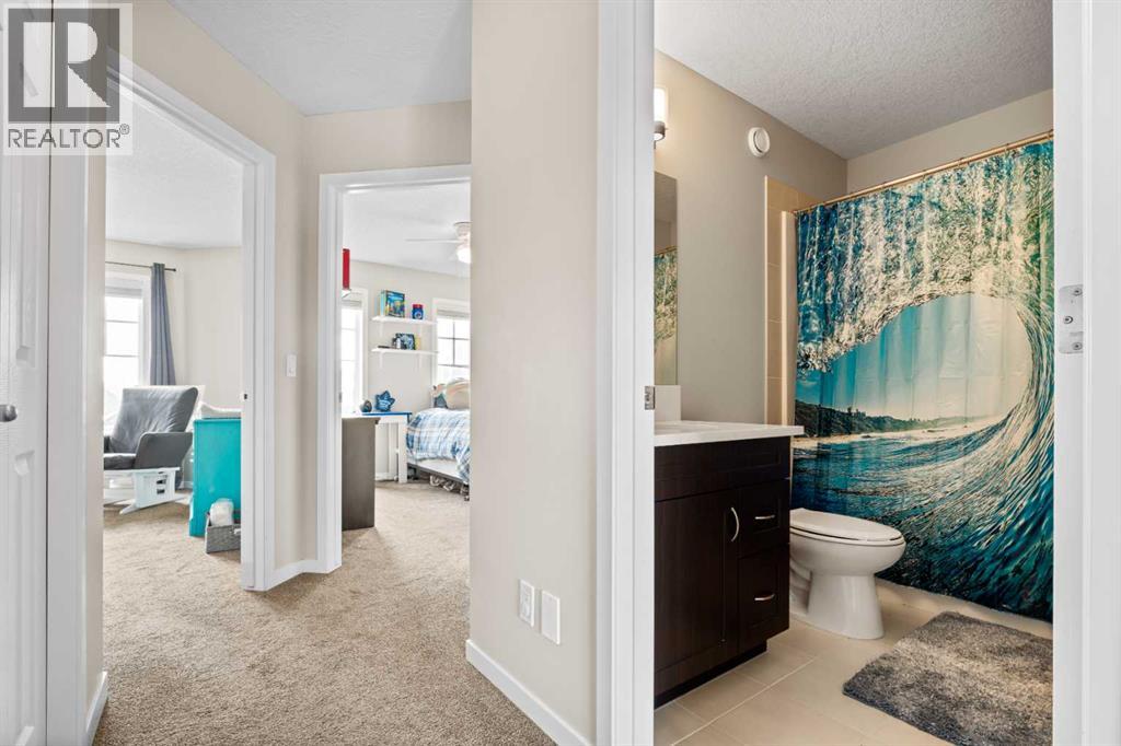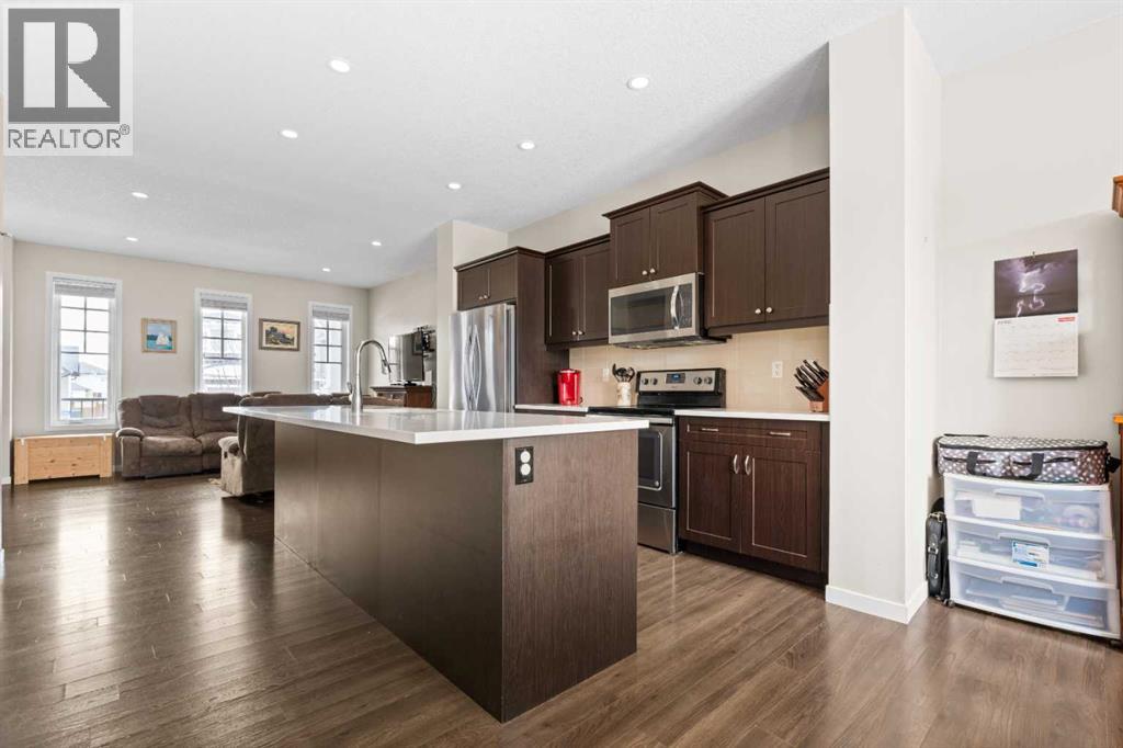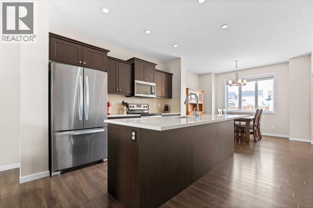 Welcome to the kind of home where life feels a little simpler, a little quieter, and a lot more connected. Tucked onto one of the quietest streets in Crossfield, this beautifully maintained family home sits on a lot that’s larger than most in the area at over 4100 ft2, offering extra space to relax, play, and grow. With the perfect balance of small-town charm and everyday convenience, you’re just steps from parks, pathways, and schools. Inside, the open concept main floor is designed for how families actually live. The kitchen anchors the space with a large island, quartz countertops, and plenty of prep and storage space, making it easy to cook, gather, and stay connected. The adjoining dining and living areas are bright and inviting, creating a natural flow for both everyday living and hosting friends and family.Upstairs, you’ll find three comfortable bedrooms, including a primary bedroom retreat complete with a walk-in closet and private ensuite. The addition of second-floor laundry adds a level of convenience that quickly becomes a must-have in daily life. Upgrades like Central A/C, ceiling fans in the bedrooms and a heat exchange fan in the bathroom help keep the home comfortable year-round.Step outside and you’ll see where this home really shines. The backyard has been thoughtfully designed with families in mind, featuring a newly built garage, added shed, stepping stone pathways, and a natural gas line on the deck for easy summer BBQs. With a paved back alley and plenty of space to play, relax, and entertain, it’s a yard that grows with you.The location ties it all together. Just steps to Amery Park and surrounded by green space, playgrounds, and walking paths, this is a neighbourhood where kids can play freely and neighbours still know each other. With schools nearby and quick access to Highway 2, you’re perfectly positioned for an easy commute to Airdrie or Calgary while still enjoying the pace and feel of a close-knit community.If you’ve been looking f or a move-in ready family home in a newer neighbourhood where lifestyle and livability come first, this is one worth seeing in person. (id:63190)