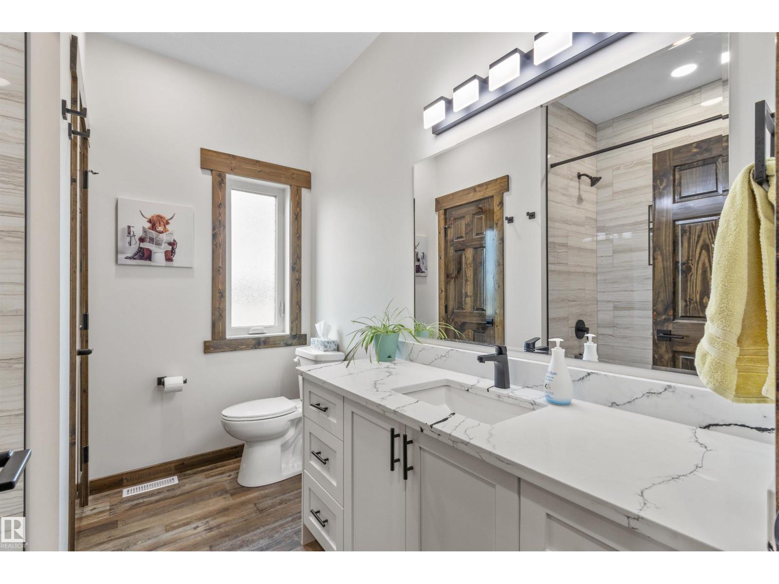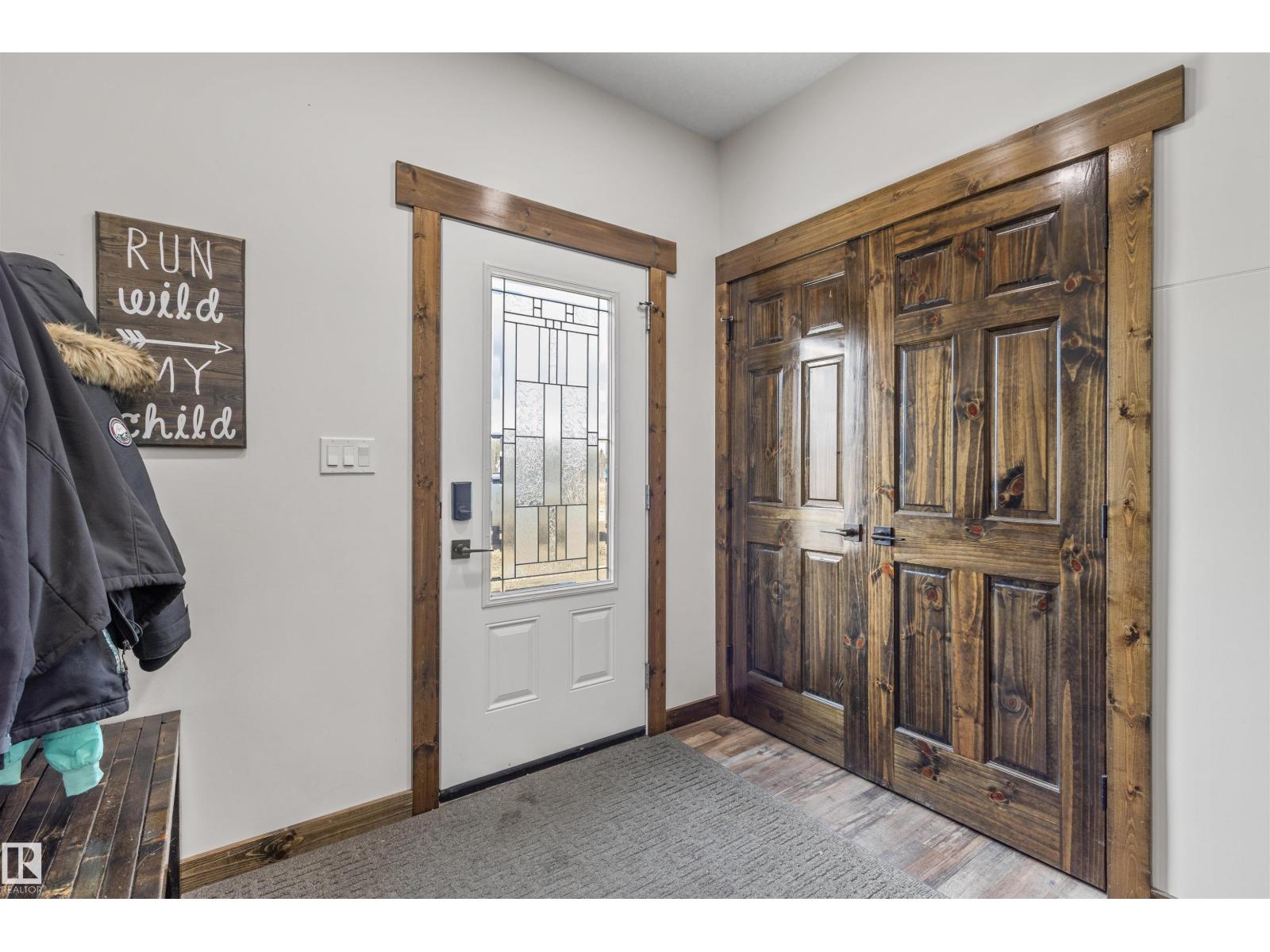 Acreage living with only a few mins drive to town. This 2024 built home sits on 4.4 acres in The Ranch Country Estates 10 mins North West of Drayton Valley. In this bi-level, you step into a large entrance with plenty of room for everyone to get inside whether its with the dog and groceries or kids kicking off boots. The dark wood trim and doors give you the rich moody feel and contrasts wonderfully with the bright kitchen and bathrooms that feature white cabinetry and quartz counters. Multiple walk in closets, in floor heat in basement, incredible storage throughout and you top it off with a south facing 30ft X 14ft covered deck to end your day. This home won't disappoint. (id:63190)