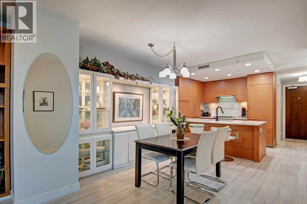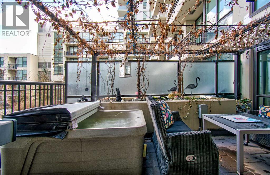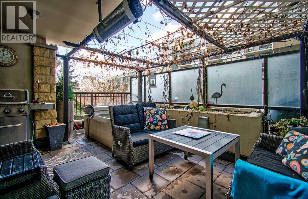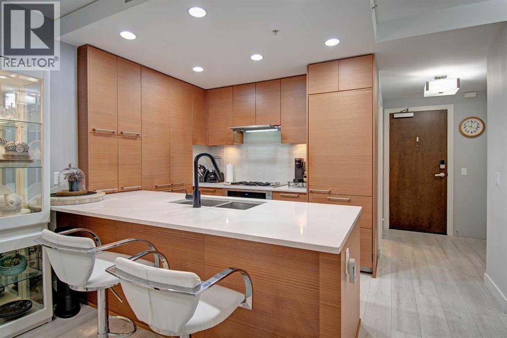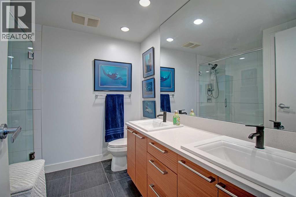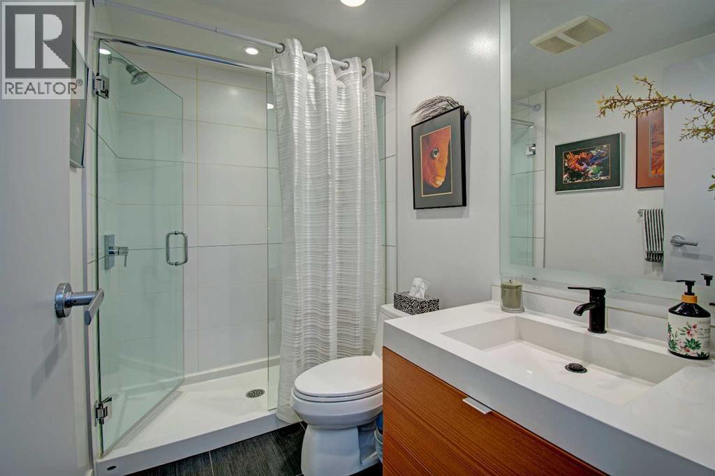 FINALLY, IT IS HERE FOR YOU!! WELCOME TO THIS EXQUISITE LUXURY CONDOMINIUM IN THE PRESTIGIOUS “WATERFRONT”. Unparalleled Living Experience in The Heart of The City. This Unit Makes It Perfect for Entertaining Guests or Enjoying Quiet Evenings at Home. OFFERING YOU SECURITY AND SAFETY SITUATED BETWEEN CALGARY’S DOWNTOWN CORE AND PRINCE’S ISLAND PARK. THIS IS A CONCRETE BUILDING With High End Finishes and Luxurious Amenities; Cleanliness Is The Motto Here. Concierge Service From 8:00am To 8:00pm Daily. Well Appointed Fitness Centre, Relaxing Hot Tub and Rejuvenating Steam Room, Party Room, Bicycle Storage and Awesome Theatre Room for Residents Use. Building Offers a Stylish Meeting Or Gathering Room Perfect for Hosting Events. UNIT HAS 9 FT CEILINGS AND THE COMFORT OF CENTRAL AIR. The Unit Features 2 BEDROOMS, 2 FULL BATHROOMS, Nice Closet Spaces. Primary Bedroom (Room for King Size Bed) With 4 Pc Ensuite. The Modern Kitchen Features Sleek Cabinetry, Pantry, High-End Stainless-Steel Appliances, Gas Top Stove and Ample Quartz Counterspace for Meal Preparation Featuring Dual Sinks. The Adjacent Dining and Living Room with Gas Fireplace Beckons You to Relax. THERE ARE PATIO DOOR EXITS FROM BOTH THE PRIMARY BEDROOM AND THE LIVING ROOM TO A LARGE BALCONY WHERE YOU ENJOY THE VIEW OF THE IMPRESSIVE OUTDOOR COURTYARD. BALCONY HAS OVERHEAD HEATING LAMPS PLUS GAS OUTLET FOR BBQ. The IN-SUITE LAUNDRY Completes The Unit Space with The Stacked Washer & Dryer to Stay. Separate Assigned Storage Locker On Same Floor as Unit as Well As A Private Guest Suite #253. BONUS: TWO ASSIGNED UNDERGROUND AND HEATED PARKING STALLS #697 AND #883 (RARE FIND). THERE IS VISITOR HEATED UNDERGROUND PARKING ON LEVEL P1 AS WELL AS 2 CAR WASH BAYS. With Easy Access to The Extensive River Walking Pathway System. If You Are Looking for A Special Retreat, Privacy and Safety – This Is It and You Can Proudly Call This Your Home. QUIET, SECURE BUILDING WITH SO MANY AMENITIES!! THE BEST OF URBAN LIVING. (See V ideo of This Listing!) (id:63190)