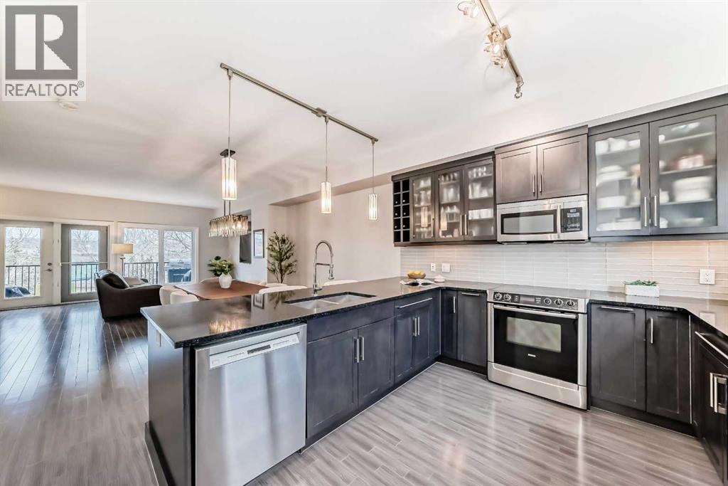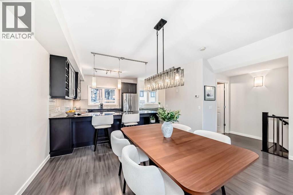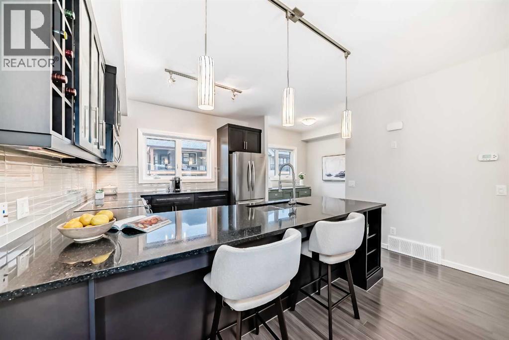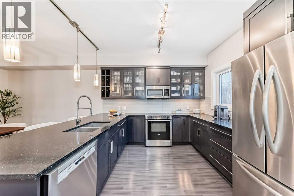 Open house Saturday Apr 25, 1-3 pm. Experience a blend of sophisticated comfort and mountain-gate access in this meticulously maintained three-bedroom townhome. Spanning multiple levels of sun-filled living space, this residence is thoughtfully designed for those who refuse to compromise between urban convenience and outdoor adventure.The Main Level The heart of the home unfolds with an airy, open-concept layout anchored by rich hardwood flooring. At its centre, a chef-inspired kitchen features sleek quartz countertops, premium stainless steel appliances, and an expansive eating bar. This level is further enhanced by a versatile flex space—perfect for a professional home office or a bright breakfast nook—which transitions seamlessly onto a private balcony for effortless indoor-outdoor hosting.The Upper Level: A Private RetreatThe top floor is dedicated to rest and rejuvenation. The primary suite serves as a quiet sanctuary, offering a spacious walk-in closet and a private three-piece ensuite. Two additional well-appointed bedrooms and a full four-piece bath provide ample space for family or guests, while the inclusion of upper-floor laundry adds a layer of modern practicality.Lower Level & Refined DetailsThe finished lower level offers a secondary living area, ideal for a media room or home gym, accompanied by a convenient powder room. Throughout the home, premium finishes like custom built-in shelving and tailored window coverings elevate the aesthetic. A rare double attached garage,central air conditioning and a welcoming front porch complete the property’s functional appeal.An Unbeatable LocationPerfectly positioned within a vibrant community, you are steps away from the Valley Ridge Golf & Country Club, serene parks, scenic trail systemsand access to the Bow River. With immediate access to the Trans-Canada Highway, your commute downtown is just as streamlined as your weekend escape to the mountains. (id:63190)