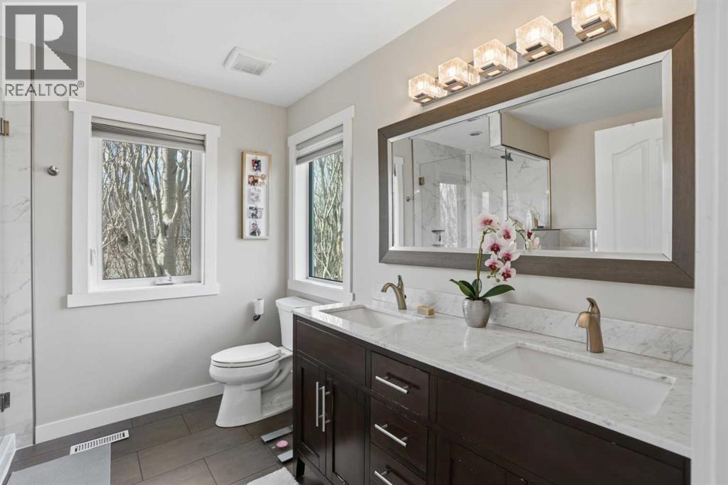 Located on a quiet street in Douglasglen, this fully developed walkout home sits on an oversized pie-shaped lot backing directly onto expansive pathway systems, offering a rare combination of space, and setting that truly extends beyond your property line.This is a home that has been consistently invested in and thoughtfully renovated over the past decade, creating a refined yet highly functional layout for a growing family. The kitchen serves as a central gathering space, featuring updated cabinetry, upgraded countertops, modern lighting, and a full appliance package including a gas range, all designed for both everyday use and entertaining. A walkthrough pantry connects directly to the mudroom, adding a level of practicality that families quickly come to appreciate. Solid hardwood flooring spans the entire main floor, bringing warmth, durability, and a cohesive feel throughout.Upstairs, the layout is increasingly hard to find, with four well proportioned bedrooms on one level, offering flexibility for younger families needing space to grow without compromise. The primary suite has been redesigned with a walk-in closet and an updated ensuite, creating a comfortable and private retreat. And dont forget about the dedicated laundry room; no more bringing clothes up and down the stairs.The fully developed walkout basement adds another layer of livability, with a generous recreation and media area that naturally becomes the hub for movie nights, kids’ space, or casual entertaining. A fifth bedroom and 3 piece bathroom make it ideal for guests or older children, while the dedicated storage room is designed to handle the realities of family life, from seasonal items and luggage to sports equipment and toys.Where this home truly separates itself is outdoors. The expanded composite deck, professionally built on concrete pilings, provides a long-term, low maintenance space for relaxing or hosting. From there, stairs lead down to one of the larger, more usable lots in Dou glasglen, a backyard that offers real versatility. There’s space for a trampoline, room to play catch or kick a soccer ball, and the ability to create a garden, all while backing onto pathways that provide direct access to the outdoors. Dont forget to check out 3 Bridges Playground, three doors down. It’s a setting that allows kids to play freely and families to fully use their space.Key mechanical updates, including a recently upgraded furnace and windows, add an additional layer of confidence and efficiency, reducing the likelihood of near term capital expenses and supporting long term ownership.Douglasdale / Douglasglen continues to stand out for its balance of natural surroundings and accessibility. With direct access to the Bow River pathway system, nearby parks, schools, and everyday amenities, plus efficient routes to Deerfoot Trail and shopping along 130th Avenue, this is a community where families not only move up, but settle in. (id:63190)