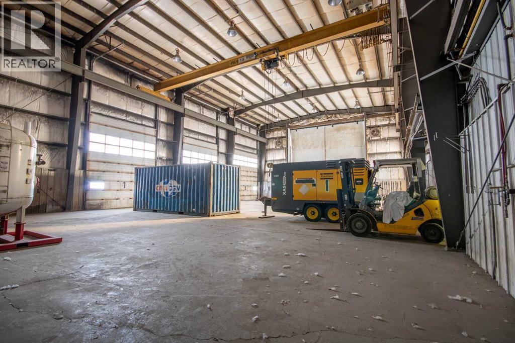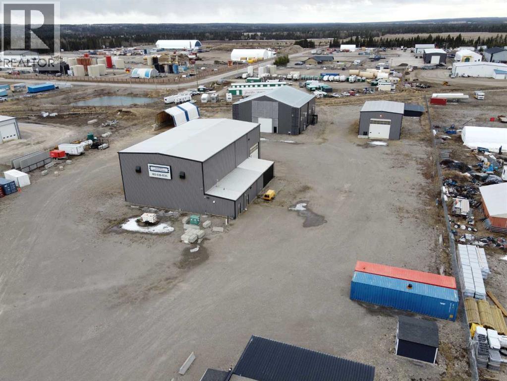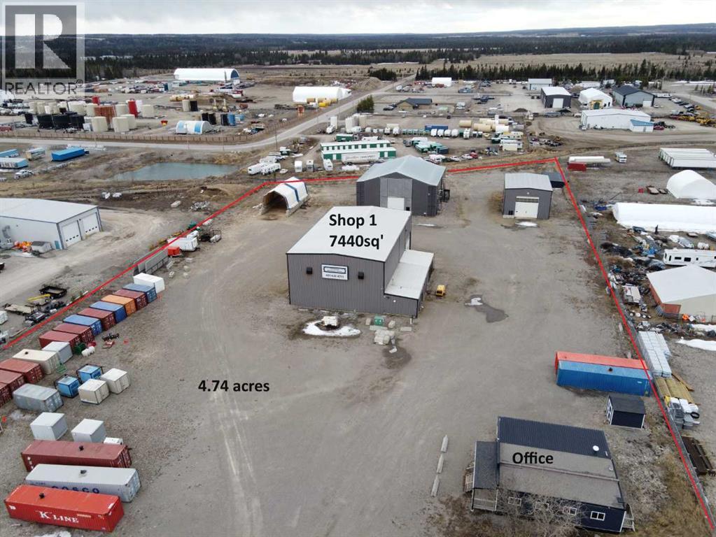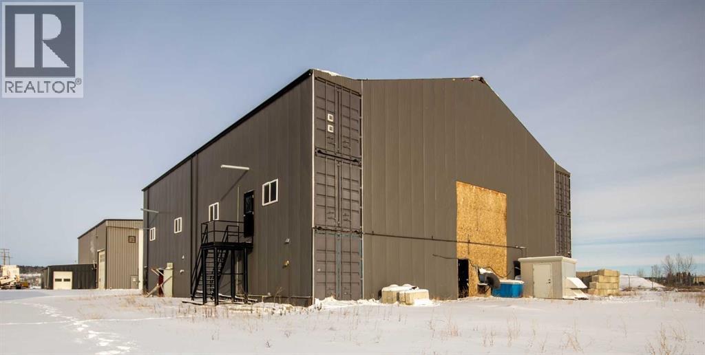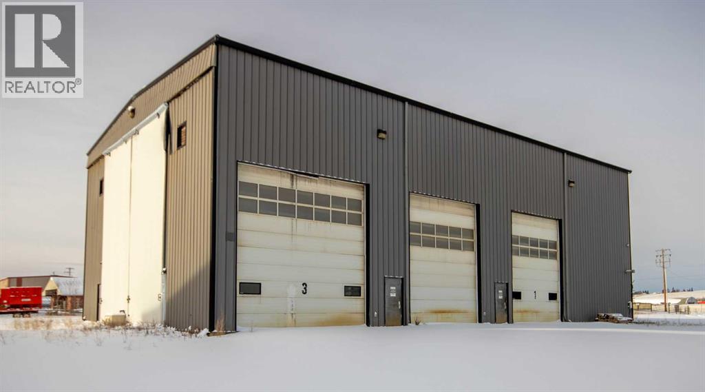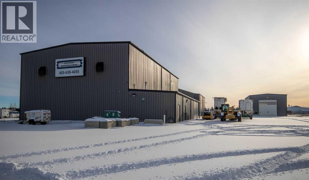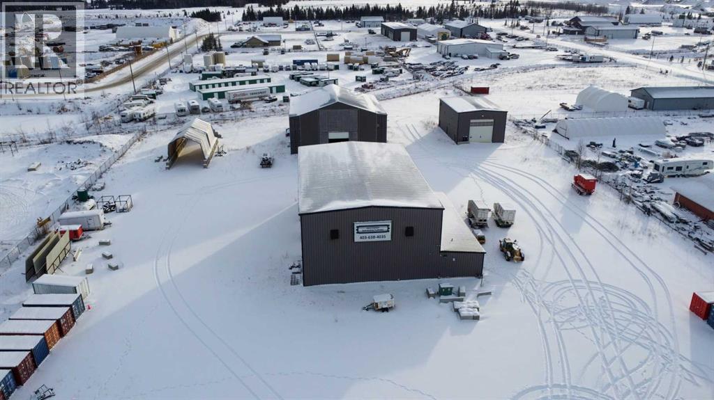 For Sale · 4.74+/- Titled Acres in a fenced & gated industrial parcel just west of Sundre, AB. Property boasts a 7,440 +/- sq ft heated Shop #1 with an attached axillary building that has a washroom, utility room, office, & mechanical bay. Building has 4 (20’x20’ doors) & 1 (30’x30’ door) on south end & an overhead crane. Property has an administrative office,which is 1579 +/- sq ft & contains 6 office spaces, meeting room, reception area, print area, staff lounge & washroom. There are two other large shops on property. Shop #2 is +/- 2400 sq ft & has 2 (20’x20’ doors) & is not presently heated, it also has an overhead crane. Shop #3 is formed by 12 sea cans utilized as sidewalls & is +/- 4800 sq ft plus +/- 1280 sq ft in 3 tiers of seacans & is not heated. One sea can is accessible from the interior of building & two are accessible from west side of building. The other sea cans are only accessible from end doors. There is also a concrete block & containment area, which is about +/- 1440 sq ft. suitable for storing shavings, soil, or equipment. Opportunity & entrepreneurism awaits. Potential for leasing. (id:63190)