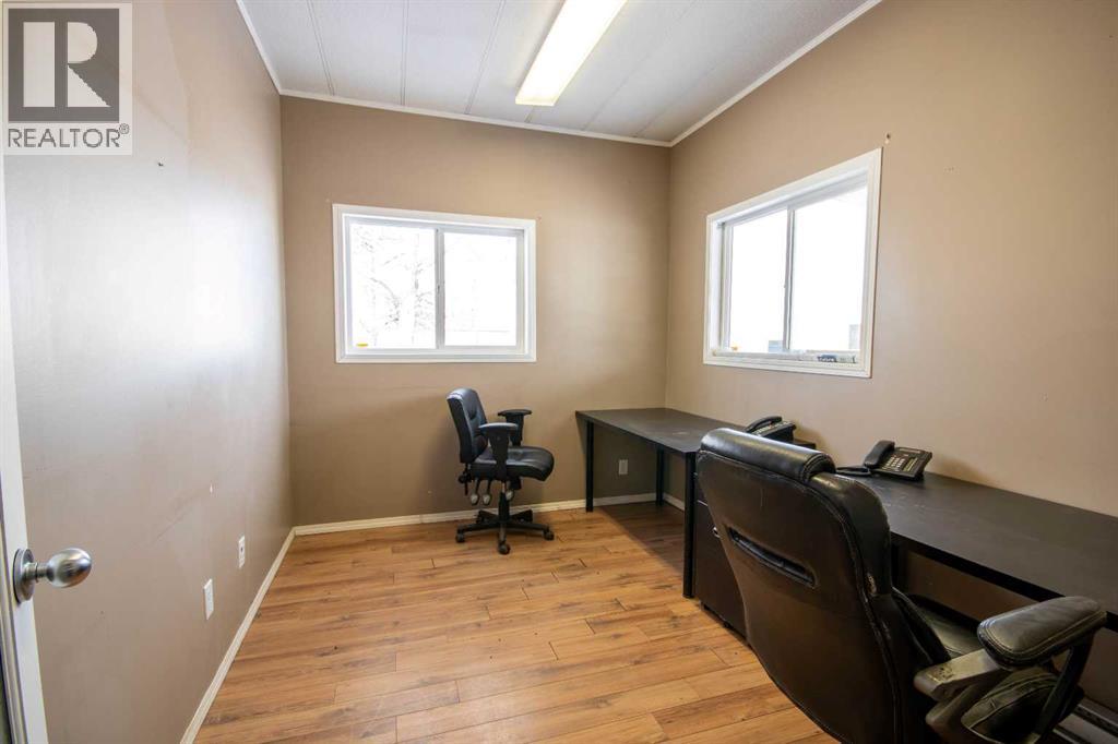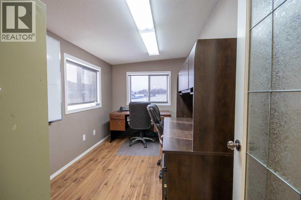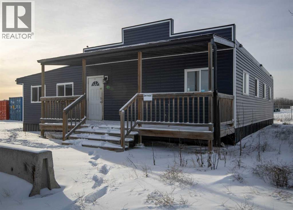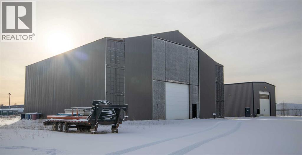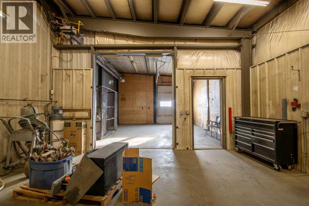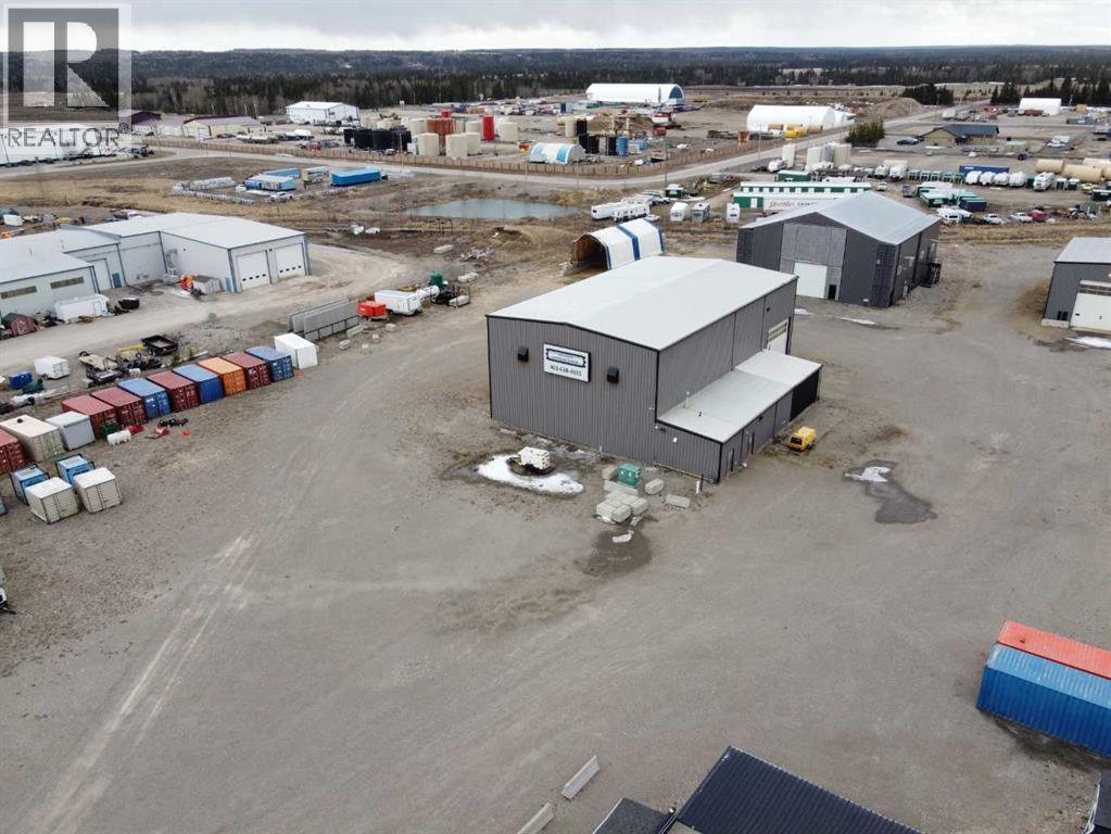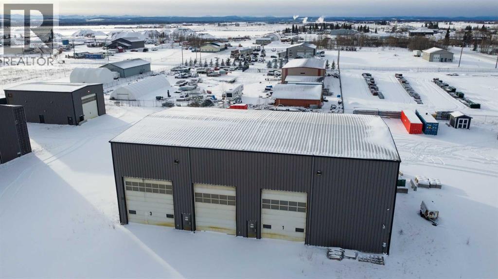 For Sale · 4.74+/- Titled Acres in a fenced & gated industrial parcel just west of Sundre, AB. Property boasts a 7,440 +/- sq ft heated Shop #1 with an attached axillary building that has a washroom, utility room, office, & mechanical bay. Building has 4 (20’x20’ doors) & 1 (30’x30’ door) on south end & an overhead crane. Property has an administrative office,which is 1579 +/- sq ft & contains 6 office spaces, meeting room, reception area, print area, staff lounge & washroom. There are two other large shops on property. Shop #2 is +/- 2400 sq ft & has 2 (20’x20’ doors) & is not presently heated, it also has an overhead crane. Shop #3 is formed by 12 sea cans utilized as sidewalls & is +/- 4800 sq ft plus +/- 1280 sq ft in 3 tiers of seacans & is not heated. One sea can is accessible from the interior of building & two are accessible from west side of building. The other sea cans are only accessible from end doors. There is also a concrete block & containment area, which is about +/- 1440 sq ft. suitable for storing shavings, soil, or equipment. Opportunity & entrepreneurism awaits. Potential for leasing. (id:63190)