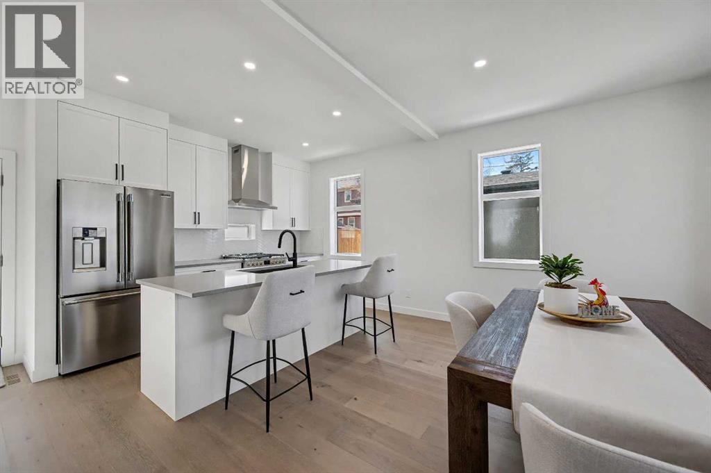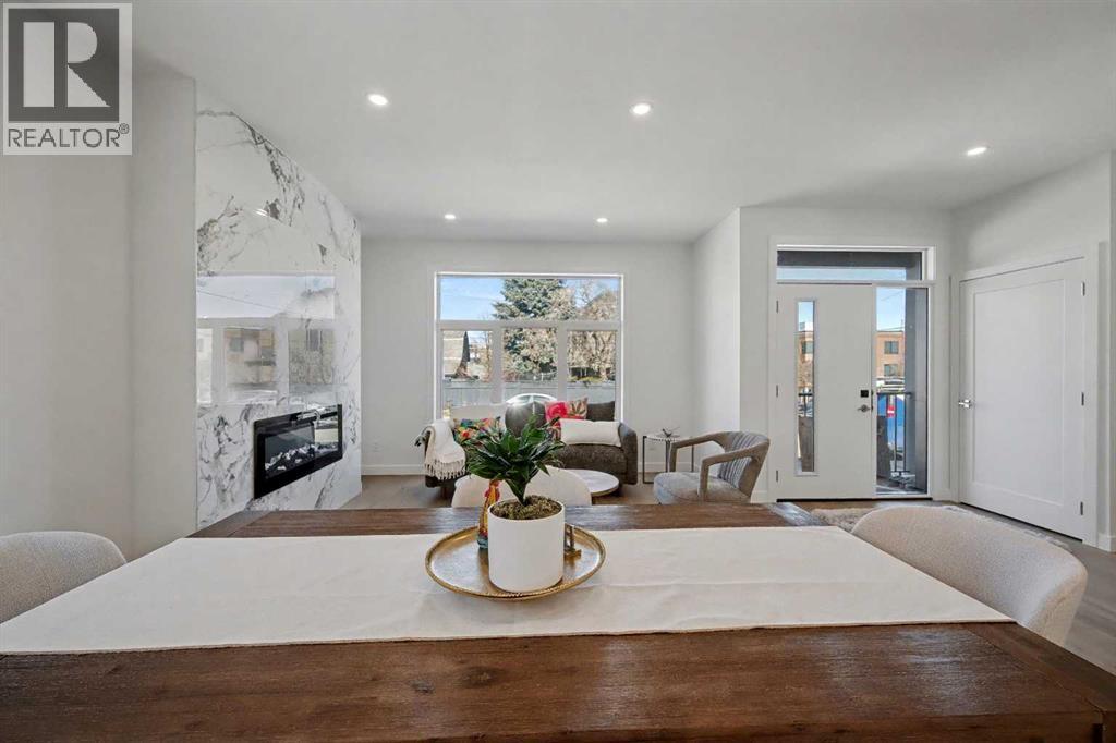 This thoughtfully designed three-story home offers approximately 2,084 sq. ft. of total living space, combining modern style, functionality, and comfort , ideal for professionals working downtown and small families seeking an active, connected lifestyle.The main floor welcomes you with a bright, open concept layout filled with natural light. The kitchen is both stylish and practical, featuring sleek white cabinetry, quartz countertops, stainless steel appliances, and a spacious island perfect for everyday living or entertaining. The dining and living areas flow seamlessly together, anchored by a striking floor-to-ceiling electric fireplace that adds warmth and character. Engineered flooring runs throughout the main level, creating a clean and modern feel. A convenient half bathroom is also located on the main floor for added functionality.The second level features the primary bedroom and a second bedroom, each with its own private bathroom, offering comfort and privacy for family members or guests.The third level adds valuable flexibility with a bonus room that opens directly onto a private rooftop patio with open views, perfect for a home office, additional living space, or a quiet place to relax and unwind.The bright basement provides additional living space, featuring a bedroom, a full bathroom, and a flexible area ideal for a recreation room, TV space, or home office. A small nook offers the option to create a dedicated desk or study area.A single detached garage is included, along with exterior features such as concrete walkways and wood fencing.The location truly sets this home apart. Bridgeland is one of Calgary’s most loved inner-city communities, offering a unique blend of convenience and neighborhood charm. Enjoy easy access to downtown while being surrounded by local cafés, restaurants, small shops, and everyday amenities.Nearby, Bridgeland Community Centre Playground offers fun for all ages with climbing structures, open green space for picn ics, bike paths, and even a popular ice cream shop just steps away making it a favorite destination for families. You’re also close to Murdoch Park, the Bridgeland-Riverside Community Hall, and local markets, adding to the vibrant and welcoming atmosphere of the area.With parks, schools, entertainment, and pathways—including access toward the Bow River—this is a community that offers both lifestyle and convenience without the busy downtown feel.This is a rare opportunity to own a townhome in a boutique development in one of Calgary’s most desirable inner-city communities. (id:63190)