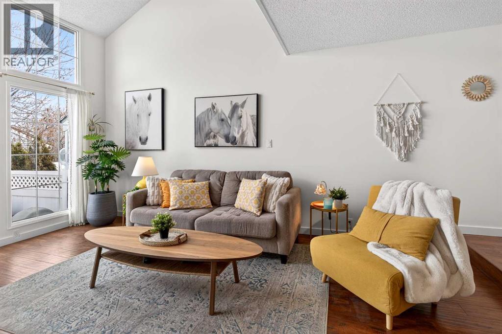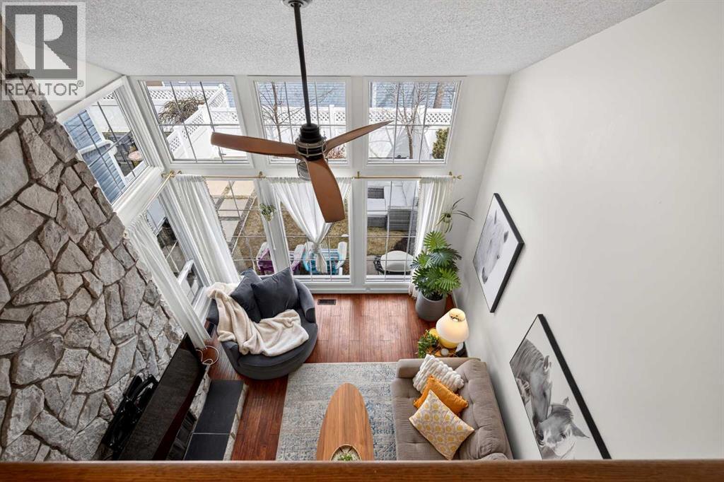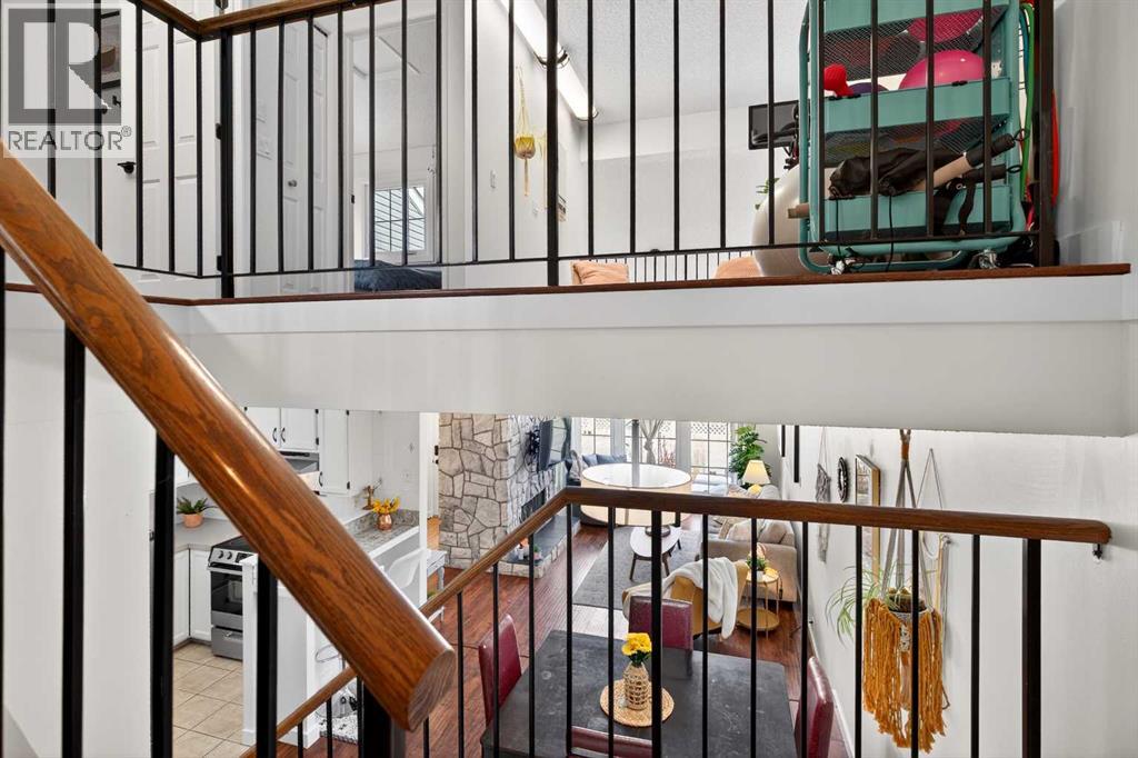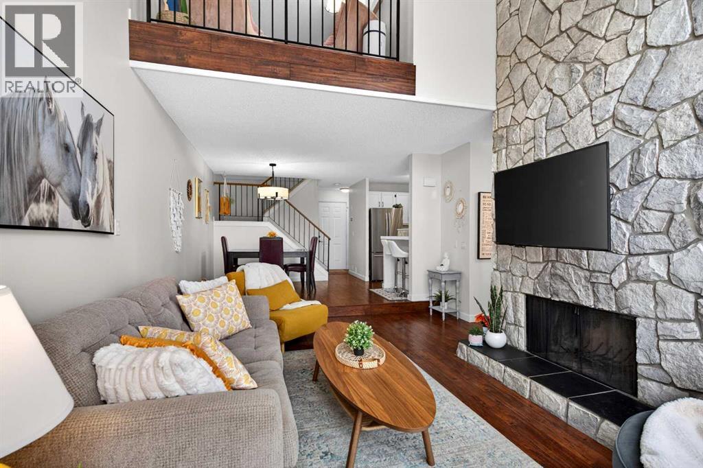 Welcome to this beautifully maintained home in the sought-after complex of Berkshire Village! Check out the dramatic 16' vaulted ceilings and a stunning floor-to-ceiling stone wood-burning fireplace, creating a warm and inviting focal point in the bright living room. Eight oversized front windows flood the main floor and loft with natural light all day long.The open layout flows seamlessly into the spacious dining area, perfect for family dinners or entertaining friends, overlooking the functional kitchen complete with a breakfast bar, stainless steel fridge and dishwasher, and freshly painted cabinets that give the space a crisp, updated feel.The main floor also features a beautifully renovated half bath with durable flooring, stone countertops, brushed nickel fixtures, new cabinetry, and updated lighting, along with convenient access to the double attached garage.Upstairs you’ll find a bright and versatile loft, ideal for a home office, reading nook, playroom, or creative space. The oversized primary bedroom offers incredible storage and plenty of room for additional furniture, along with a gorgeous renovated ensuite featuring a stunning tiled shower and modern floating vanity with extra drawers. A second spacious bedroom and another fully renovated bathroom with a tiled tub/shower combo complete the upper level.The finished basement adds even more flexible living space with a large storage room, open recreation area perfect for a gym or play space, and an additional office nook. The Double Attached Garage is located at the rear of the home for added convenience.Step outside to enjoy your fully fenced yard with mature landscaping, where birdsong and privacy create a peaceful retreat. There’s also a natural gas BBQ hookup and a low-maintenance outdoor space ready for summer evenings.All of this in a well-managed complex with BRAND NEW SIDING and ROOFING, plenty of guest parking, walking distance to two schools, playgrounds, daycare, a dog park, public transit , and more.This rare Berkshire Village gem shows true pride of ownership: don’t miss your chance to see it. Book your showing today! (id:63190)